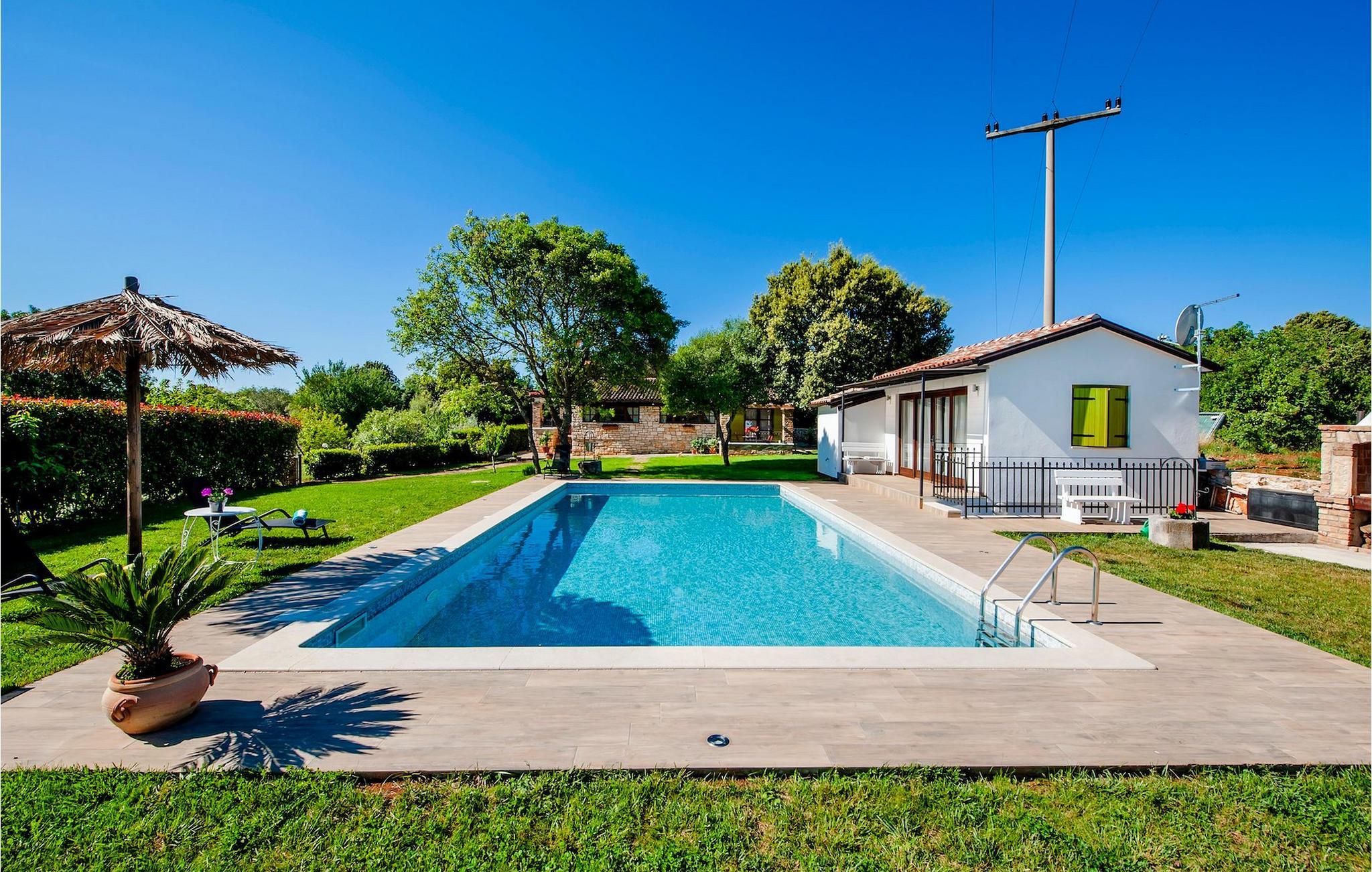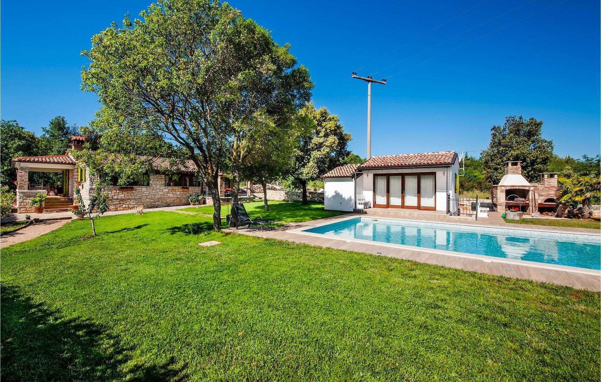 Smukke moderne Villa Antica er beliggende nær havet, i udkanten af den antikke by Rovinj. En af hendes mest fantastiske funktioner er en stor swimmingpool i haven. Den kan rumme op til syv gæster. Det består af to huse, hovedhuset og en studielejlighed. Hovedhuset har en åben stue og spisestue samt tre soveværelser. Et soveværelse har en dobbeltseng, og to soveværelser er udstyret med enkeltsenge. Det giver også et rummeligt badeværelse med badekar, hvor du nemt kan slappe af. Udenfor kan du slappe af med en kold drink på terrassen eller på liggestolene ved poolen, eller tage en svømmetur i en stor 72m2 pool. Du kan også fyre op i grillen til et godt måltid. Studielejligheden tilbyder lidt mere privatliv end hovedhuset. Den har en stue med en dobbeltseng, der kan rumme to gæster og et badeværelse med bruser. Book Villa Antica til din afslappende ferie!Villa Antica er beliggende i en forstad til den antikke by Rovinj, en af de smukkeste og mest romantiske byer i Kroatien. Det er kun få minutters gang fra Polari-stranden og få minutters kørsel fra byens centrum. I centrum kan du udforske det gamle netværk af stengader, der fører til toppen af bakken, hvor den smukke gamle kirke St. Euphemia ligger. Fra toppen af kirketårnet kan du nyde udsigten, der strækker sig over hele byen og ikke efterlader nogen ligeglade. Fra centrum kan du gå mod parkskoven Zlatni Rt, et af de smukkeste landskaber i det vestlige Istrien. Gå ikke glip af turen til Lim-kanalen, en af de mest attraktive naturressourcer i det vestlige Istrien, som ligger kun 15 kilometer uden for Rovinj.
