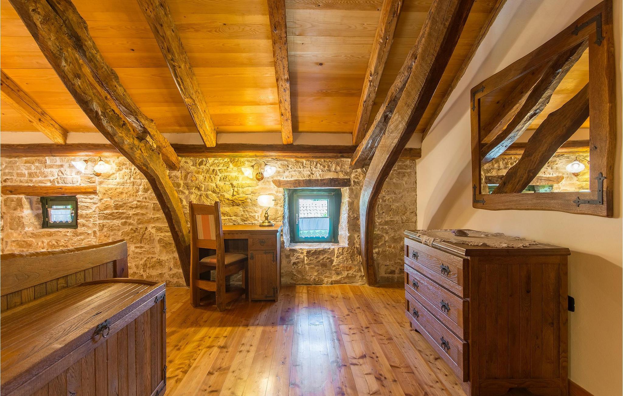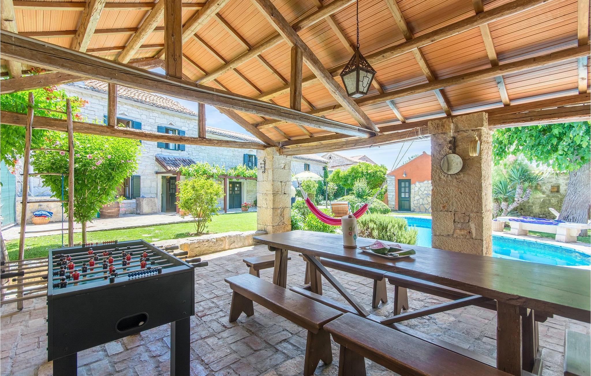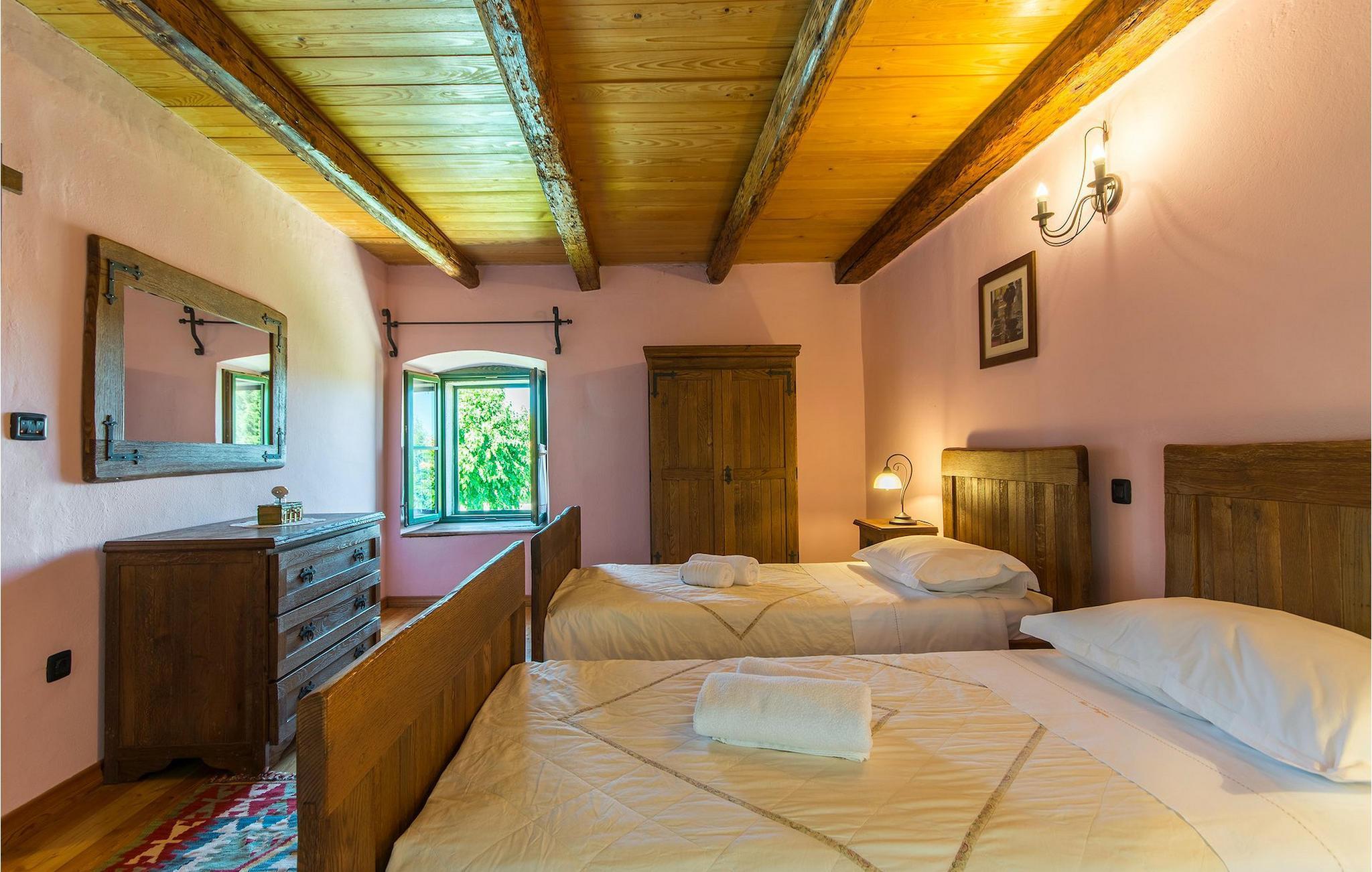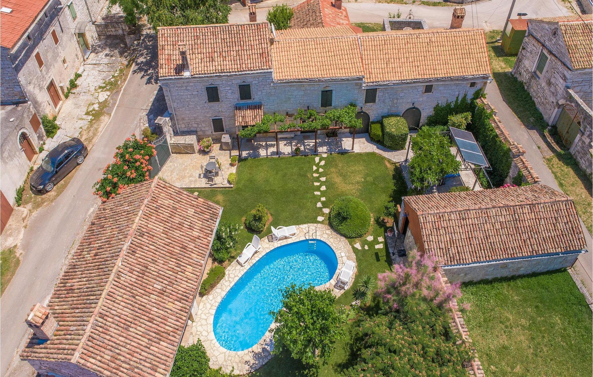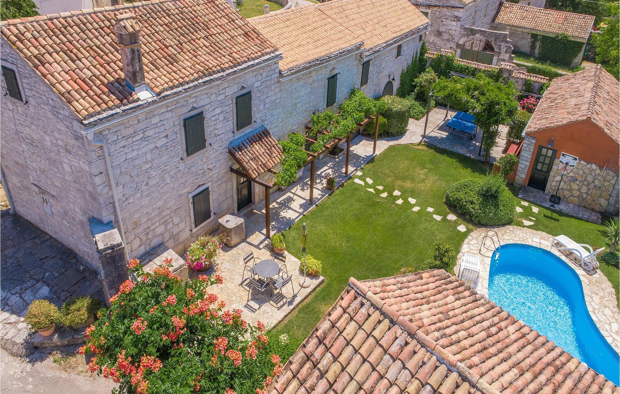 Der er en historie om, at en berygtet piratkaptajn fra det 17. århundrede, Sir Henry Morgan, efter at han plyndrede Caribien sejlede hele vejen til Lim-bugten, som ligger under Mrgani-landsbyen og gemte sin skat der. Denne mere end et århundrede gamle ombyggede villa bærer stadig ånden fra den gamle kaptajn med dens udvendige stenvægge og bevidst eksponerede indvendige murstens- og mørtelvægge, egetræsbjælker og antikke indretning og møbler. Måske er fortællingen om den gamle kaptajn Morgan og hans skat et eventyr, hvem ved mere, men den ferie, du drømmer om, kan helt sikkert blive en realitet, hvis du booker Villa Capt. Morgan. I villaens stueetage er der en rummelig stue med pejs, køkken og spisestue lagt i åben planløsning. Der er også et soveværelse med eget badeværelse i stueetagen med to enkeltsenge. Første sal er opdelt i to uafhængige områder med separate trapper, der fører op til dem. Det venstre område indeholder to soveværelser, et med to enkeltsenge og et med en dobbeltseng, og begge soveværelser har ensuite badeværelser. Det højre område indeholder et rummeligt soveværelse kaldet "Kaptajnens værelse", som har et ensuite badeværelse med jacuzzi. I det ydre af villaen er der en rummelig plejet have med privat pool og en masse frodigt middelhavsgrønt spredt rundt omkring. Der er også et hundrede år gammelt morbærtræ i haven, der giver naturlig skygge på varme sommerdage. Hvis du rejser med børn, vil de virkelig nyde denne have, da den vil give dem en masse plads til ubekymret leg, og for ekstra sjov er der dart, bordtennis, bordfodbold og basketballkurv til rådighed i villaen. I haven finder du også en stor overdækket spiseplads til de dejlige familiemåltider, som du kan tilberede over en gammel stor ildsted. Dette er et sted, hvor du kan få den fred, ro og afslapning, du drømmer om, så gør disse drømme til virkelighed ved at booke villa Capt. Morgan nu og få dig selv den ferie, du fortjener. Mrgani er en lille landsby med udsigt over et berømt geologisk vartegn i Istrien - Lim Bay, og et par kilometer uden for kystbyen Rovinj. Dette fredelige og afslappende område er omgivet af frodige grønne marker og skove, væk fra store travle turisthotspots, men alligevel tæt på, hvis du ønsker at udforske dem. Rovinj ligger kun 30 minutter væk i bil, og du vil nyde hvert minut at køre gennem naturskønne bakkede områder. Når du nærmer dig byen Rovinj, vil du blive forbløffet over dens rene skønhed, især under solnedgange, hvor du kan se huse i forskellige farver spredt ud over den bakkede halvø, hvor den gamle kerne af byen stadig ligger, omgivet af den varme sommeraftenhimmel og et klart blåt hav. Rovinj er virkelig en romantisk by. Gå en tur gennem smalle gamle brostensbelagte gader, der langsomt går op til toppen af bakken, hvor du finder en gammel kirke fra det 10. århundrede St. Euphemia. Fra kirkeplateauet er der en flot udsigt, men går man til tops i det høje kirketårn, vil man blive overrasket over en fri udsigt, der spænder over hele byen og omegn og rækker milevidt. I Rovinj kan du forvente mange vidunderlige restauranter og bistroer, der vil fylde enhver gastro-entusiasters behov. Hvis du vil udforske det bredere Istriske område, er alt godt forbundet af mange veje, så du kan tage på mange dagsture og udforske både indre og kystnære byer som Pula, Groznjan, Vodnjan, Motovun, Porec, Novigrad og selvfølgelig er der bådture til smukke Brijuni nationalpark.