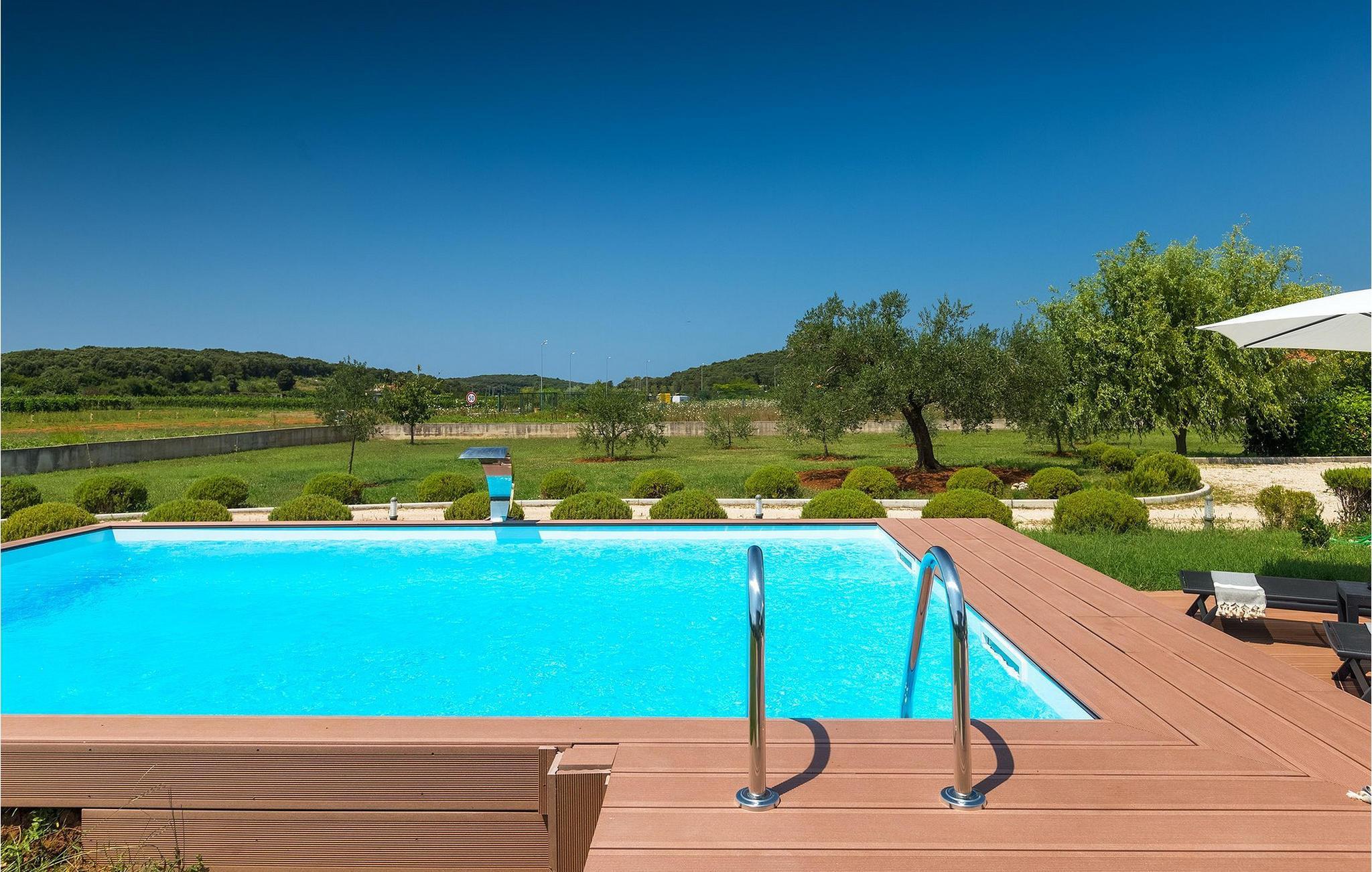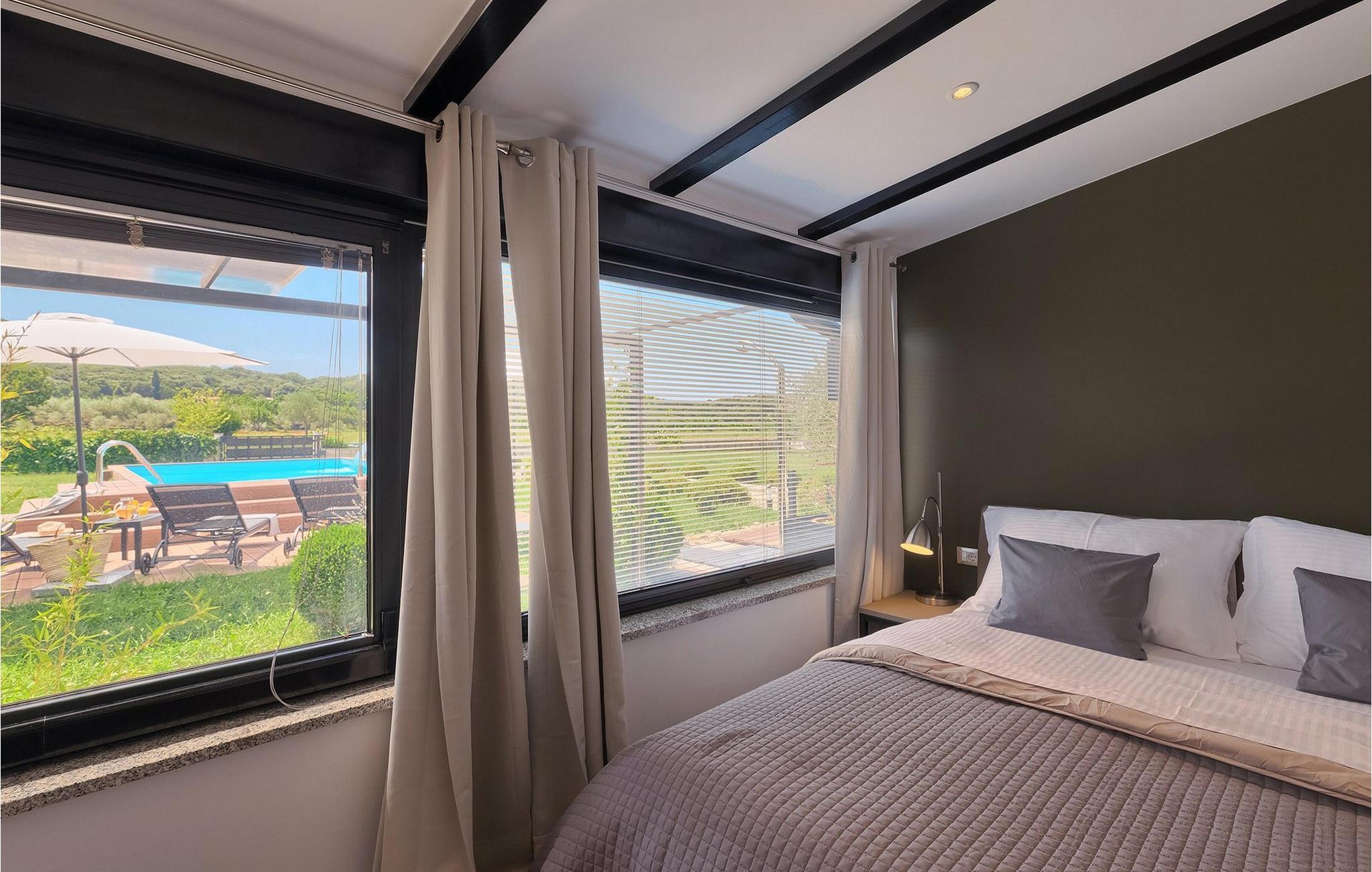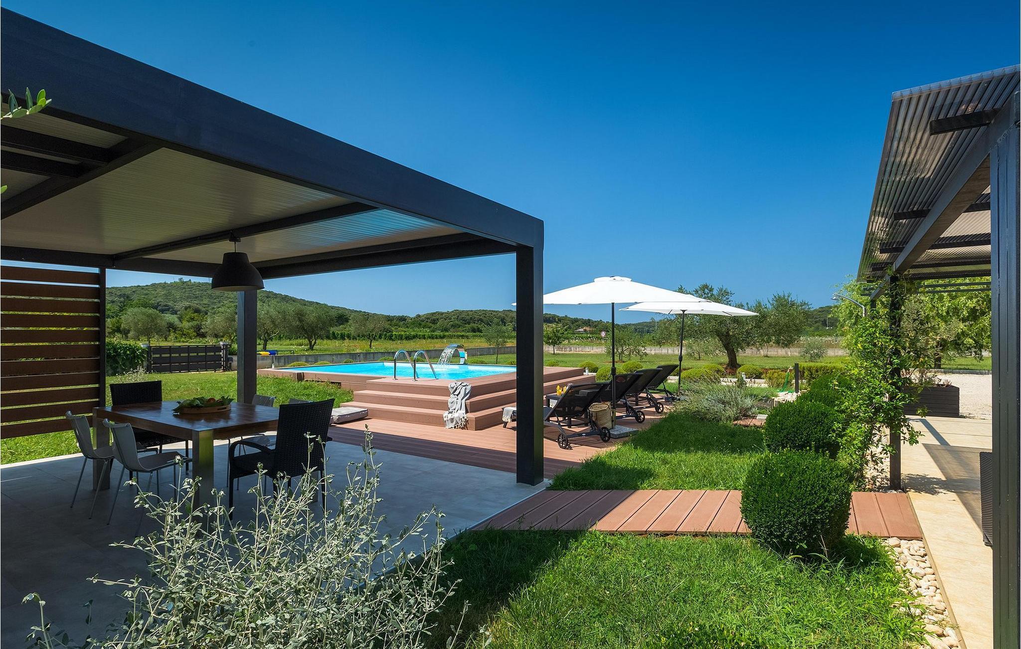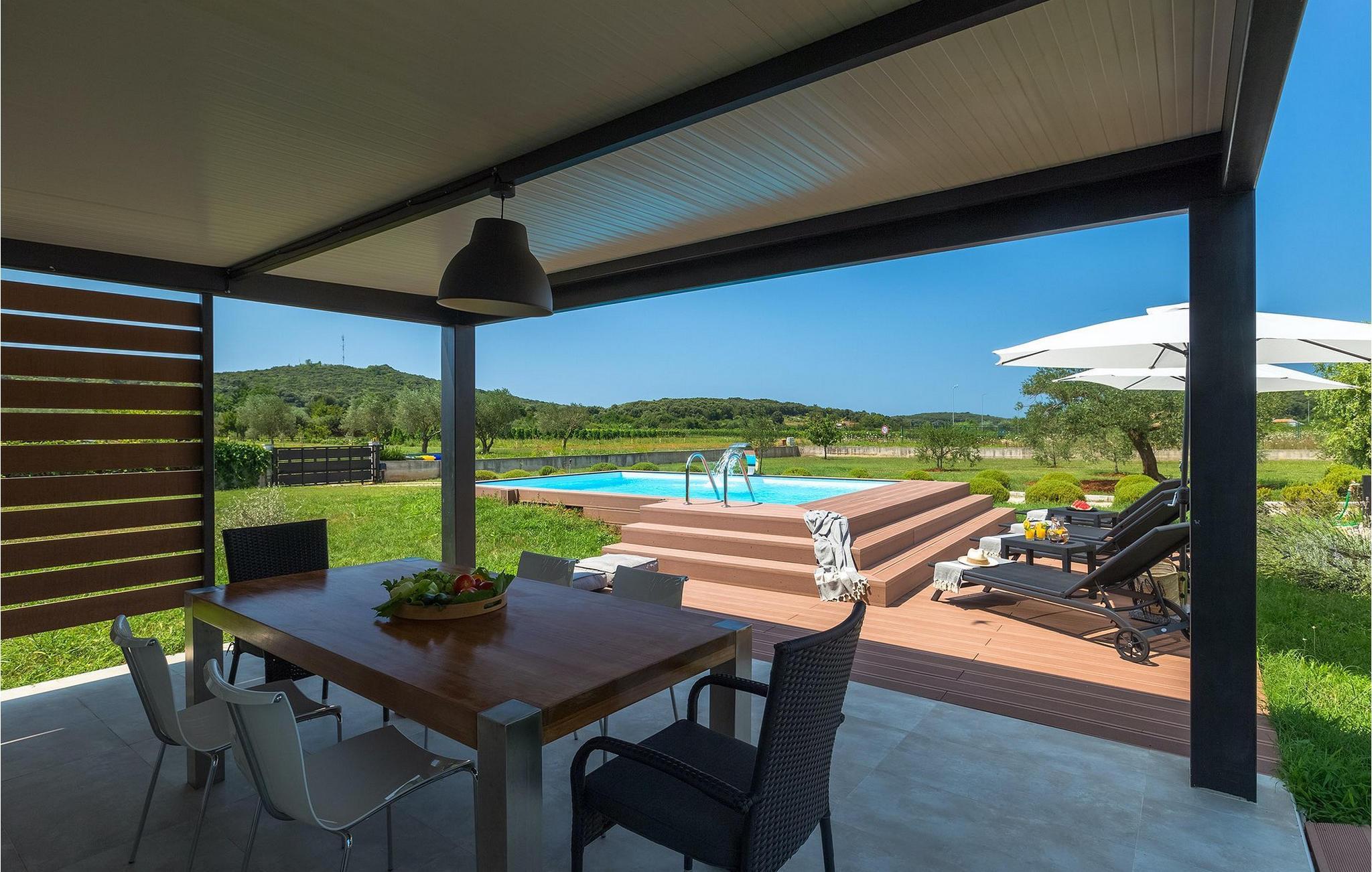 Denne dejlige villa i stueetagen er beliggende i et roligt landområde, tæt på havet, i forstæderne til den smukke by Rovinj. Villa Sessa, beliggende på en mere end 2000 m2 stor grund, tilbyder den perfekte bolig for op til 4 gæster. Den består af to soveværelser, hver med en dobbeltseng og tv. Villaen er nænsomt og stilfuldt indrettet og har 6 siddepladser i spisepladsen og stereoanlæg og SAT TV i opholdsstuen. Det fuldt udstyrede køkken byder på alt hvad du har brug for til madlavning under din ferie. Der er også en kulgrill udenfor, på den overdækkede terrasse med spisebord. Den dejlige private pool og den udendørs bruser vil give dig en forfriskning på de varme sommerdage. Villaen har aircondition og tilbyder også skyggefuld privat parkeringsplads.Villa Sessa ligger kun en kilometer fra havet i Rovinj. Villaen er beliggende i fredelige naturomgivelser og er omgivet af smuk grøn natur og hektar jord. Det ideelle sted for en flugt fra det moderne bylivs stress! Rovinj var engang en lille fiskerby, men i dag er det et populært turistmål med en rig kulturarv. De charmerende smalle gader i denne middelalderby gemmer på adskillige gallerier, restauranter, barer og caféer. Rovinj ligger kun 40 km fra Pula og har længe været kendt som byen med et gunstigt og gavnligt mildt klima. Hele kystlinjen er med sine 22 øer et område med beskyttet naturarv. Byen er domineret af den barokke St. Euphemia-kirken. Fra tårnet kan du nyde en smuk panoramaudsigt over byen. Dette sted byder på adskillige muligheder for en uforglemmelig ferie: vandre- og cykelstier, sejlads, klatring, dykning, paragliding, tennis, arkæologiske monumenter, udsøgte kulinariske specialiteter og smukke strande. Mystisk og romantisk, denne gamle bydel er et sted, der er værd at besøge!