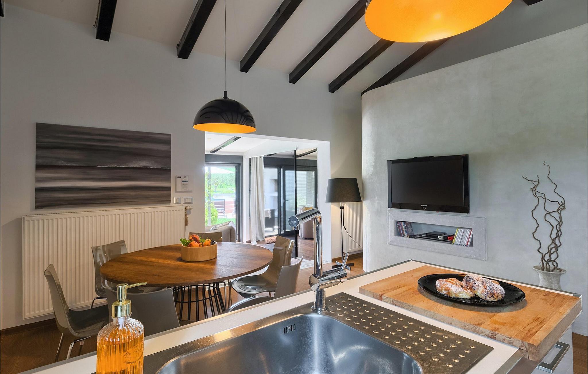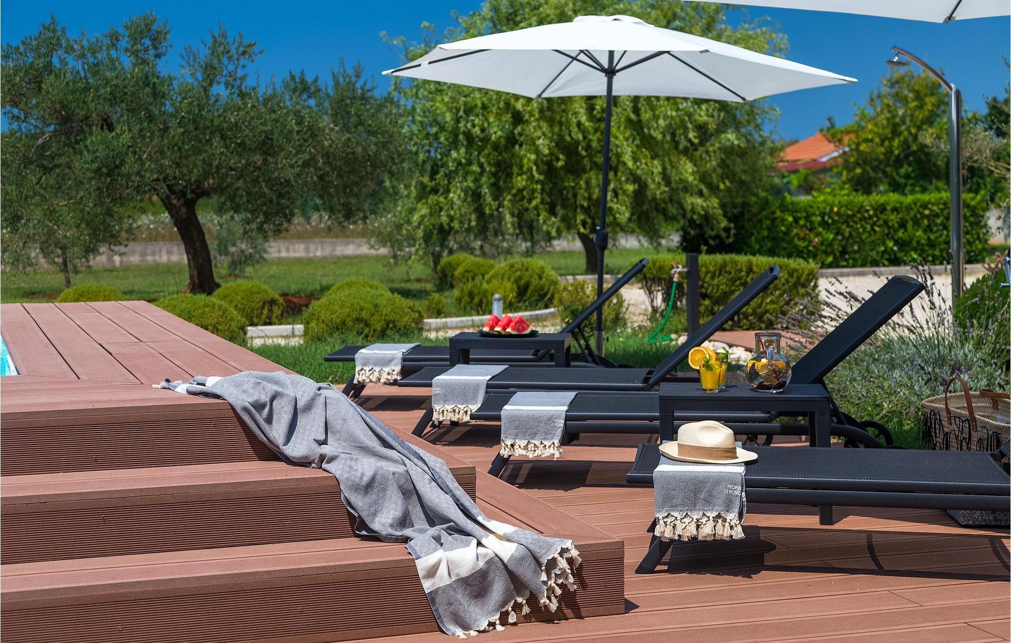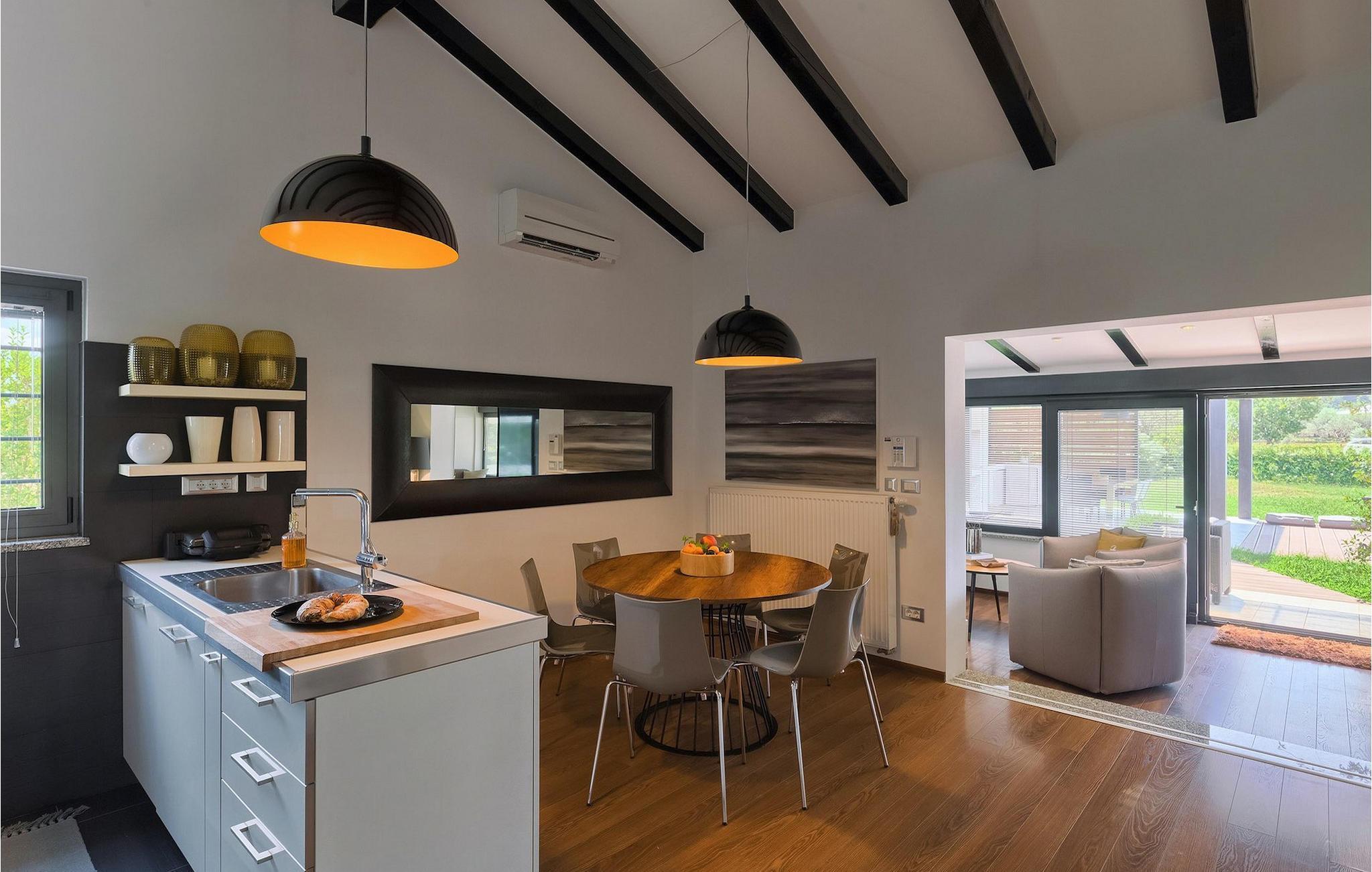 Denne dejlige villa i stueetagen er beliggende i et roligt landområde, tæt på havet, i forstæderne til den smukke by Rovinj. Villa Sessa, beliggende på en mere end 2000 m2 stor grund, tilbyder den perfekte bolig for op til 4 gæster. Den består af to soveværelser, hver med en dobbeltseng og tv. Villaen er nænsomt og stilfuldt indrettet og har 6 siddepladser i spisepladsen og stereoanlæg og SAT TV i opholdsstuen. Det fuldt udstyrede køkken byder på alt hvad du har brug for til madlavning under din ferie. Der er også en kulgrill udenfor, på den overdækkede terrasse med spisebord. Den dejlige private pool og den udendørs bruser vil give dig en forfriskning på de varme sommerdage. Villaen har aircondition og tilbyder også skyggefuld privat parkeringsplads.Villa Sessa ligger kun en kilometer fra havet i Rovinj. Villaen er beliggende i fredelige naturomgivelser og er omgivet af smuk grøn natur og hektar jord. Det ideelle sted for en flugt fra det moderne bylivs stress! Rovinj var engang en lille fiskerby, men i dag er det et populært turistmål med en rig kulturarv. De charmerende smalle gader i denne middelalderby gemmer på adskillige gallerier, restauranter, barer og caféer. Rovinj ligger kun 40 km fra Pula og har længe været kendt som byen med et gunstigt og gavnligt mildt klima. Hele kystlinjen er med sine 22 øer et område med beskyttet naturarv. Byen er domineret af den barokke St. Euphemia-kirken. Fra tårnet kan du nyde en smuk panoramaudsigt over byen. Dette sted byder på adskillige muligheder for en uforglemmelig ferie: vandre- og cykelstier, sejlads, klatring, dykning, paragliding, tennis, arkæologiske monumenter, udsøgte kulinariske specialiteter og smukke strande. Mystisk og romantisk, denne gamle bydel er et sted, der er værd at besøge!
