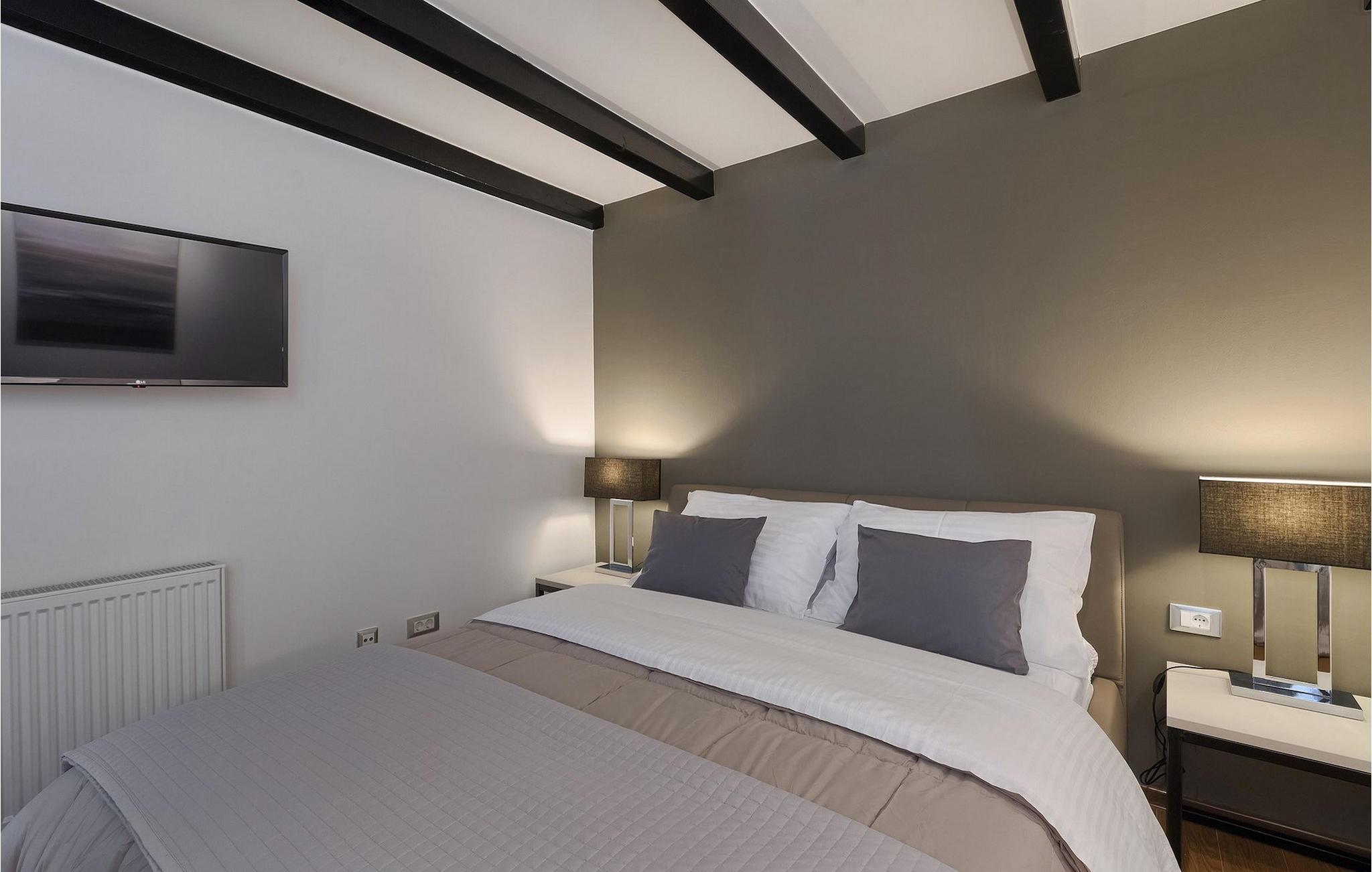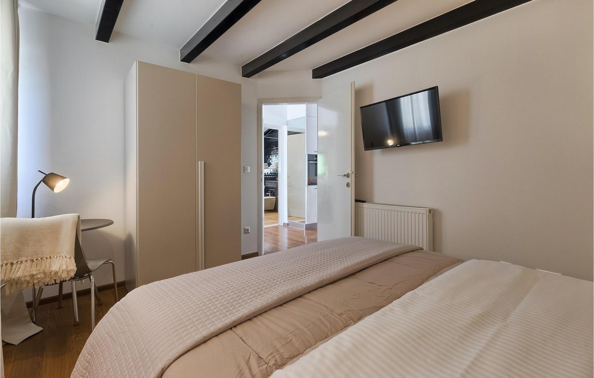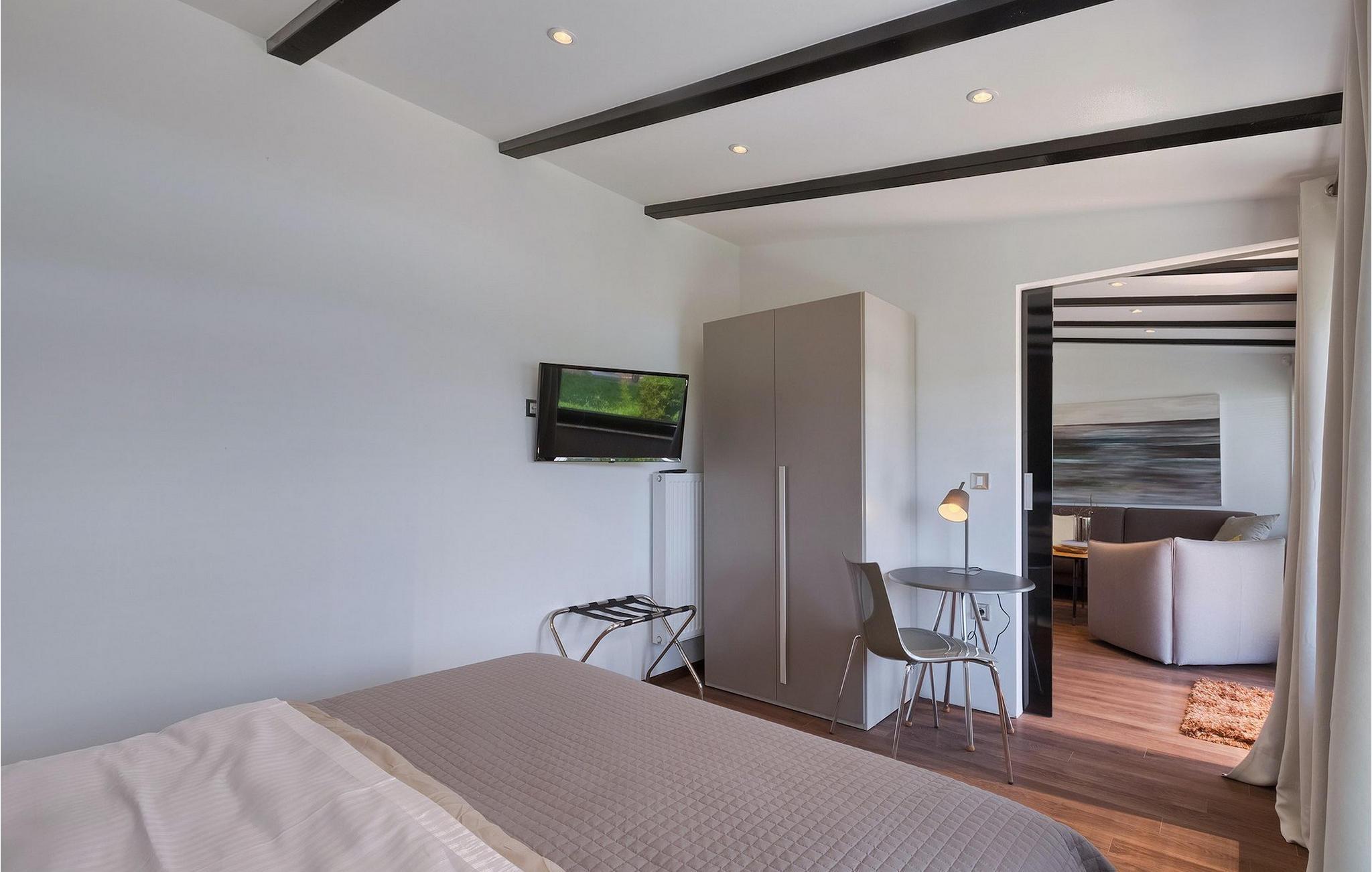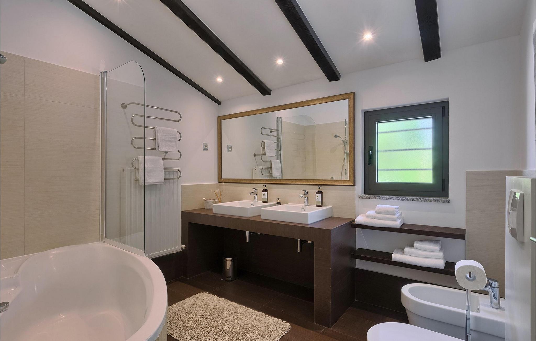 Denne dejlige villa i stueetagen er beliggende i et roligt landområde, tæt på havet, i forstæderne til den smukke by Rovinj. Villa Sessa, beliggende på en mere end 2000 m2 stor grund, tilbyder den perfekte bolig for op til 4 gæster. Den består af to soveværelser, hver med en dobbeltseng og tv. Villaen er nænsomt og stilfuldt indrettet og har 6 siddepladser i spisepladsen og stereoanlæg og SAT TV i opholdsstuen. Det fuldt udstyrede køkken byder på alt hvad du har brug for til madlavning under din ferie. Der er også en kulgrill udenfor, på den overdækkede terrasse med spisebord. Den dejlige private pool og den udendørs bruser vil give dig en forfriskning på de varme sommerdage. Villaen har aircondition og tilbyder også skyggefuld privat parkeringsplads.Villa Sessa ligger kun en kilometer fra havet i Rovinj. Villaen er beliggende i fredelige naturomgivelser og er omgivet af smuk grøn natur og hektar jord. Det ideelle sted for en flugt fra det moderne bylivs stress! Rovinj var engang en lille fiskerby, men i dag er det et populært turistmål med en rig kulturarv. De charmerende smalle gader i denne middelalderby gemmer på adskillige gallerier, restauranter, barer og caféer. Rovinj ligger kun 40 km fra Pula og har længe været kendt som byen med et gunstigt og gavnligt mildt klima. Hele kystlinjen er med sine 22 øer et område med beskyttet naturarv. Byen er domineret af den barokke St. Euphemia-kirken. Fra tårnet kan du nyde en smuk panoramaudsigt over byen. Dette sted byder på adskillige muligheder for en uforglemmelig ferie: vandre- og cykelstier, sejlads, klatring, dykning, paragliding, tennis, arkæologiske monumenter, udsøgte kulinariske specialiteter og smukke strande. Mystisk og romantisk, denne gamle bydel er et sted, der er værd at besøge!