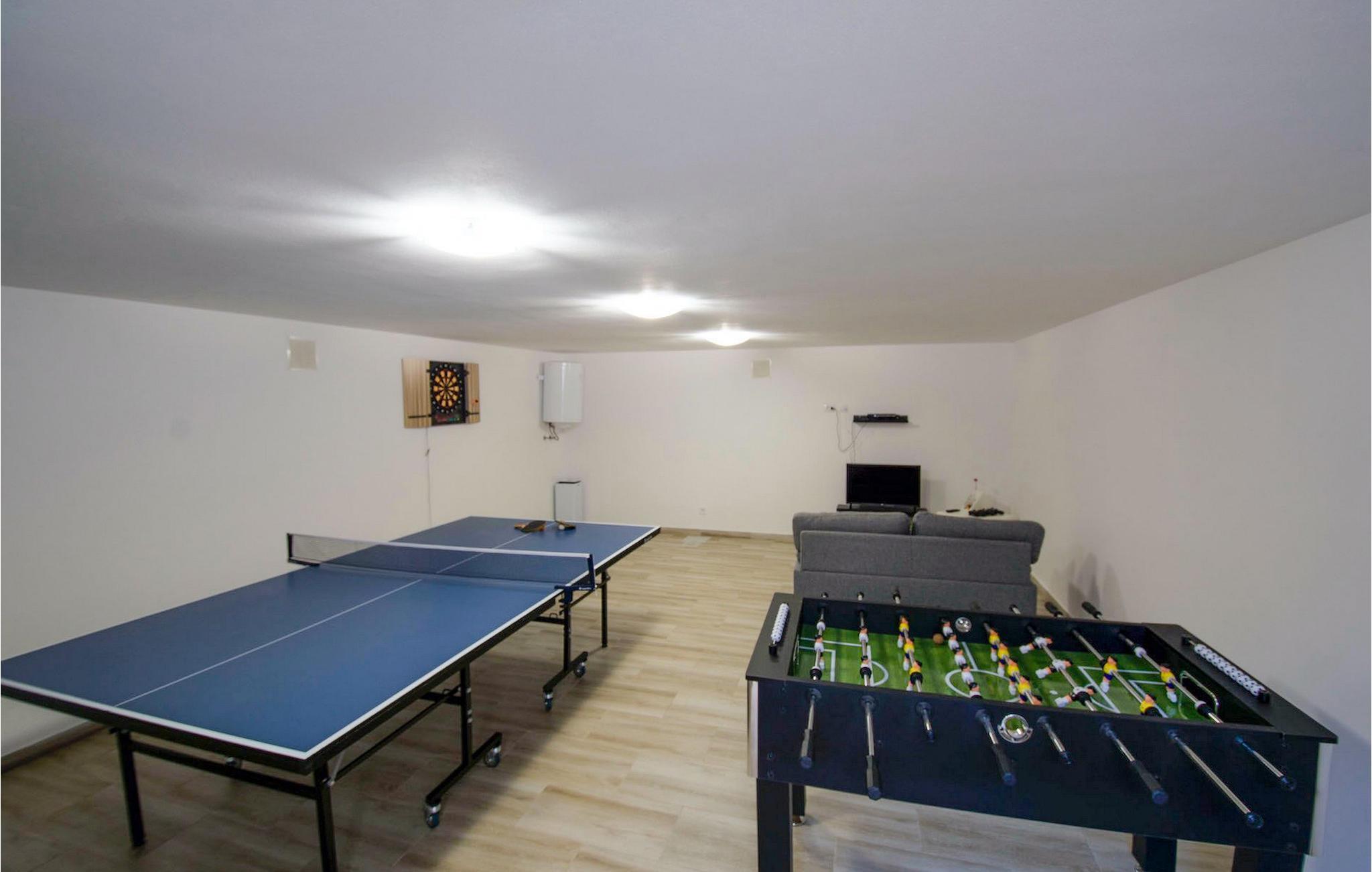 Hvis du leder efter en hyggelig bolig i et af Istriens berømte steder Rovinj, så tag et kig på villa Mila Rovinj, som er velegnet til op til 4 gæster. Når du ankommer til ejendommen, vil du først og fremmest få øje på olivenplantagen - en ægte middelhavsstemning. Når du træder ind i dette dejlige hjem og ser stueetagen med de varme farver samt træloftet, vil en god følelse overvinde dig. Desuden vil den fantastiske gelænder på trappen til gallerirummet bogstaveligt talt tilføje en særlig "note" til din ferie. I det fuldt udstyrede køkken kan du tage plads på barstolene i spisepladsen lige foran vinduet og nyde udsigten til haven med villaens private pool. Køkkenet og stuen har et åbent rum design, hvorfra soveværelse og badeværelse kan trædes ind. Badeværelset tilbyder dig en walk-in regnbruser for maksimal afslapning. Galleriet ovenpå, hvorfra man ser ned på stuen, er tænkt som ekstra soveplads med eget TV. Derudover, hvis du leder efter noget underholdning såsom bordtennis, bordfodbold, dart eller spillekonsoller, er det bare at gå ned i kælderen - der er villaens underholdningsrum. Når du træder udenfor, kan du føle dig godt tilpas på den overdækkede terrasse. Der vil du også finde en grill klar til brug - der inspirerer dig til at tilberede nogle velsmagende måltider. Og ikke at forglemme, liggestolene og den private pool venter kun på dig. Hvis du vil udforske området på cykel, kan du benytte dig af de tilgængelige cykler. Gør din ferie til en perfekt hyggelig oplevelse og bestil villa Mila Rovinj nuVilla Mila Rovinj er beliggende i en tidligere fiskerlandsby og en af Kroatiens mest berømte destinationer, den charmerende by Rovinj på vestkysten af halvøen Istrien. Fra villaen kan flere strande samt byens centrum, den gamle bydel, nås på få minutter i bil. Når du går på promenaden ud til havet og nærmer dig den gamle bydel i Rovinj, får du en betagende udsigt. Gå derefter en tur gennem de små gader i den gamle bydel og nyd den farverige, maleriske atmosfære. Bare gå tabt i denne bys romantiske flair! Sæt dig ned i en af de hyggelige caféer eller restauranter og smag lokale delikatesser. Gå op til St. Euphemia-kirken, en af de vigtigste seværdigheder, hvor du kan nyde panoramaudsigten over havet og de omkringliggende øer. Gå heller ikke glip af muligheden for at tage på en bådtur - oplev øerne og nyd den utrolige udsigt over Rovinj fra havet. Ikke langt væk fra villaen kan du også besøge andre seværdigheder i Istrien som Limski-kanalen eller Brijuni National Park. Rovinj tilbyder dig en bred vifte af muligheder, som vil gøre din ferie uforglemmelig!