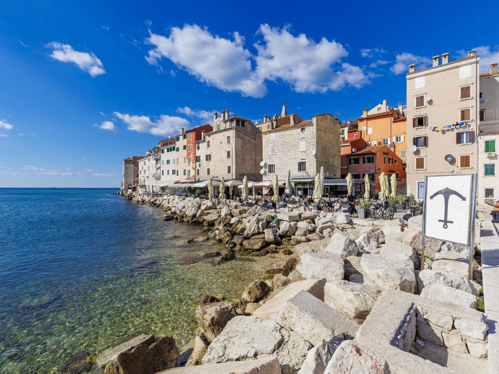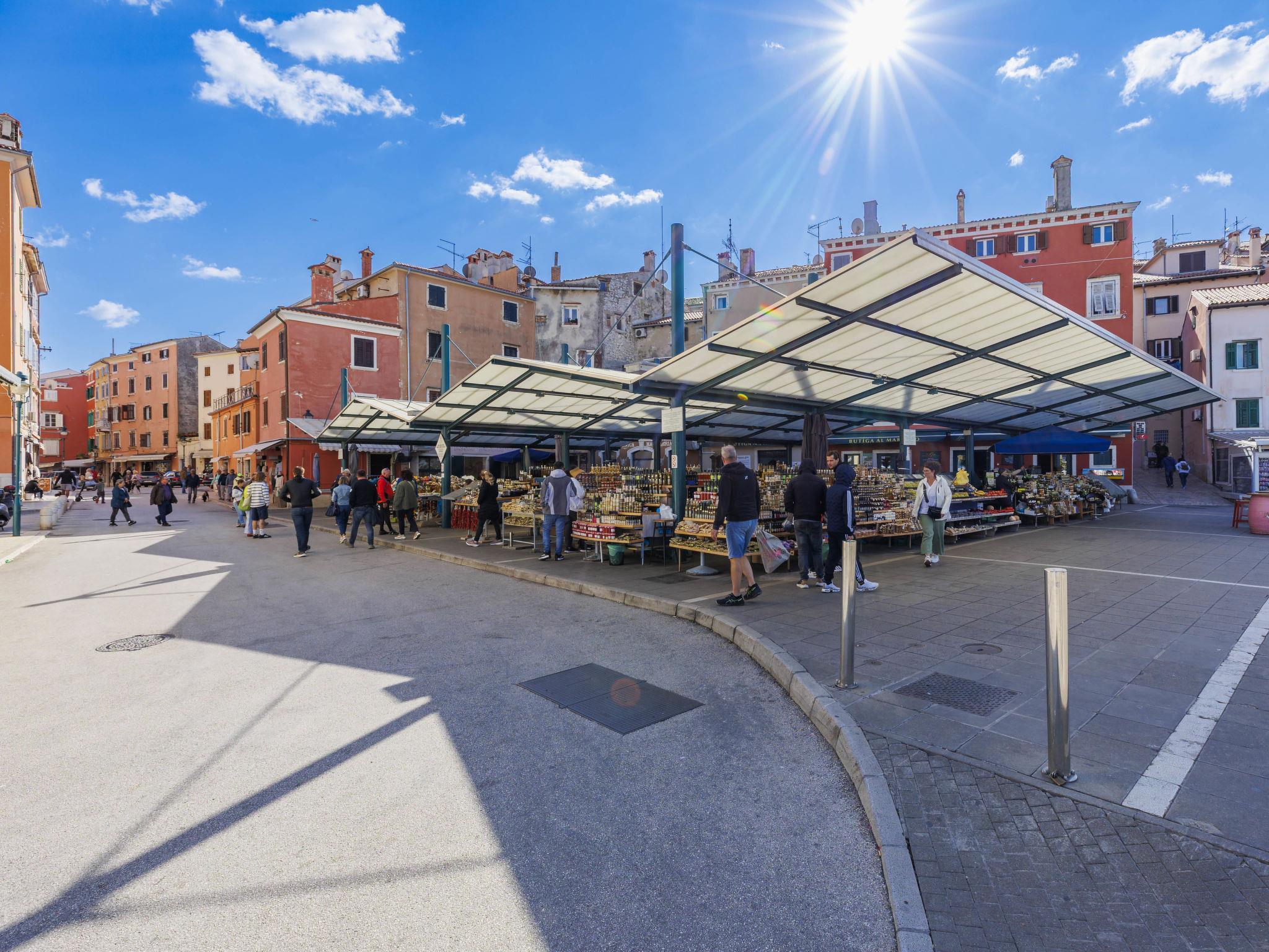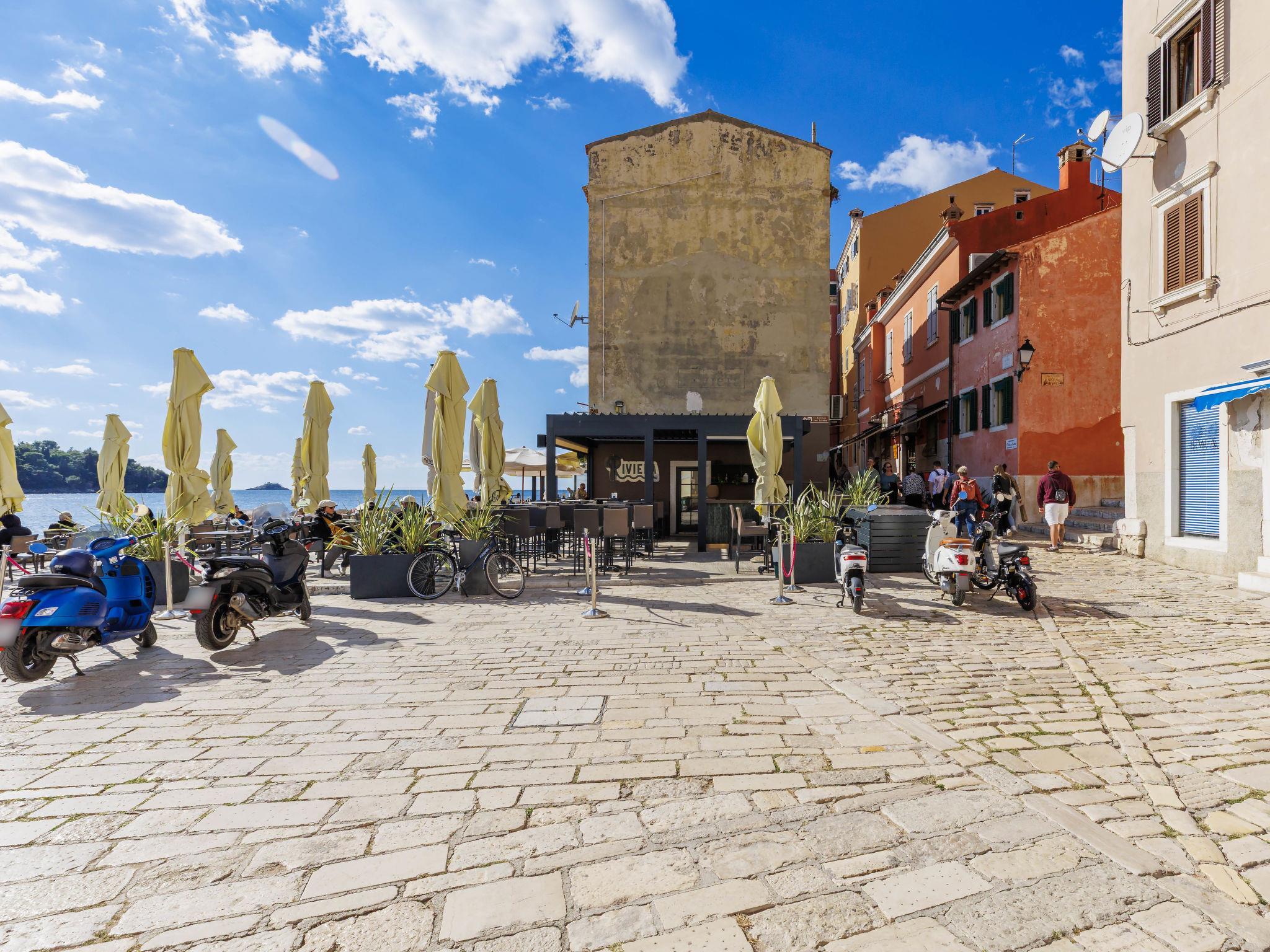 Apartment block. In the centre of Rovinj, 100 m from the sea, 100 m from the beach, in a pedestrian area. In the house: internet access. Available: bicycles (2). Motor access to 300 m from the house. Public parking 600 m extra. Shop, restaurant 100 m, café 10 m, bus stop 650 m, rocky beach 100 m, public bathing area 250 m. Please note: airfield 40 km from the property.
