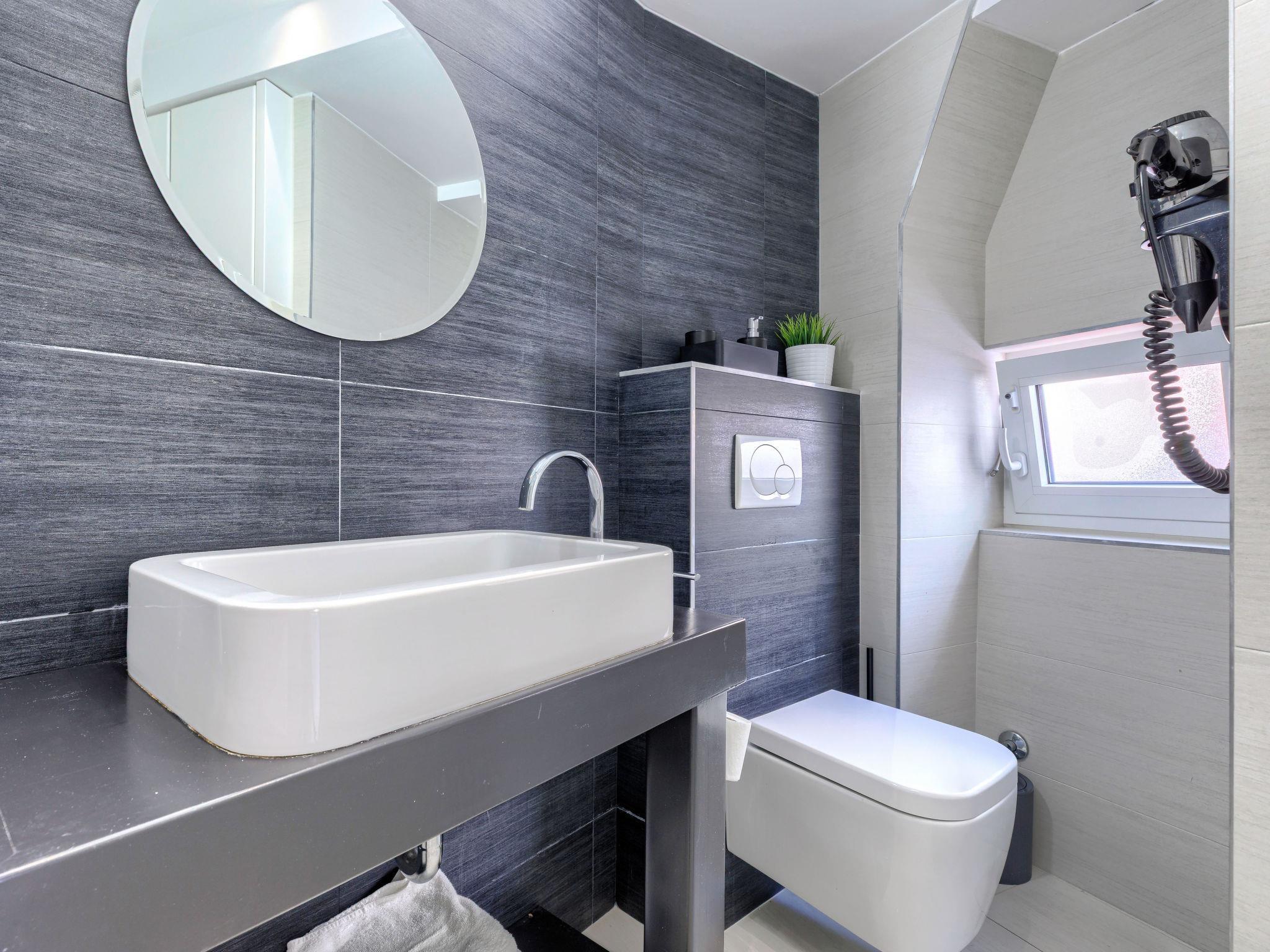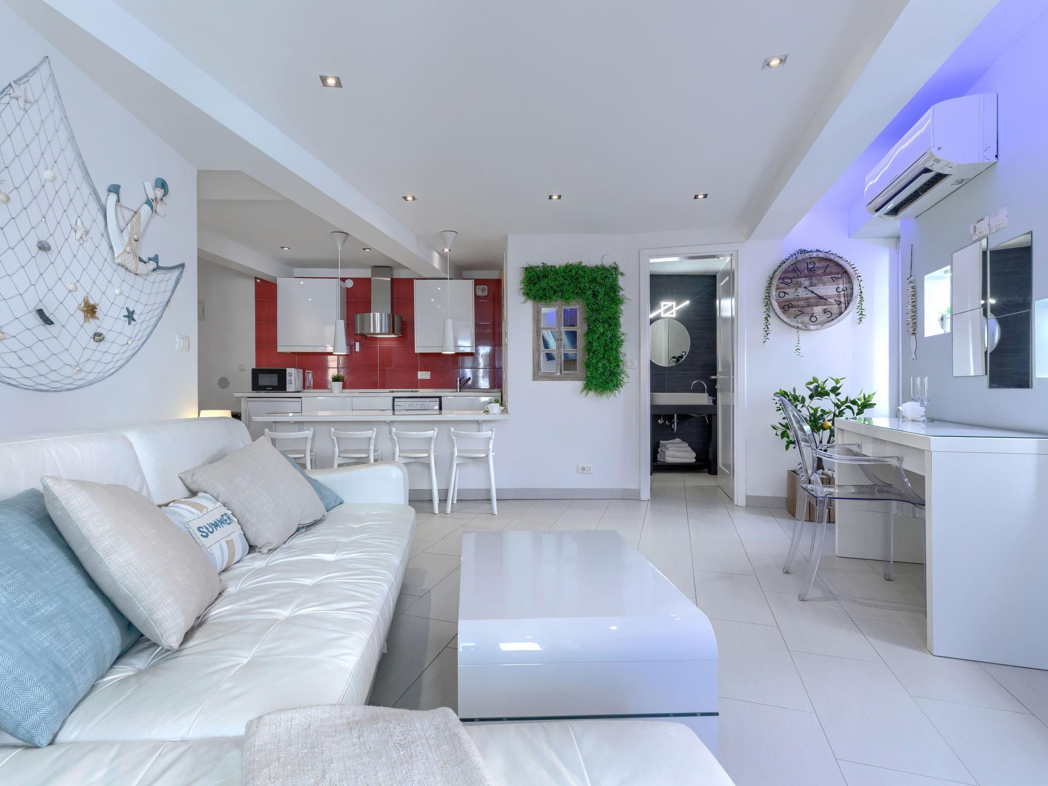 "Ambient", 2-room apartment 45 m2 on 1st floor. Bright, modern and tasteful furnishings: living/dining room with 1 double sofabed (160 cm, length 200 cm), cable TV and air conditioning. 1 room with 1 french bed (160 cm, length 200 cm), cable TV. Open kitchen (dishwasher, 2 ceramic glass hob hotplates, toaster, kettle, microwave, electric coffee machine). Bath/WC with corner bath. Forced-air heating. Facilities: washing machine, safe, iron, hair dryer. Internet (WiFi, free). 1 small pet/ dog allowed.