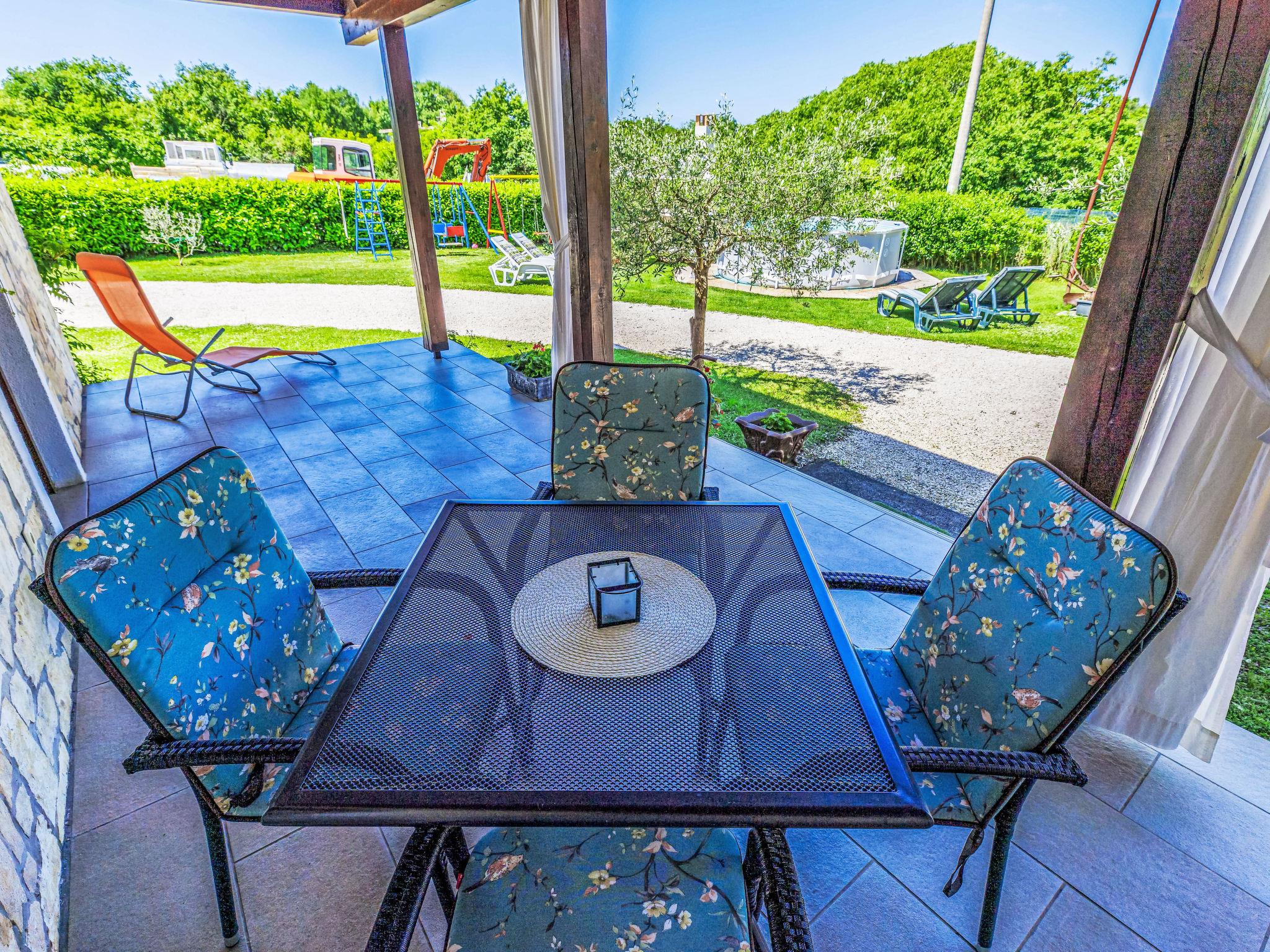 Semi-detached house "Cekic". 300 m from the centre of Sosici, 11 km from the centre of Rovinj, 26 km from the centre of Porec, 11 km from the sea. For shared use: property 400 m2 with lawn and trees, swimming pool round (3,5 m diameter, depth 140 cm, seasonal availability: 01.May. - 01.Oct.). Garden furniture, barbecue (swing). In the house: internet access. Parking (for 3 cars) on the premises. Shop 1.5 km, supermarket 3 km, bus stop 200 m, pebble beach 11 km. Marina 11 km.