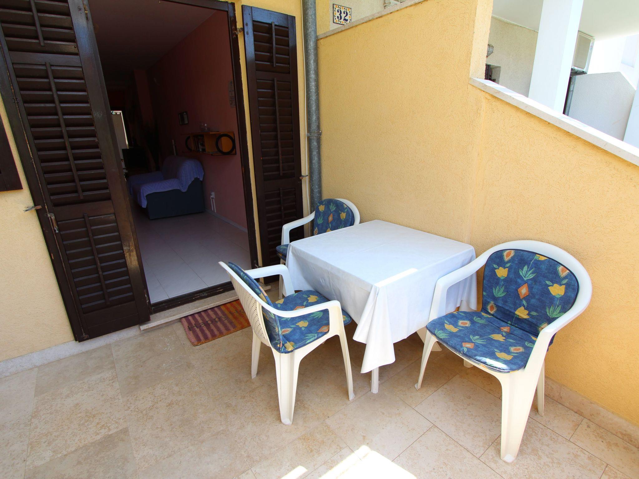 Inside the flat you will find a cosy ambience, which is further emphasised by the tiled floors. The accommodation is located on the first floor and has a functional and welcoming layout. Equipped with a bedroom with a double bed and a single bed, as well as a living area with a comfortable sofa, TV and dining table, the flat promises an unforgettable stay. The air conditioning in the living room ensures pleasant temperatures at any time of year. There is also a fully equipped kitchen with a gas and electric hob, oven, fridge with freezer compartment and kettle, leaving nothing to be desired.