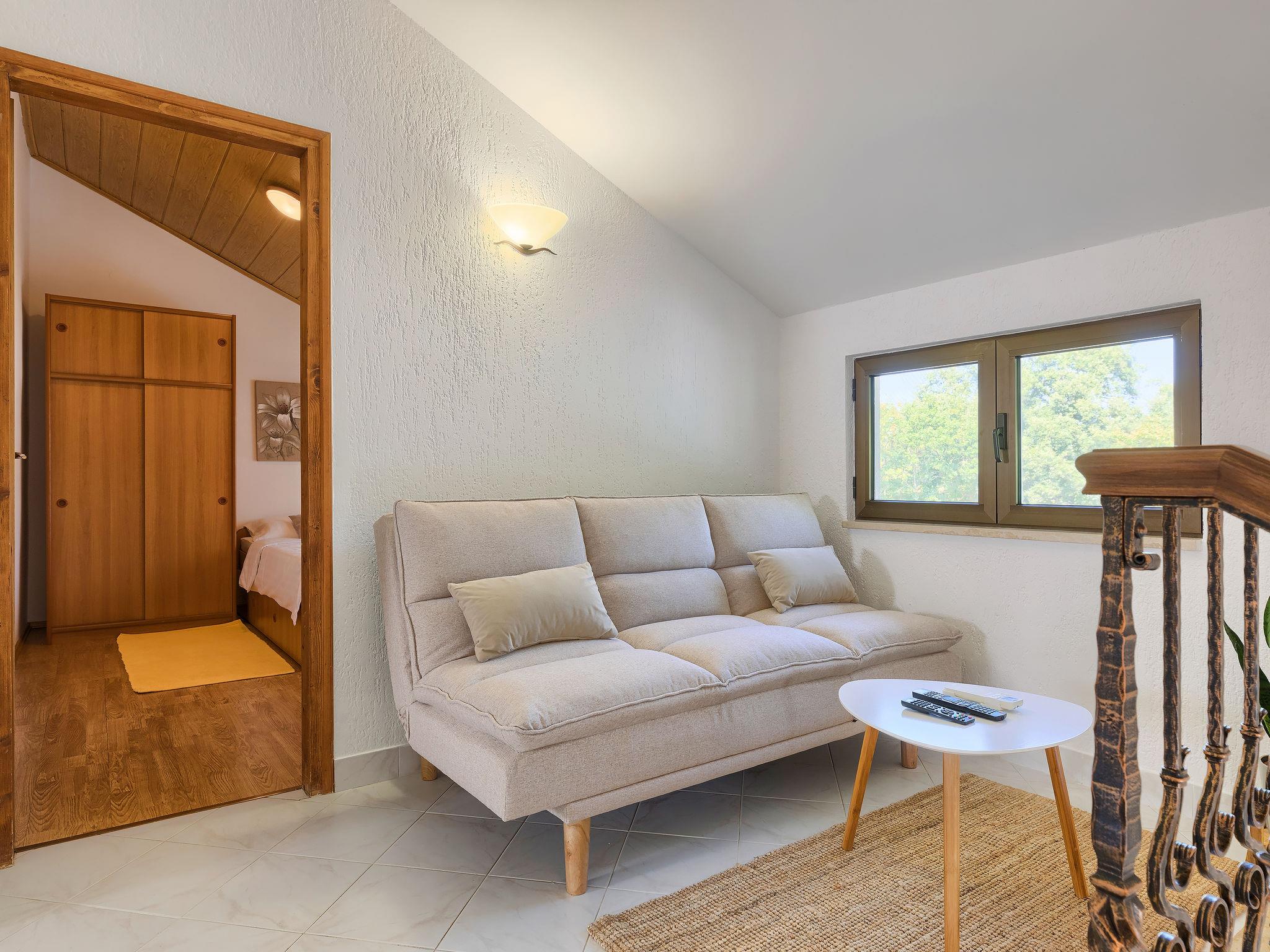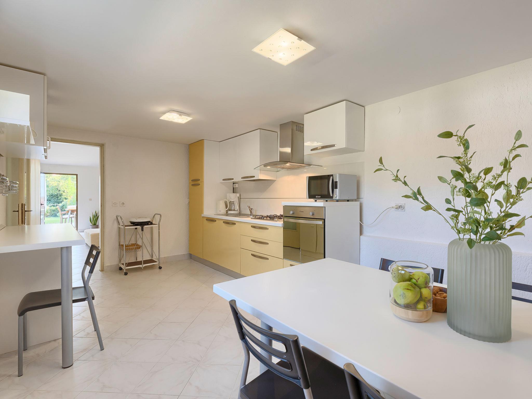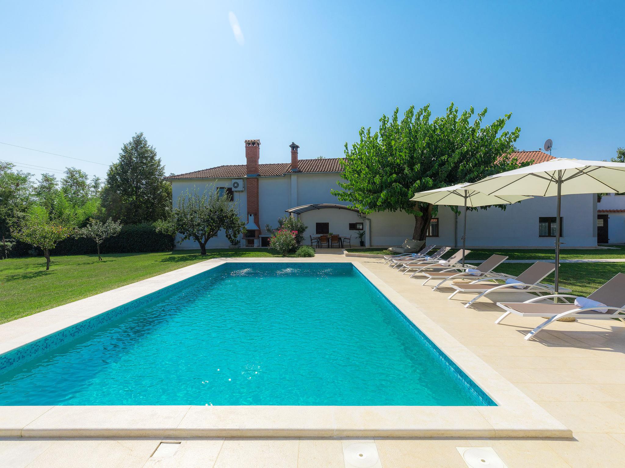 Semi-detached house "Tijan", 2 storeys. In the hamlet Tomišici 3.5 km from the centre of Žminj, 21 km from the centre of Rovinj, 21 km from the sea. Private: property 800 m2 (fenced) with lawn and trees, swimming pool angular (10 x 5 m, depth 130 cm, seasonal availability: 14.May. - 24.Sep.). Outdoor shower, table tennis, terrace, barbecue (swing). In the house: internet access, air conditioning, washing machine. Parking (for 3 cars) on the premises. Shop 3.5 km, restaurant 3.5 km, bus stop 1.4 km, rocky beach 21 km. Please note: airfield 35 km from the property.