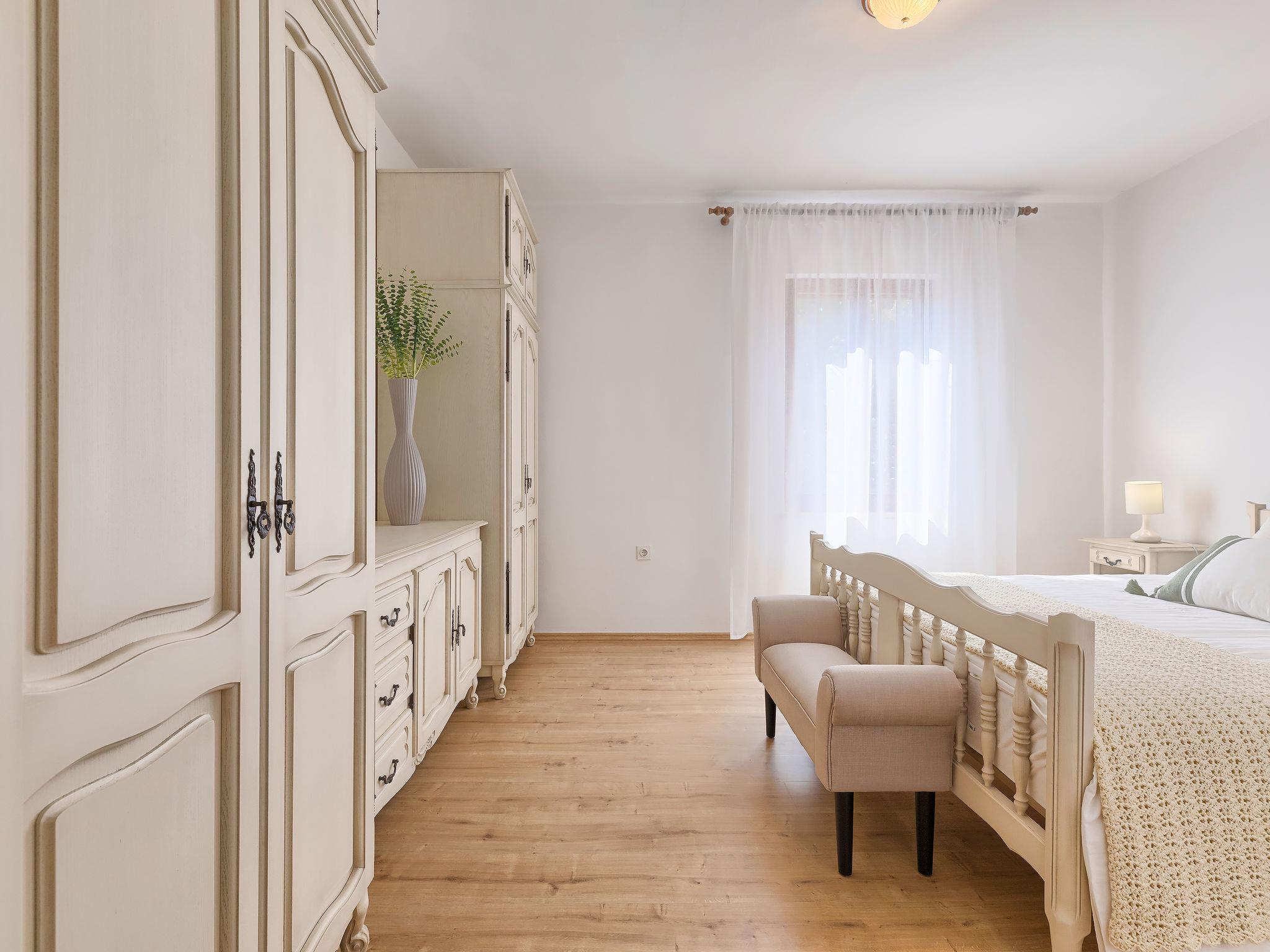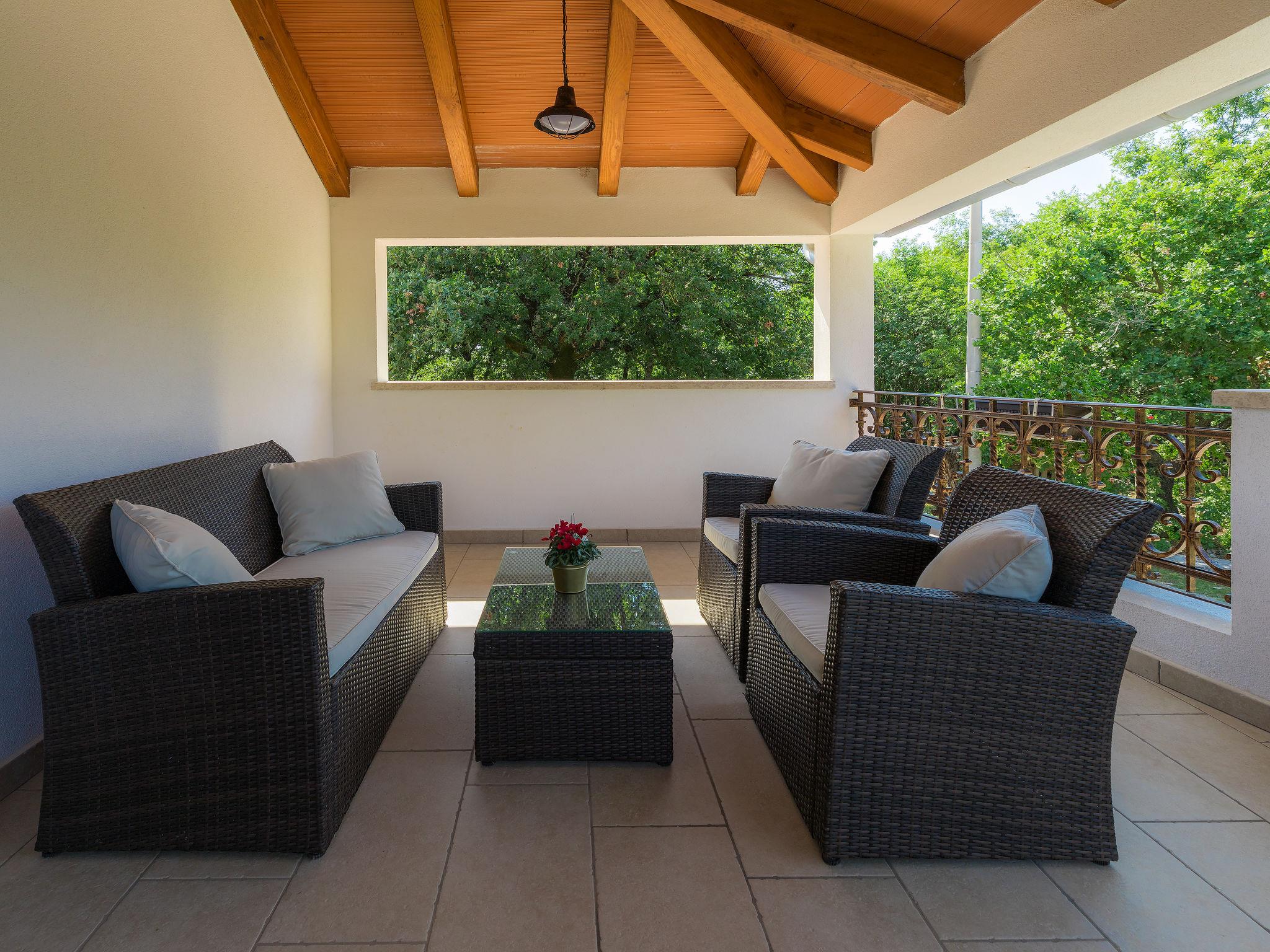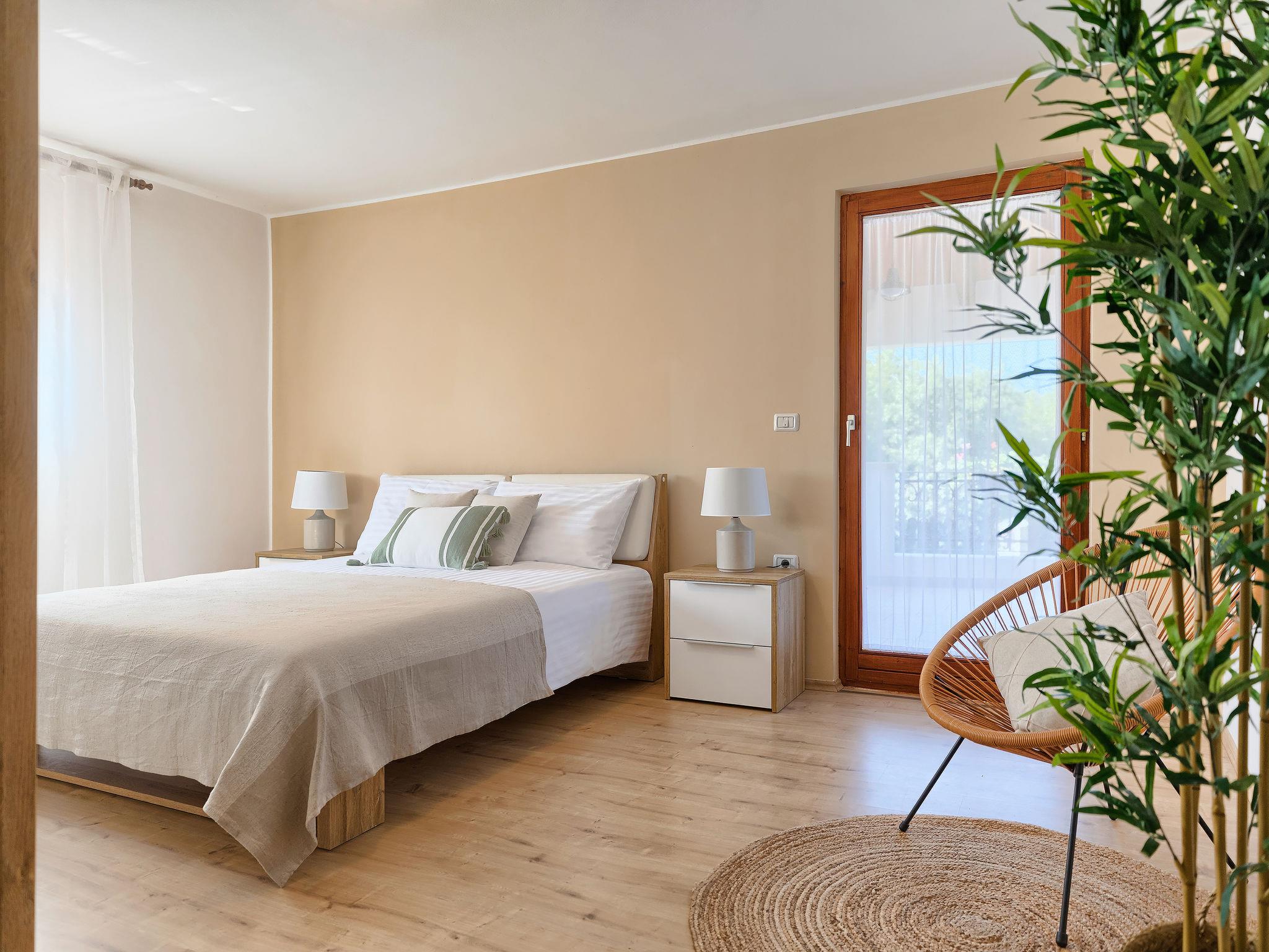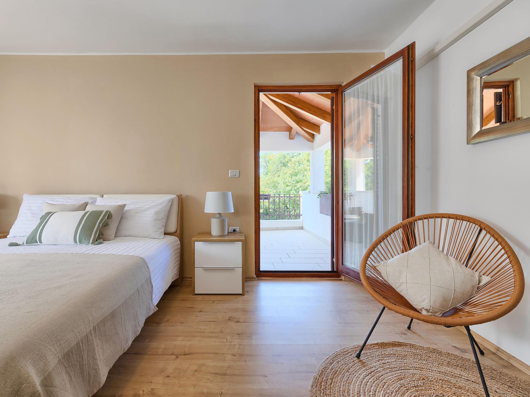 Semi-detached house "Tijan", 2 storeys. In the hamlet Tomišici 3.5 km from the centre of Žminj, 21 km from the centre of Rovinj, 21 km from the sea. Private: property 800 m2 (fenced) with lawn and trees, swimming pool angular (10 x 5 m, depth 130 cm, seasonal availability: 14.May. - 24.Sep.). Outdoor shower, table tennis, terrace, barbecue (swing). In the house: internet access, air conditioning, washing machine. Parking (for 3 cars) on the premises. Shop 3.5 km, restaurant 3.5 km, bus stop 1.4 km, rocky beach 21 km. Please note: airfield 35 km from the property.