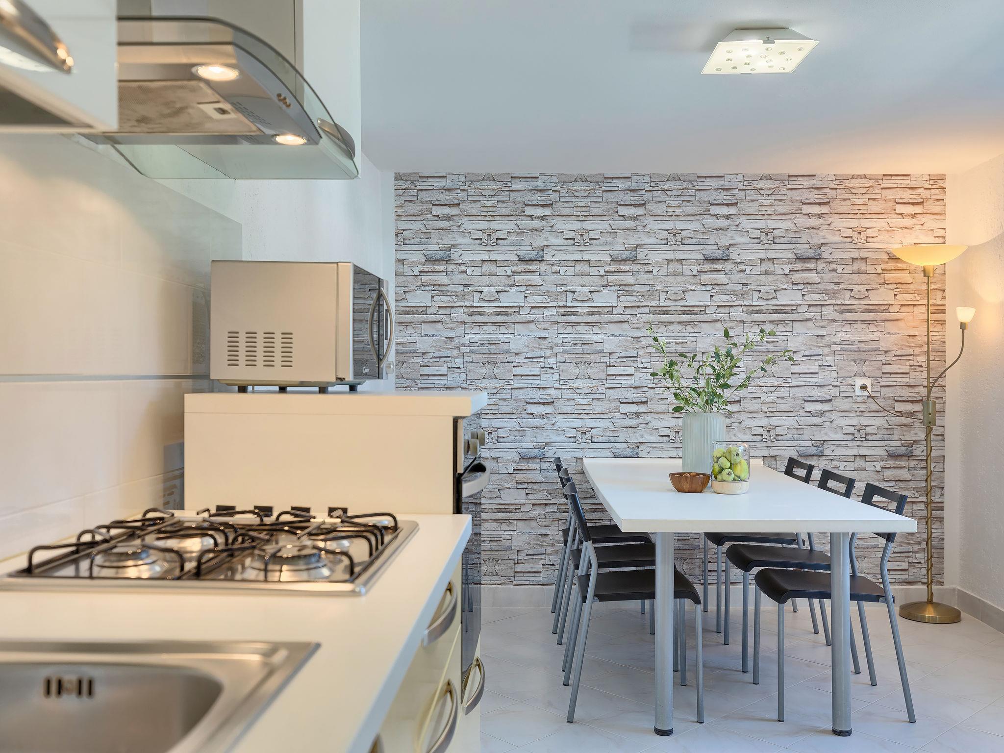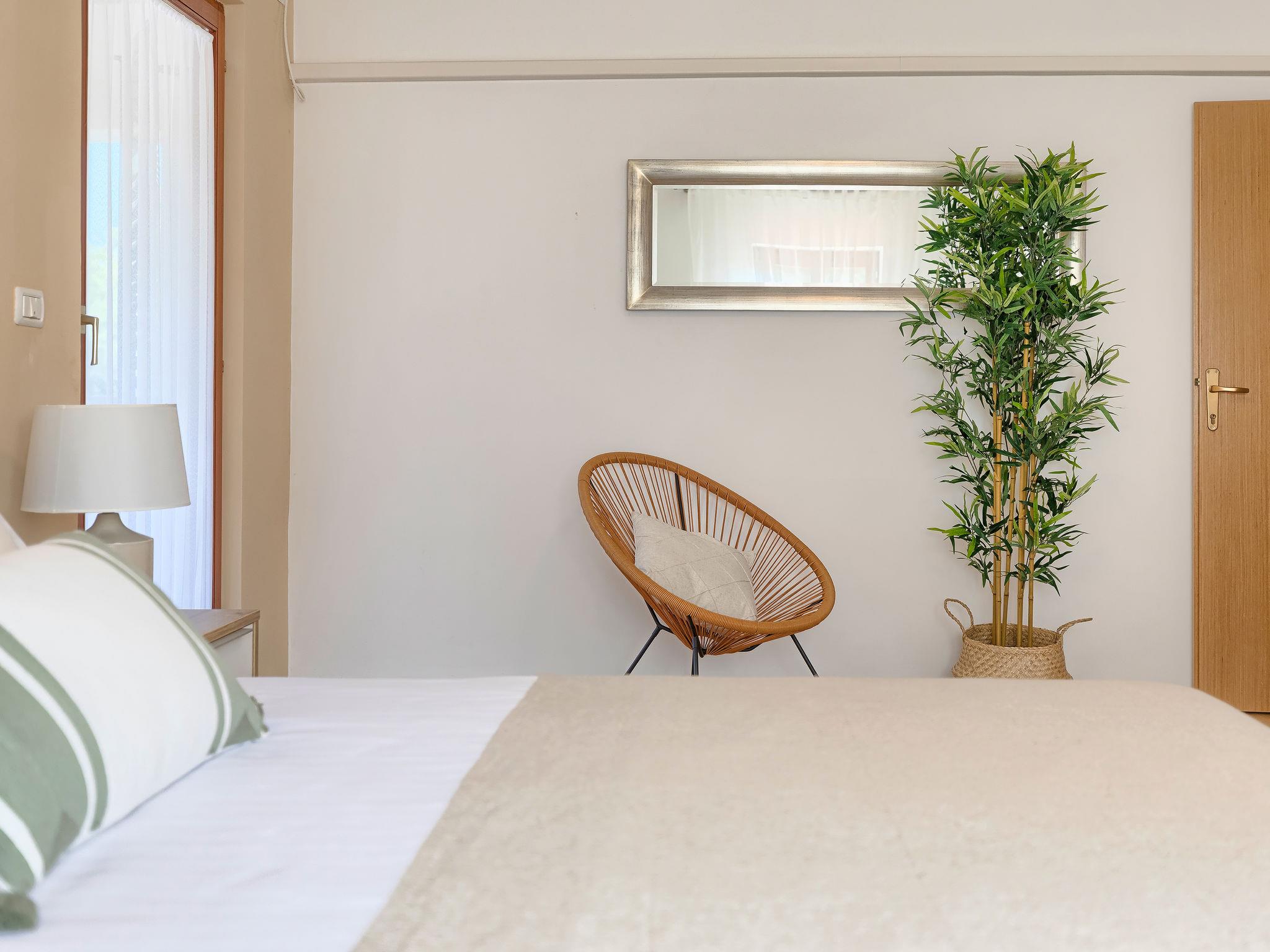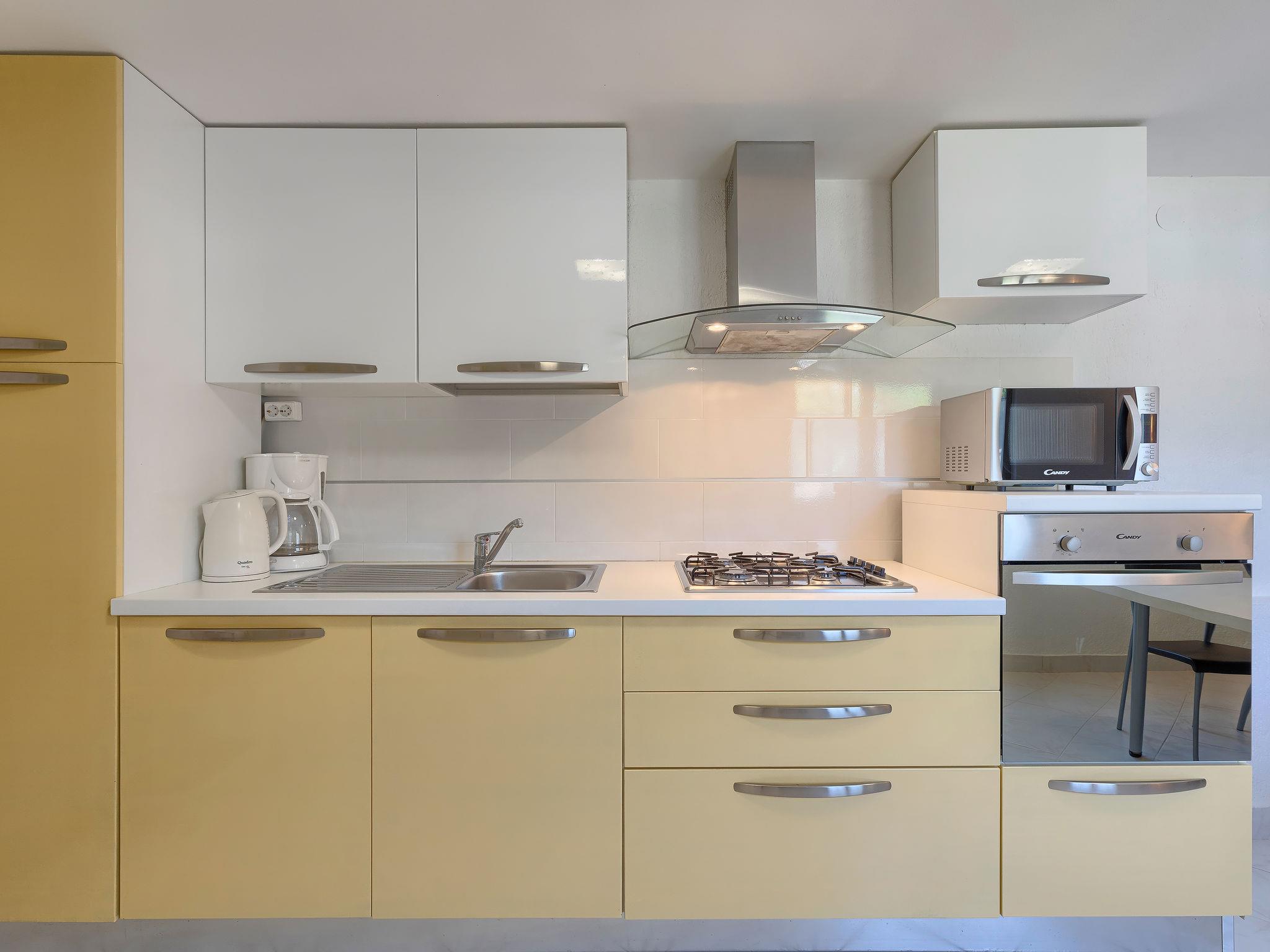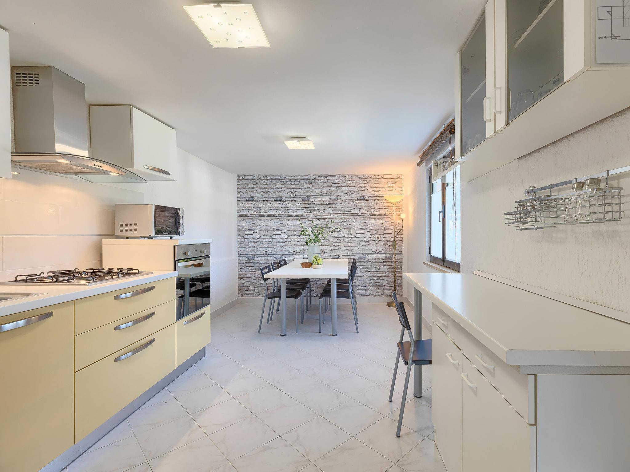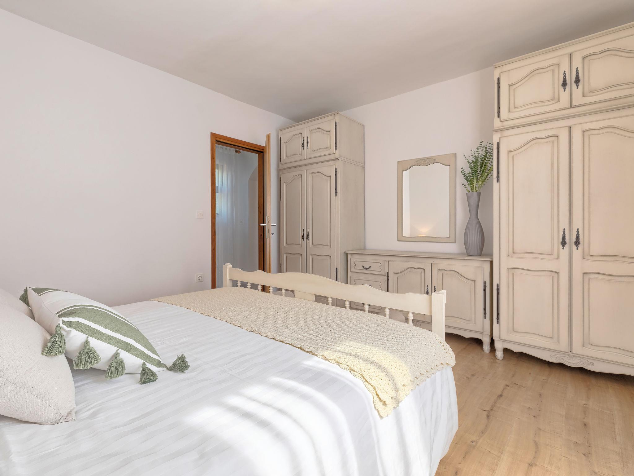 4-room semi-detached house 120 m2 on 2 levels. Kitchen (oven, dishwasher, 4 gas rings, toaster, kettle, microwave, freezer, electric coffee machine) with dining table. Shower/WC. Upper floor: entrance hall with air conditioning. 1 room with 1 french bed. Exit to the terrace. 2 rooms, each room with 1 french bed. 1 room with sloping ceilings with 1 bed. Shower/WC. No heating option. Terrace 20 m2 partly roofed terrace roofed. Terrace furniture, deck chairs, box-room. Facilities: iron, baby cot. Internet (WiFi, free). 2 small pets/ dogs allowed. Box-room accessible only from the outside.