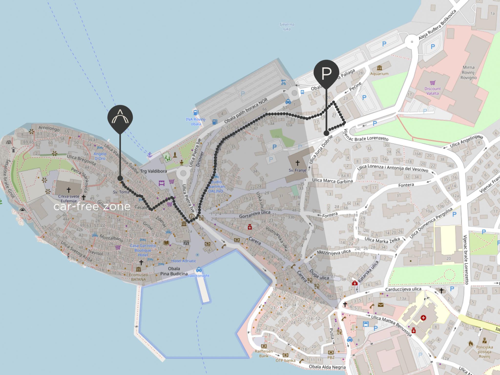 Casa Amando is located in the centre of the car-free old town of Rovinj, i.e. in the pedestrian zone: