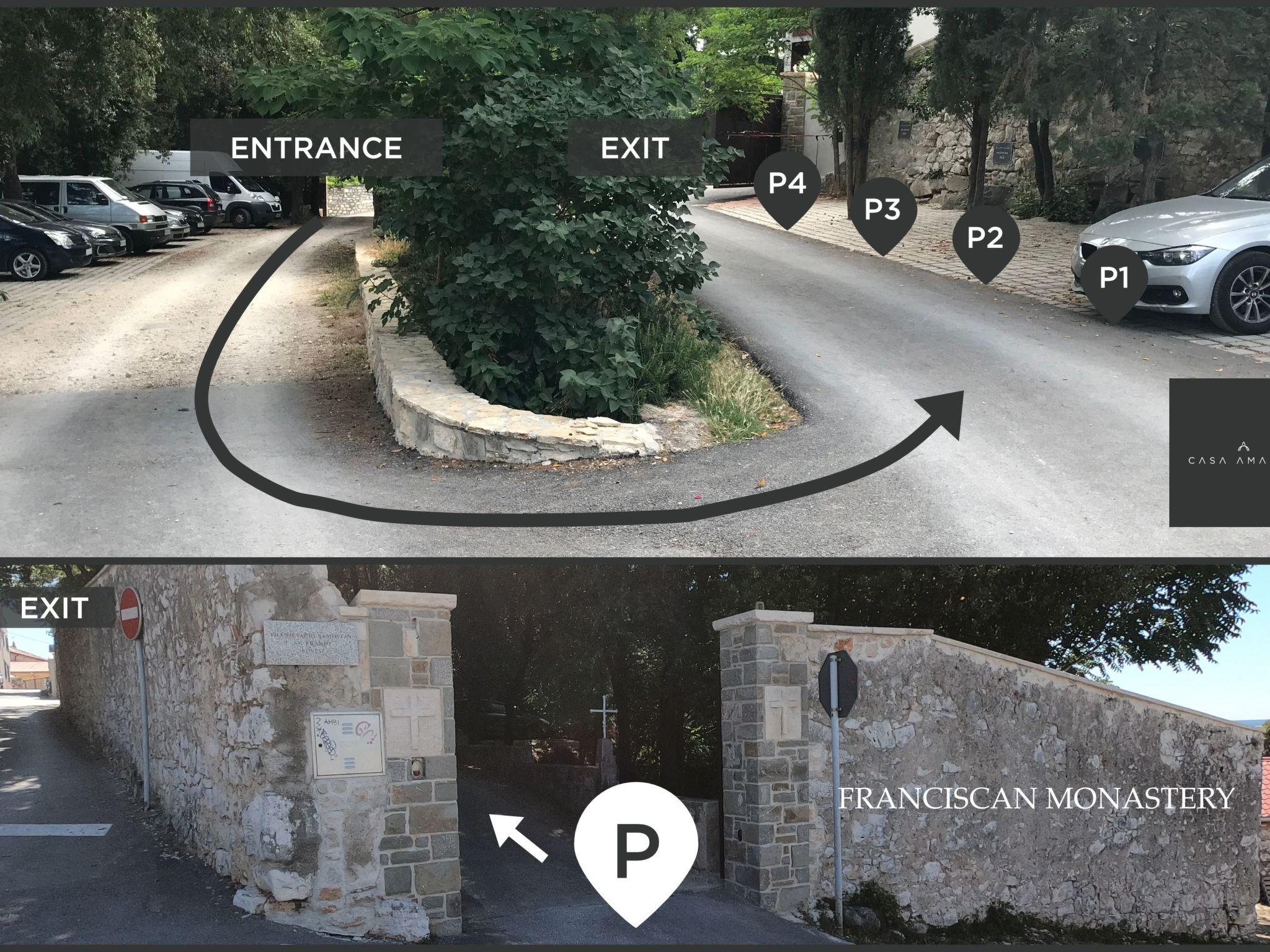 - Reserved parking spaces at the Franciscan monastery between May and October for an extra charge (850m, 10 minutes' walk away)