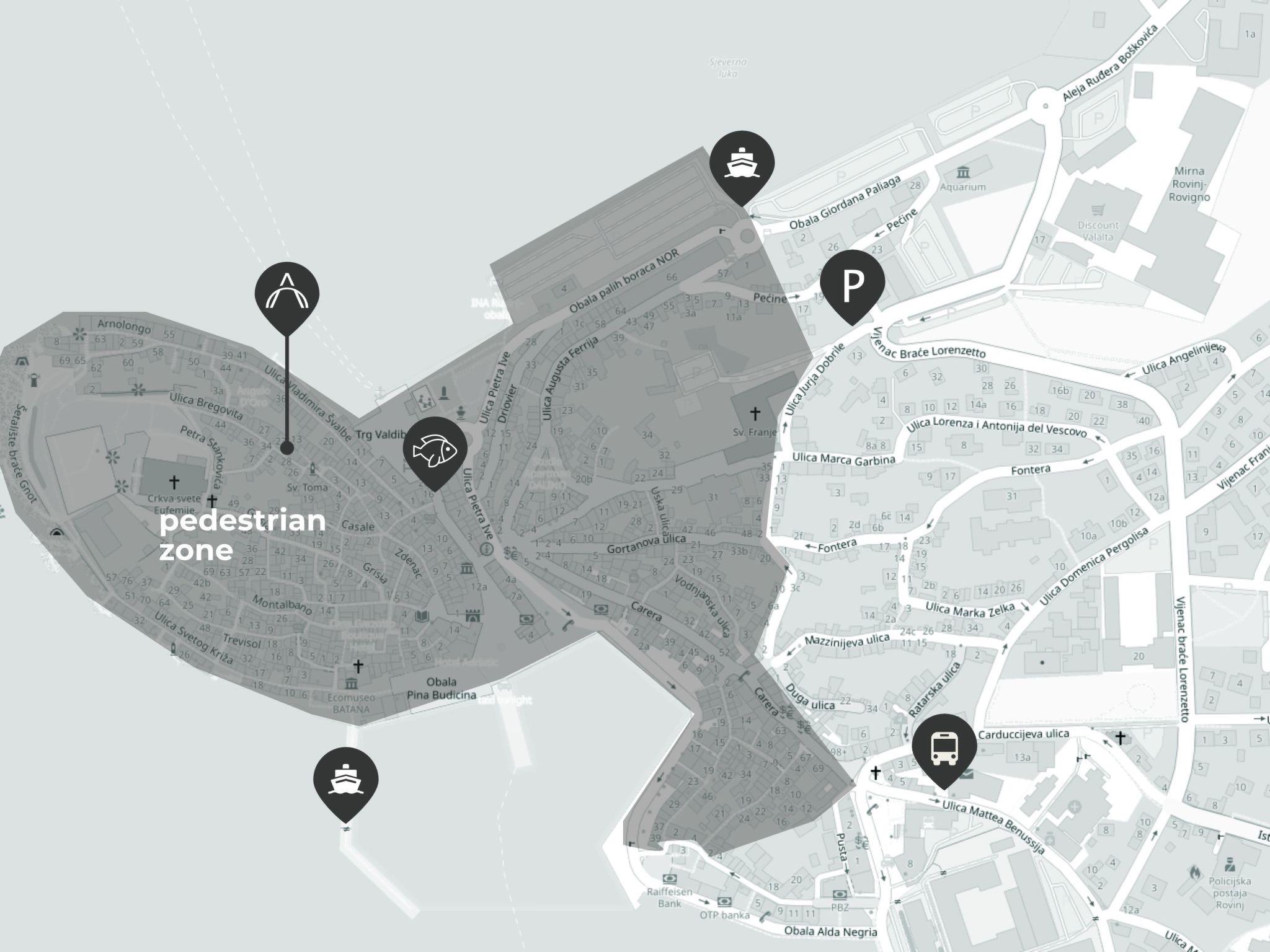Casa Amando is located in the centre of the car-free old town of Rovinj, i.e. in the pedestrian zone: