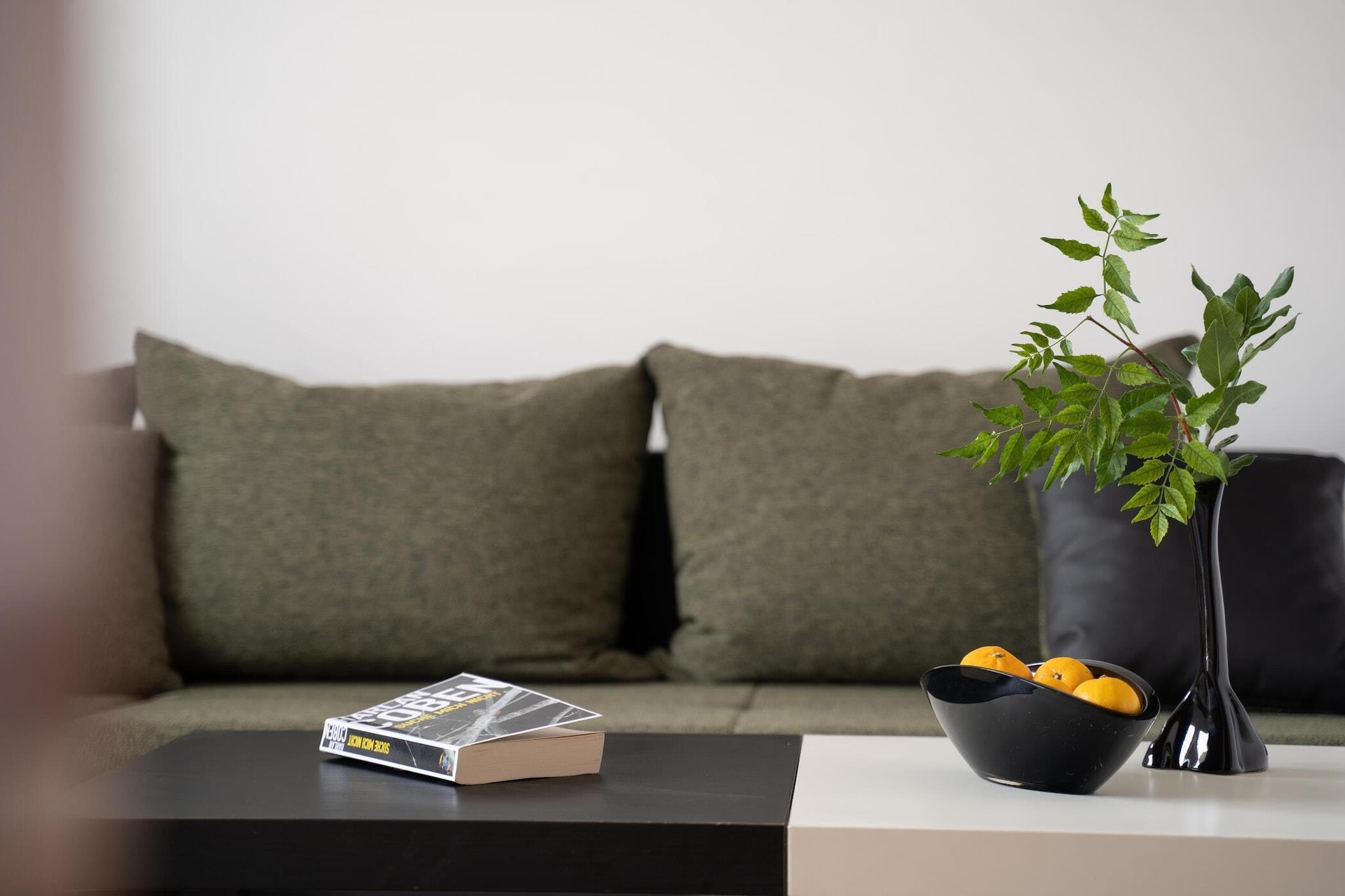 På 1. etage: (åbent køkken(kogeplade(induktion), elkedel, brødrister, kaffemaskine, mikrobølgeovn, køle-fryseskab), stue / spisestue(dobbeltsovesofa, Fjernsyn(parabol), spisebord, sofahjørne), soveværelse(dobbeltseng), badeværelse(bruser, toilet, føntørrer)) Reception, Internetadgang, Internetadgang, Morgenmadsrum, vaskemaskine(deles med andre gæster), balkon, klimaanlæg, havemøbler, grill(deles med andre gæster), parkering, strygejern, baby crib(free)