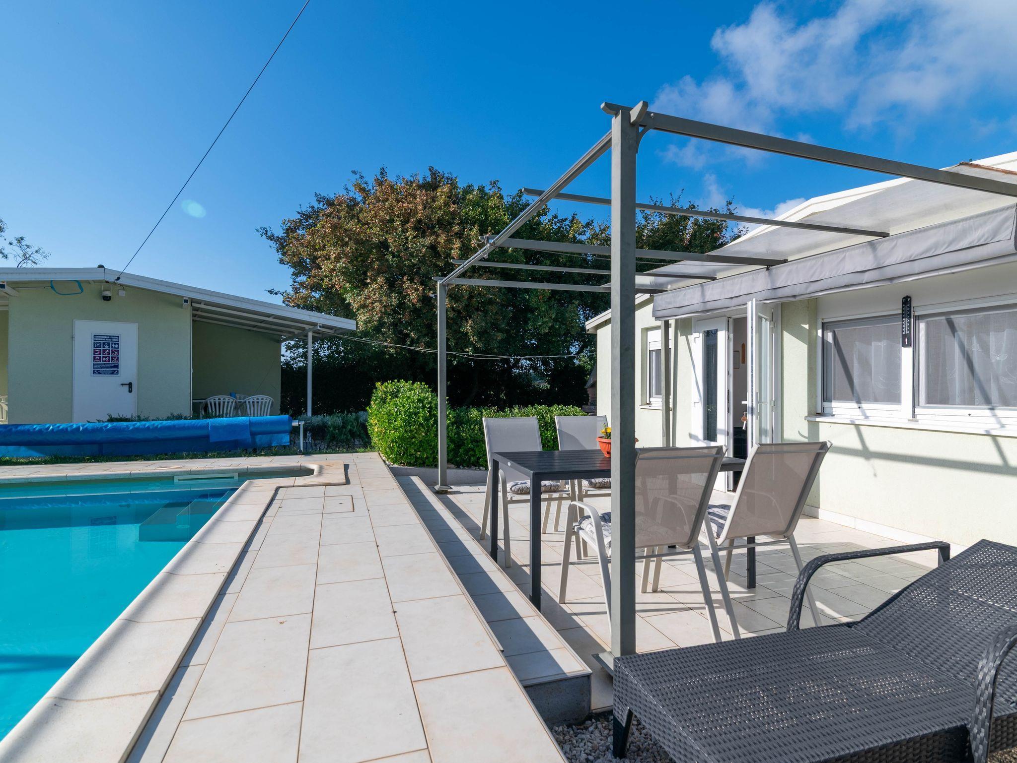 Umgebung des Objekts (Ordentlich), Hof (800m2, Kinderbereich, Sitzbereich), Parkplatz (Anzahl der Parkplätze: 4, Entfernung vom Objekt: im Hof), Pool: privat, Dimensionen: 8.5m x 4.5m x 1.4m, Wassertyp: Süßwasser, WiFi Internet, Fahrrad (Anzahl: 5), Föhn, Bügeleisen, Bügelbrett, Kinderbett