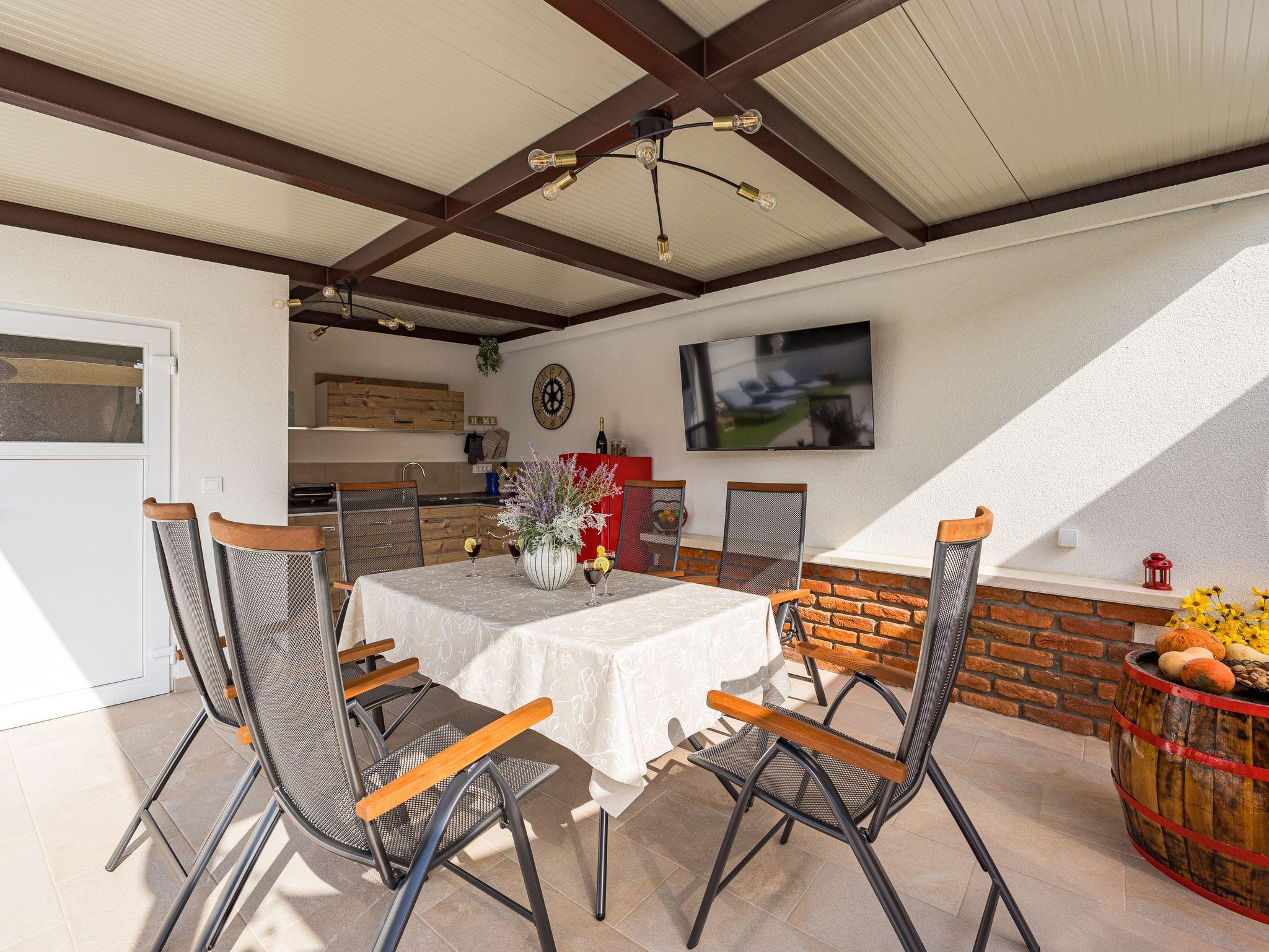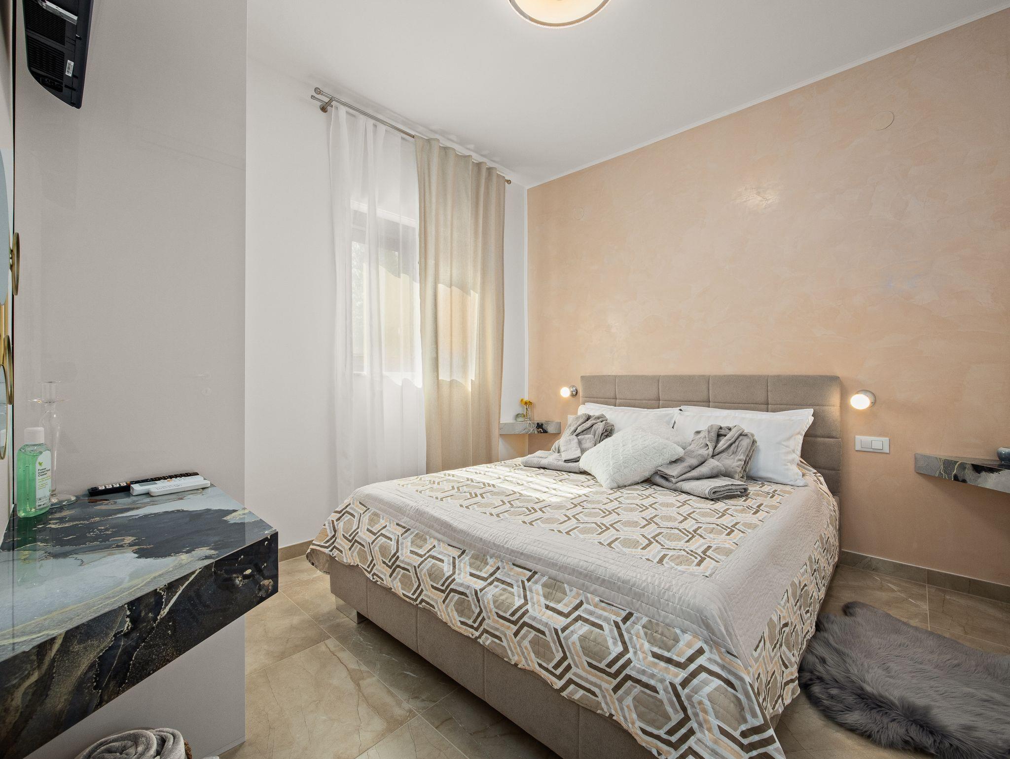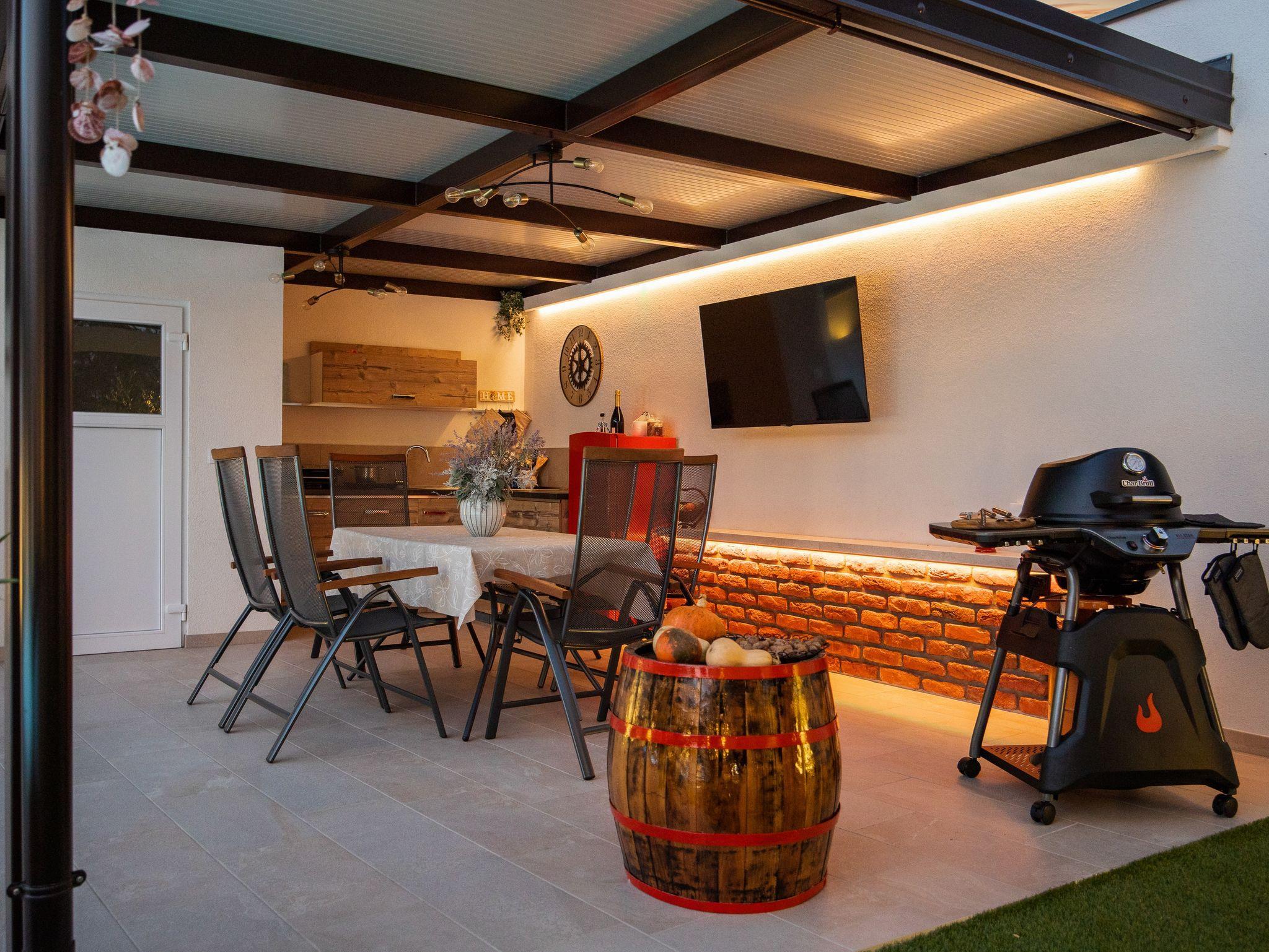 Haus bietet Platz für 5 Gäste. Die Betten sind in Schlafzimmern, die es 2 gibt, und in Wohnzimmer, innerhalb einer Gesamtfläche von 138m2, angeordnet. Die Gäste haben eine eigene Terrasse zur Verfügung, auf der sie in warmen Sommernächten genießen können. Für vollen Genuss und Entspannung gibt es einen privaten Grill für Gäste dieser Unterkunft. Während ihres Aufenthalts können sich Gäste im privaten Schwimmbad entspannen. In der Unterkunftseinheit besteht die Möglichkeit des Mitbringens von Haustieren gegen Aufpreis. IM PREIS INBEGRIFFEN: Kurtaxe, Endreinigung, Klimatisierung, Zentralheizung, Pool, Parkplatz, Internet, Kinderbett, Zusatzbett, Bügeleisen, Bügelbrett, Föhn, Sonnenschirm, Liegestühle. UNVERBINDLICHE ZUSÄTZLICHE KOSTEN: Haustiere (15,00 € pro Nacht). Die Verfügbarkeit zusätzlicher Dienstleistungen in Ihrem reservierten Termin und die Preise derselben (falls nicht aufgeführt) müssen im Voraus überprüft werden. Zusätzliche Dienstleistungen die in der Zahlungsaufforderung nicht aufgeführt sind werden direkt beim Vermieter bezahlt, angenommen der Gast nutzt auch diese.
