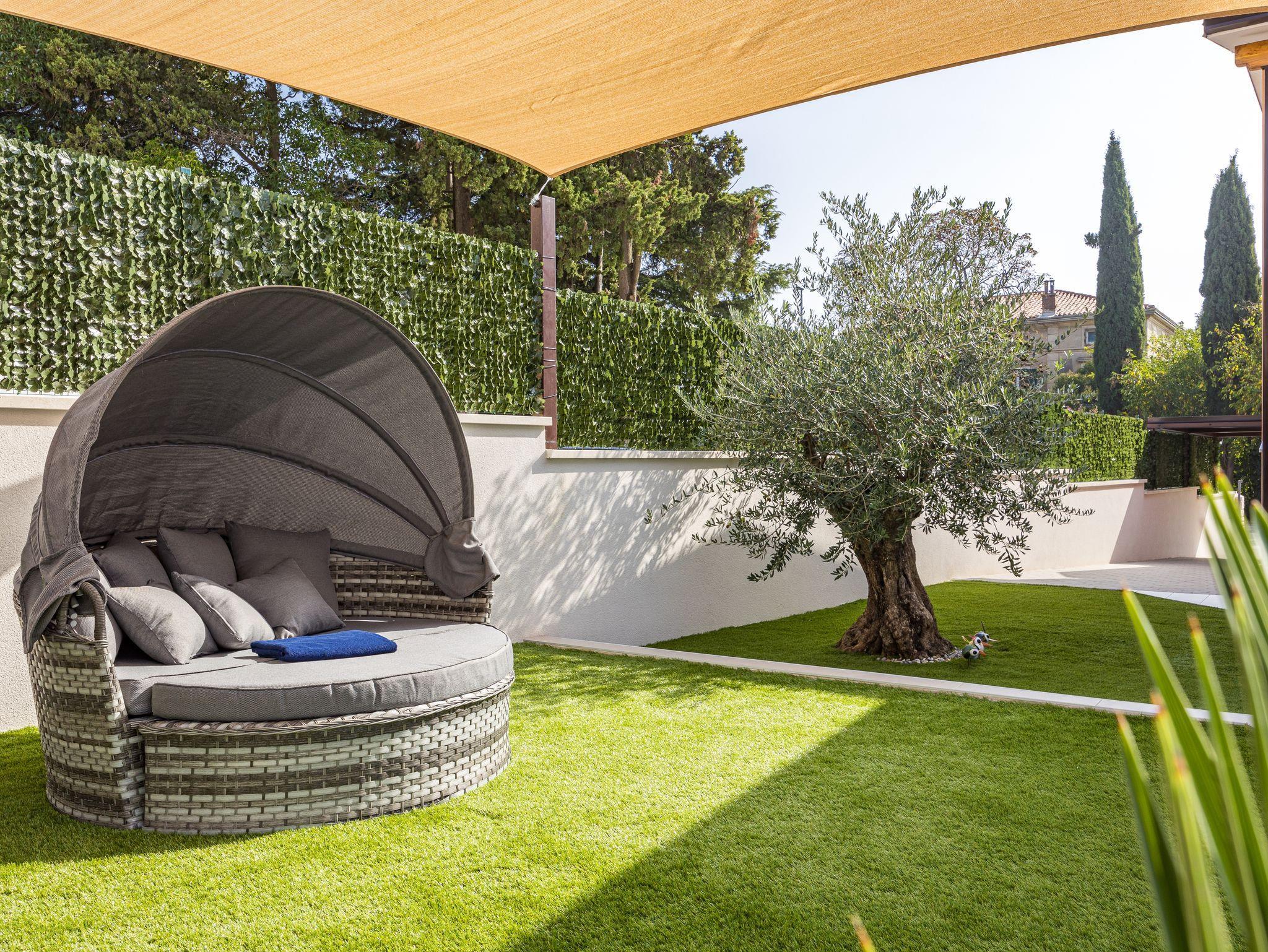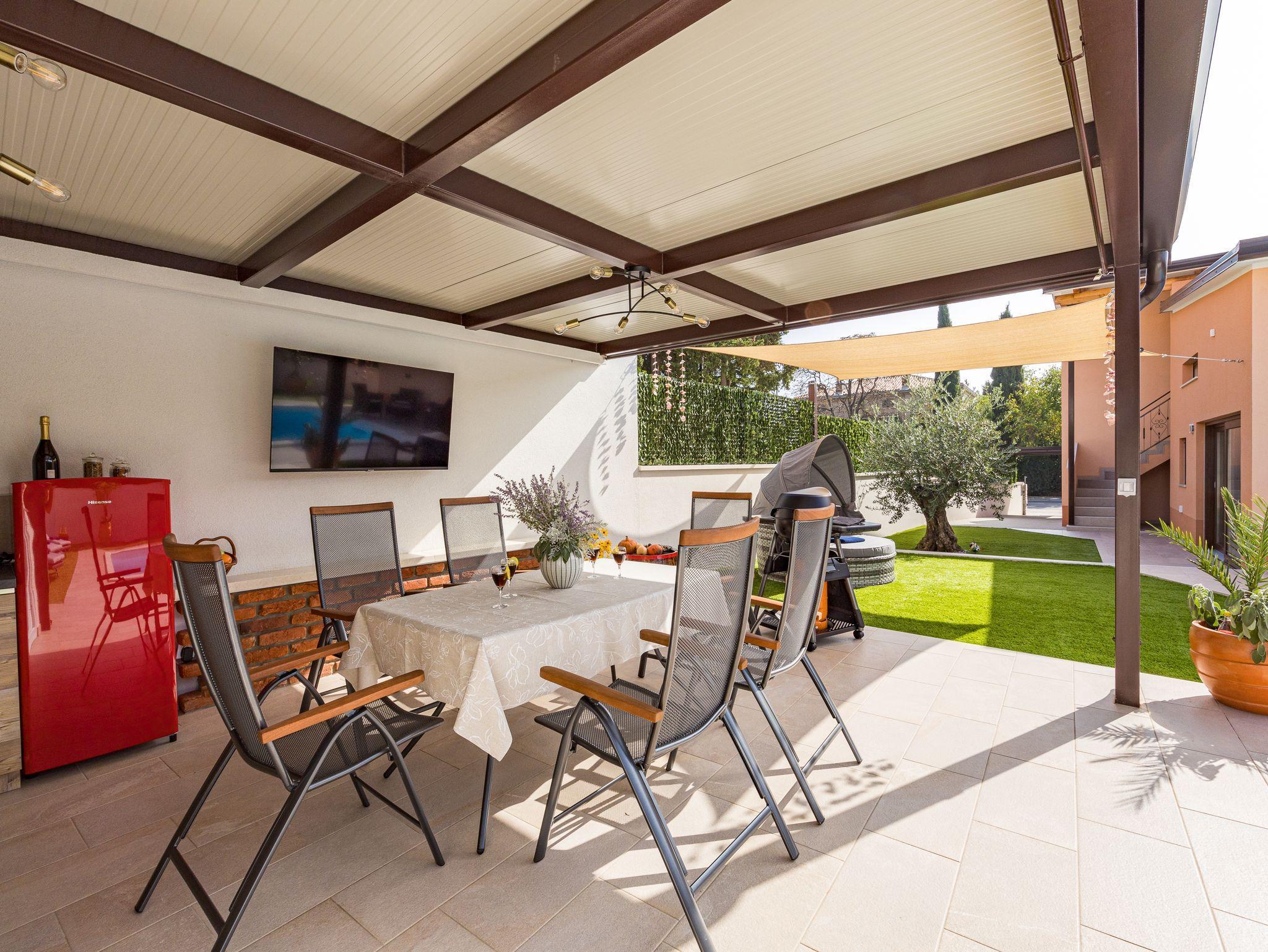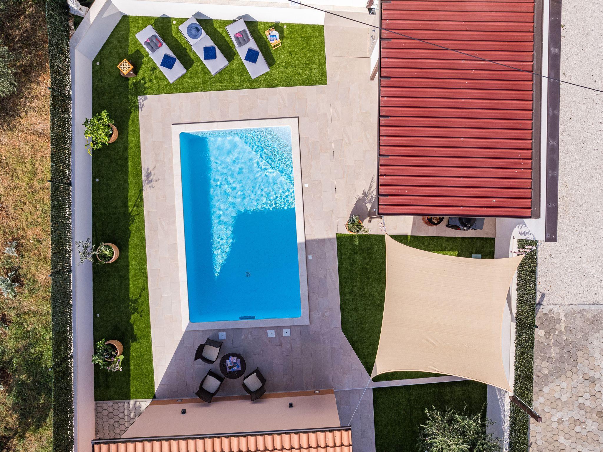 Umgebung des Objekts (Eingerichtet), Hof (300m2, Kinderbereich, Sitzbereich), Parkplatz (Anzahl der Parkplätze: 3, Entfernung vom Objekt: im Hof), Pool: privat, Dimensionen: 6m x 3.5m x 1.2m, Wassertyp: Salzwasser, WiFi Internet, Föhn, Bügeleisen, Bügelbrett, Sonnenschirm, Liegestühle, Kinderbett