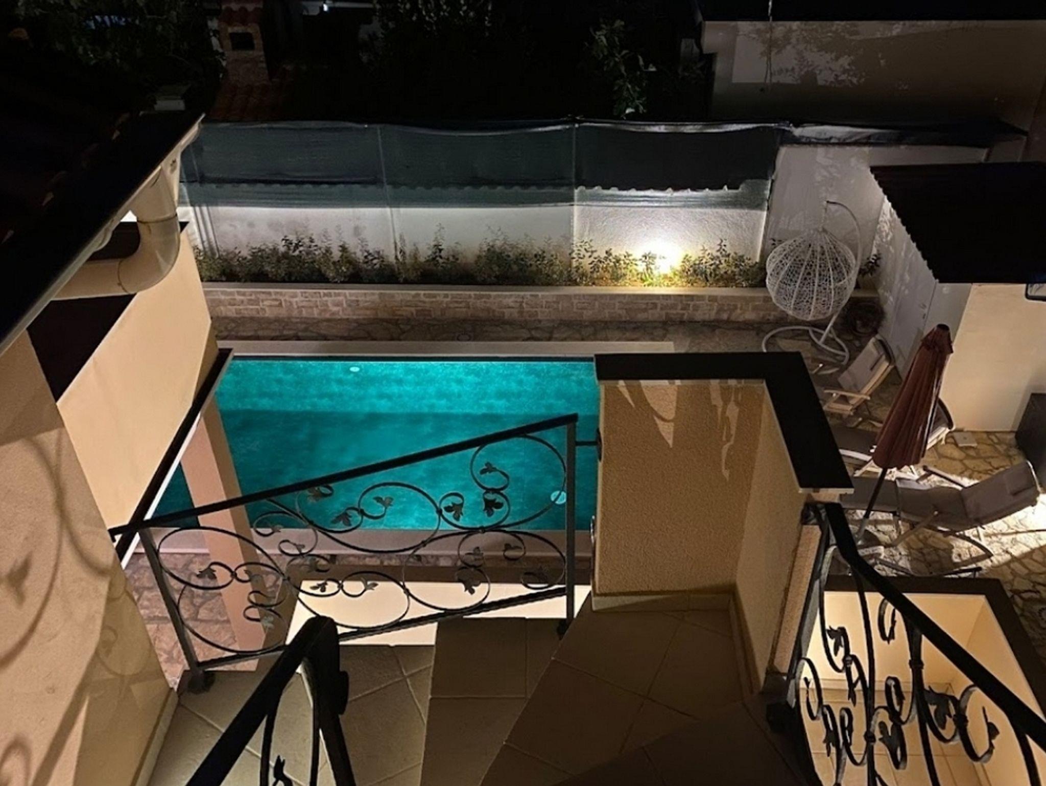 Umgebung des Objekts (Ordentlich), Hof (550m2, Sitzbereich), Parkplatz (Anzahl der Parkplätze: 6, Entfernung vom Objekt: im Hof), Pool: gemeinsam, Dimensionen: 14m x 4m x 1.5m, Wassertyp: Süßwasser, Heizung: Ja, Grill: gemeinsam, WiFi Internet, Föhn, Bügeleisen, Bügelbrett, Kinderbett