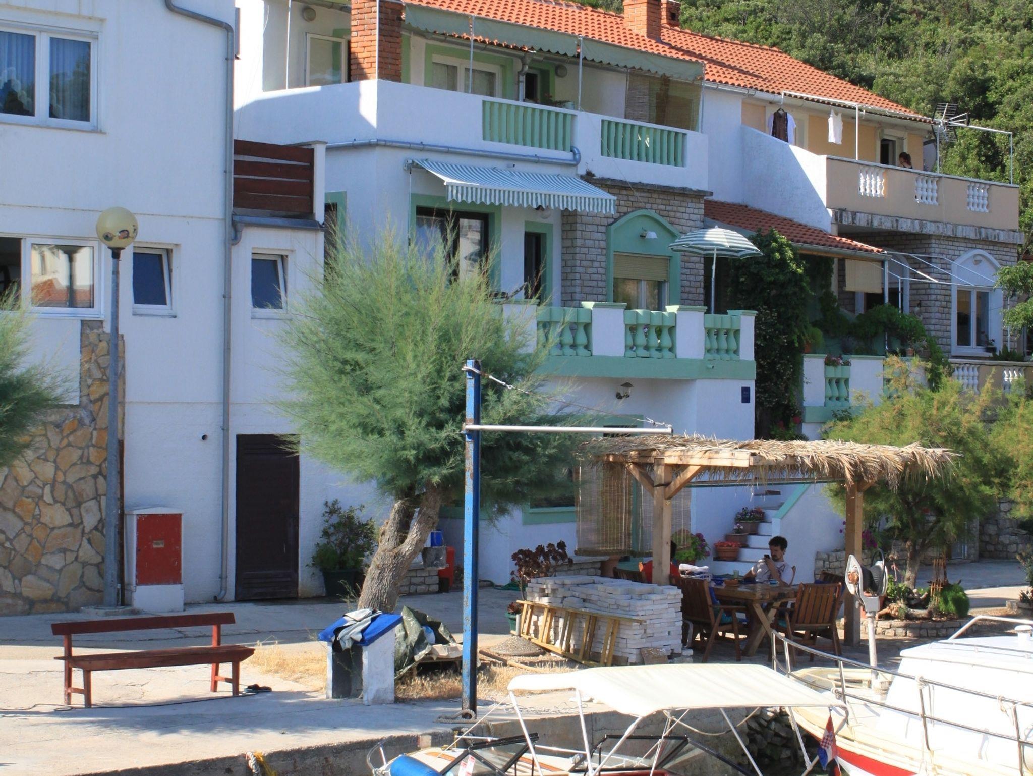Umgebung des Objekts (Ordentlich), Hof (30m2, Wird mit einem anderen Objekt mitbenutzt, Sitzbereich), Grill: gemeinsam, WiFi Internet, Wäschewaschen, Bootsanlegeplatz (Entfernung vom Objekt: 10 m, Bootsanlegeplatztyp: an der Küste), Föhn, Bügeleisen, Bügelbrett, Liegestühle, Kinderbett