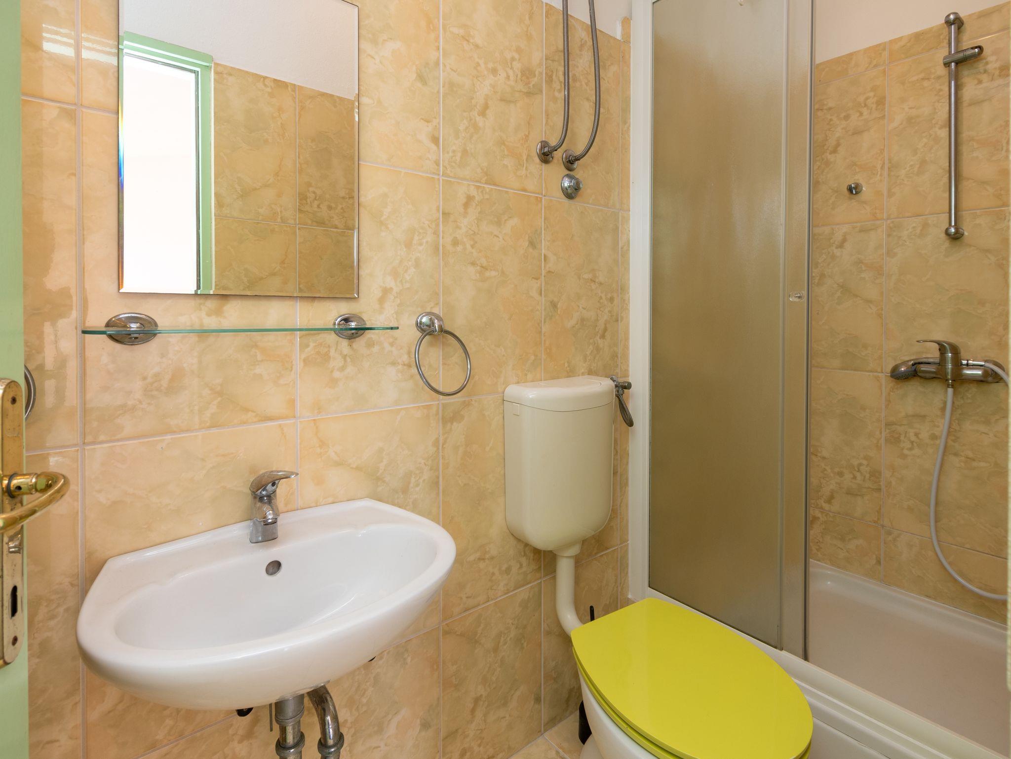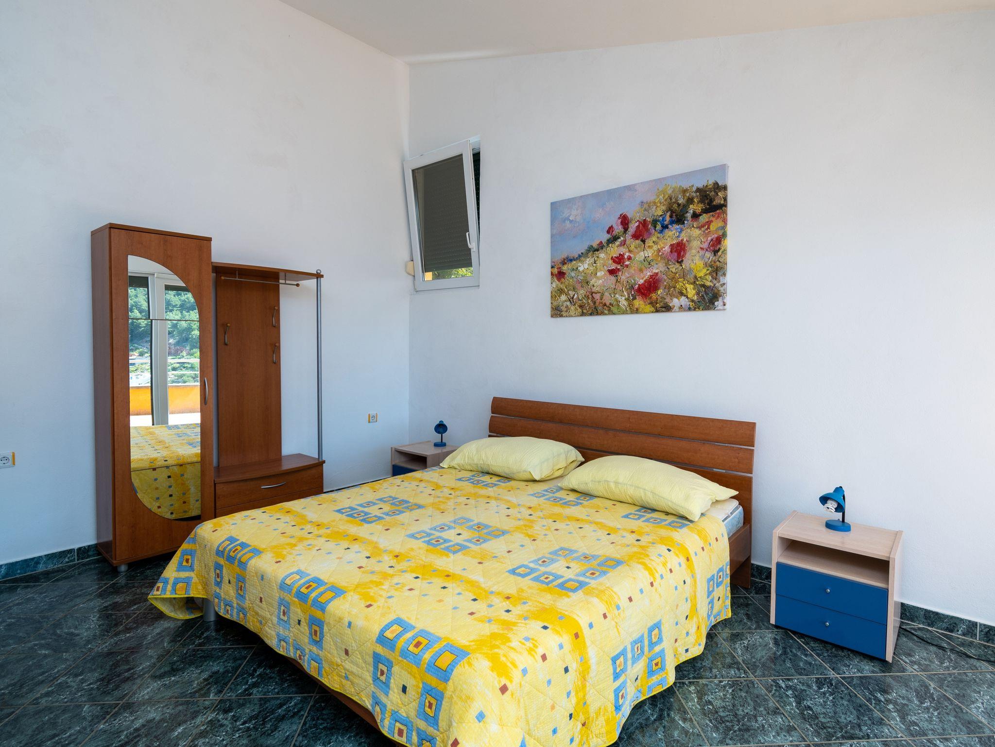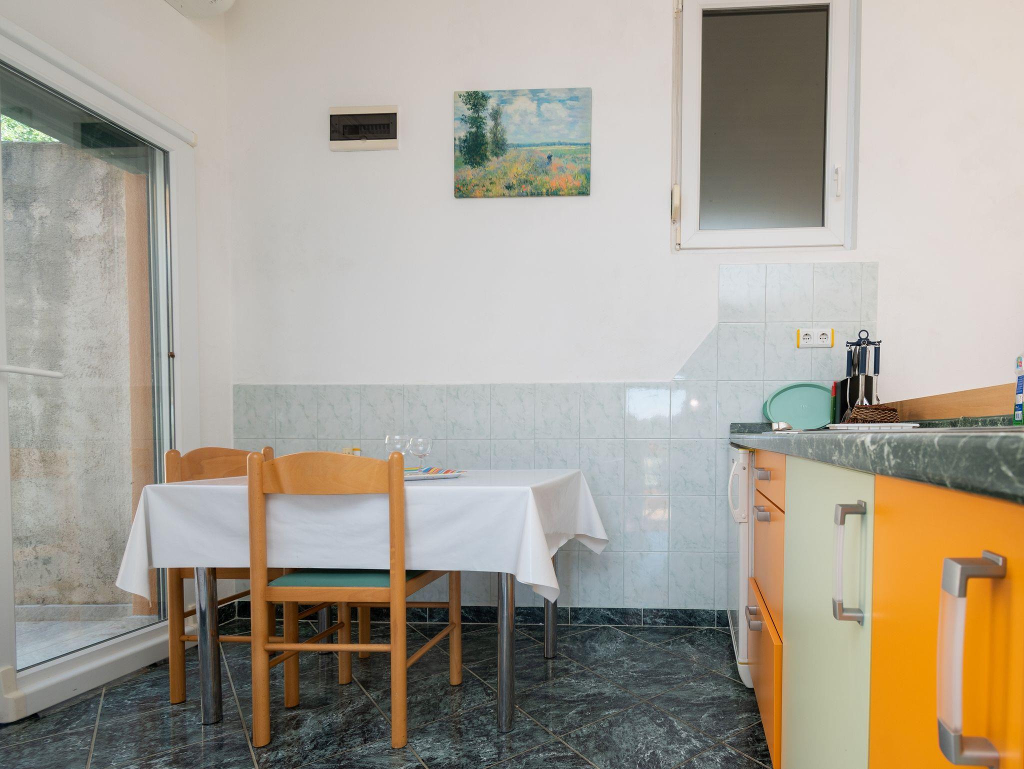 Studio bietet Platz für 2 Gäste. Die Betten sind in Schlafzimmern, die es 1 gibt, innerhalb einer Gesamtfläche von 24m2, angeordnet. Die Gäste haben eine eigene Terrasse zur Verfügung, auf der sie in warmen Sommernächten genießen können. Das Studio-Apartment bietet Meerblick. Es ist erlaubt, Speisen auf dem Gemeinschafts-Grill vorzubereiten. In der Unterkunftseinheit besteht die Möglichkeit des Mitbringens von Haustieren gegen Aufpreis. IM PREIS INBEGRIFFEN: Kurtaxe, Endreinigung, Klimatisierung, Parkplatz, Internet, Zusatzbett, Bügeleisen, Föhn, 1 Bett für Kinder (im Preis enthalten). VERBINDLICHE ZUSÄTZLICHE KOSTEN: Aufzahlung für Kurzaufenthalte (prozentualer Zuschlag pro Nächtigungsanzahl: 30% - 1, 20% - 2, 10% - 3). UNVERBINDLICHE ZUSÄTZLICHE KOSTEN: Haustiere (5,00 € pro Nacht). Die Verfügbarkeit zusätzlicher Dienstleistungen in Ihrem reservierten Termin und die Preise derselben (falls nicht aufgeführt) müssen im Voraus überprüft werden. Zusätzliche Dienstleistungen die in der Zahlungsaufforderung nicht aufgeführt sind werden direkt beim Vermieter bezahlt, angenommen der Gast nutzt auch diese. Ermäßigung auf den Grundpreis: Gratistag 14=13 (bei einem Aufenthalt von 14 Tagen oder mehr erhalten Sie einen Gratistag für den Aufenthalt bis 31.12.26).