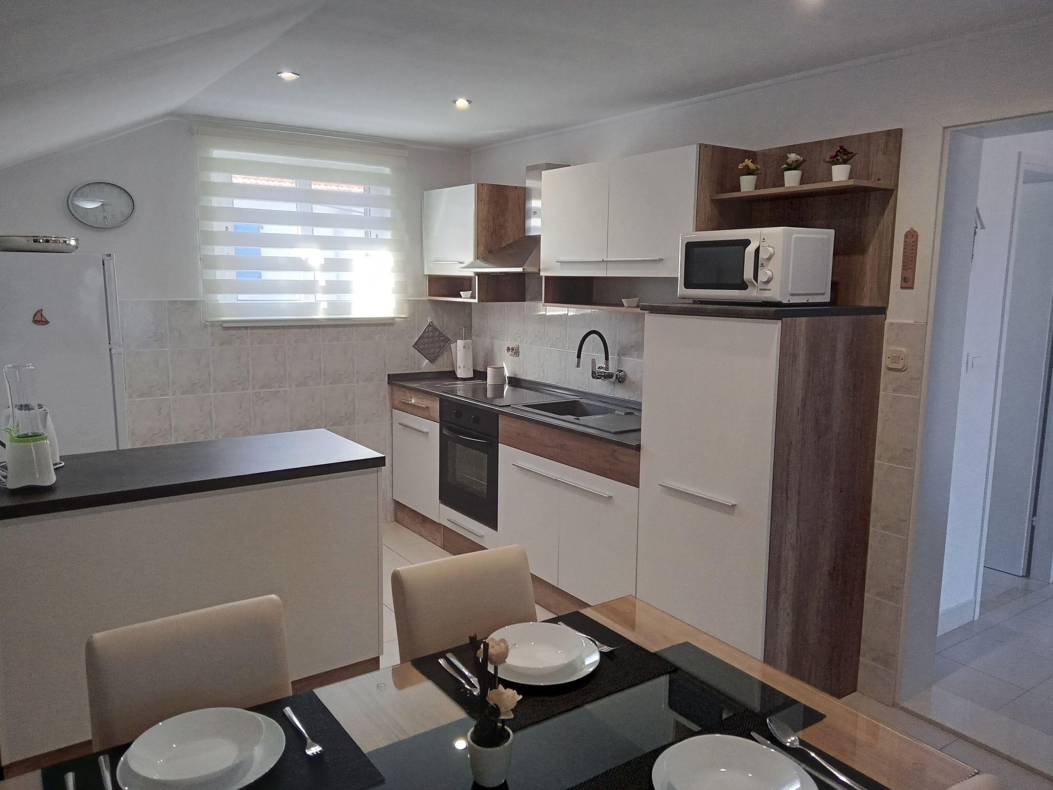 Ferienwohnung bietet Platz für 4 Gäste. Die Betten sind in Schlafzimmern, die es 2 gibt, innerhalb einer Gesamtfläche von 77m2, angeordnet. Die Gäste haben eine eigene Terrasse zur Verfügung, auf der sie in warmen Sommernächten genießen können. Das Apartment bietet Meerblick. Es ist erlaubt, Speisen auf dem Gemeinschafts-Grill vorzubereiten. IM PREIS INBEGRIFFEN: Kurtaxe, Endreinigung, Klimatisierung, Parkplatz, Internet, Bügeleisen, Bügelbrett, Föhn. VERBINDLICHE ZUSÄTZLICHE KOSTEN: Aufzahlung für Kurzaufenthalte (prozentualer Zuschlag pro Nächtigungsanzahl: 30% - 1, 20% - 2, 10% - 3). Die Verfügbarkeit zusätzlicher Dienstleistungen in Ihrem reservierten Termin und die Preise derselben (falls nicht aufgeführt) müssen im Voraus überprüft werden. Zusätzliche Dienstleistungen die in der Zahlungsaufforderung nicht aufgeführt sind werden direkt beim Vermieter bezahlt, angenommen der Gast nutzt auch diese.