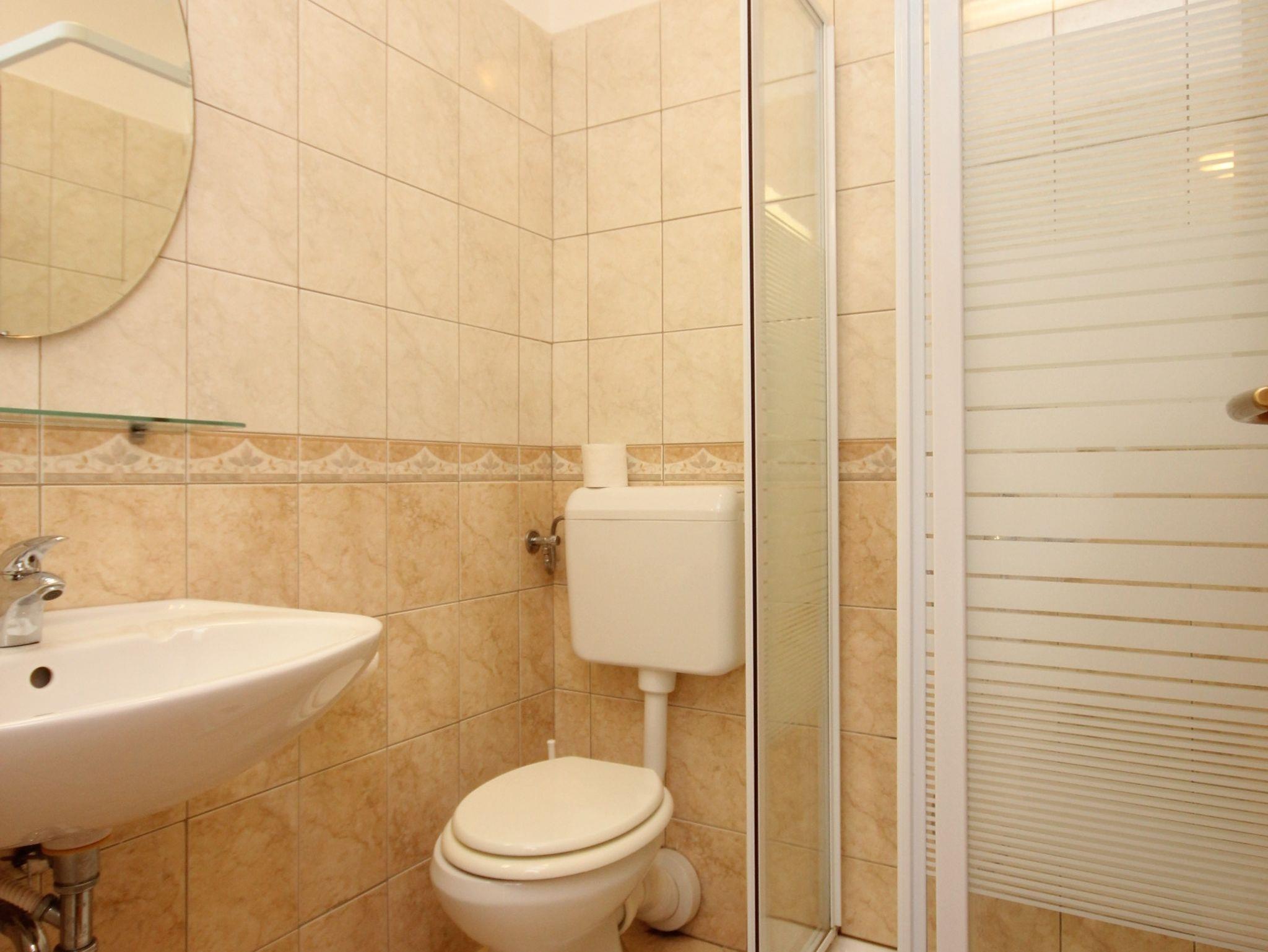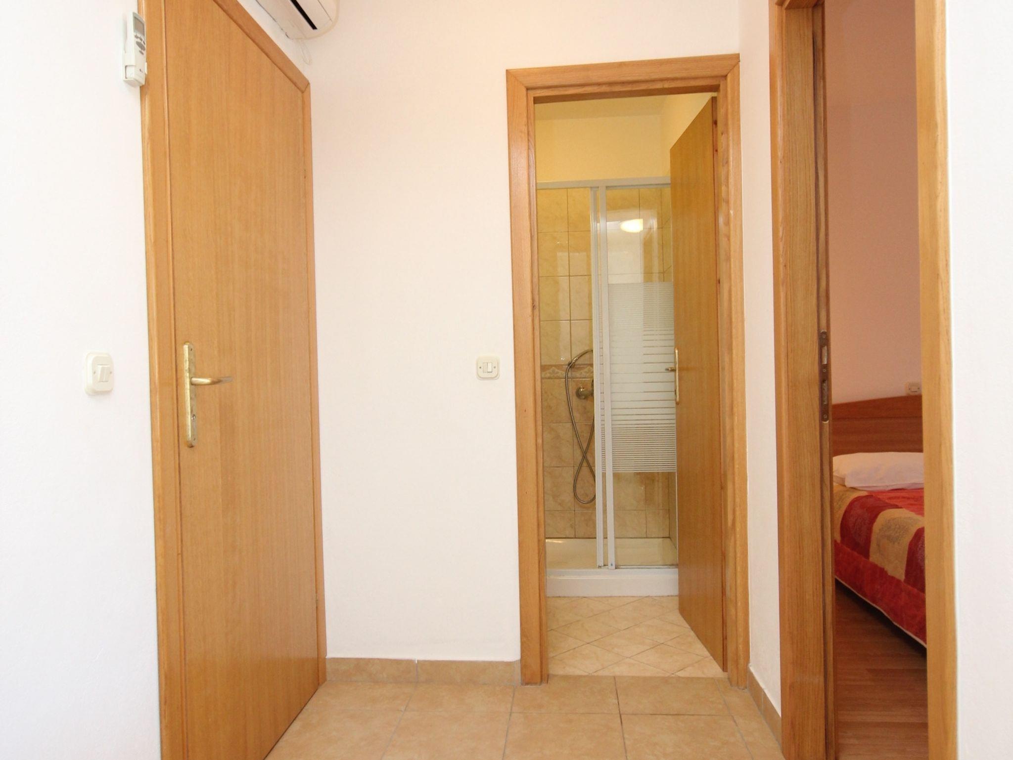 Ferienwohnung bietet Platz für 3 Gäste. Die Betten sind in Schlafzimmern, die es 1 gibt, und in Esszimmer, innerhalb einer Gesamtfläche von 22m2, angeordnet. Die Gäste haben eine eigene Terrasse zur Verfügung, auf der sie in warmen Sommernächten genießen können. Das Apartment bietet Meerblick. Es ist erlaubt, Speisen auf dem Gemeinschafts-Grill vorzubereiten. In der Unterkunftseinheit besteht die Möglichkeit des Mitbringens von Haustieren gegen Aufpreis. IM PREIS INBEGRIFFEN: Kurtaxe, Endreinigung, Klimatisierung, Internet, Bügeleisen, Bügelbrett. VERBINDLICHE ZUSÄTZLICHE KOSTEN: Aufzahlung für Kurzaufenthalte (prozentualer Zuschlag pro Nächtigungsanzahl: 30% - 1, 20% - 2, 10% - 3). UNVERBINDLICHE ZUSÄTZLICHE KOSTEN: Haustiere (10,00 € pro Nacht). Die Verfügbarkeit zusätzlicher Dienstleistungen in Ihrem reservierten Termin und die Preise derselben (falls nicht aufgeführt) müssen im Voraus überprüft werden. Zusätzliche Dienstleistungen die in der Zahlungsaufforderung nicht aufgeführt sind werden direkt beim Vermieter bezahlt, angenommen der Gast nutzt auch diese. Ermäßigung auf den Grundpreis: Gratistag 14=13 (bei einem Aufenthalt von 14 Tagen oder mehr erhalten Sie einen Gratistag für den Aufenthalt bis 31.12.26).