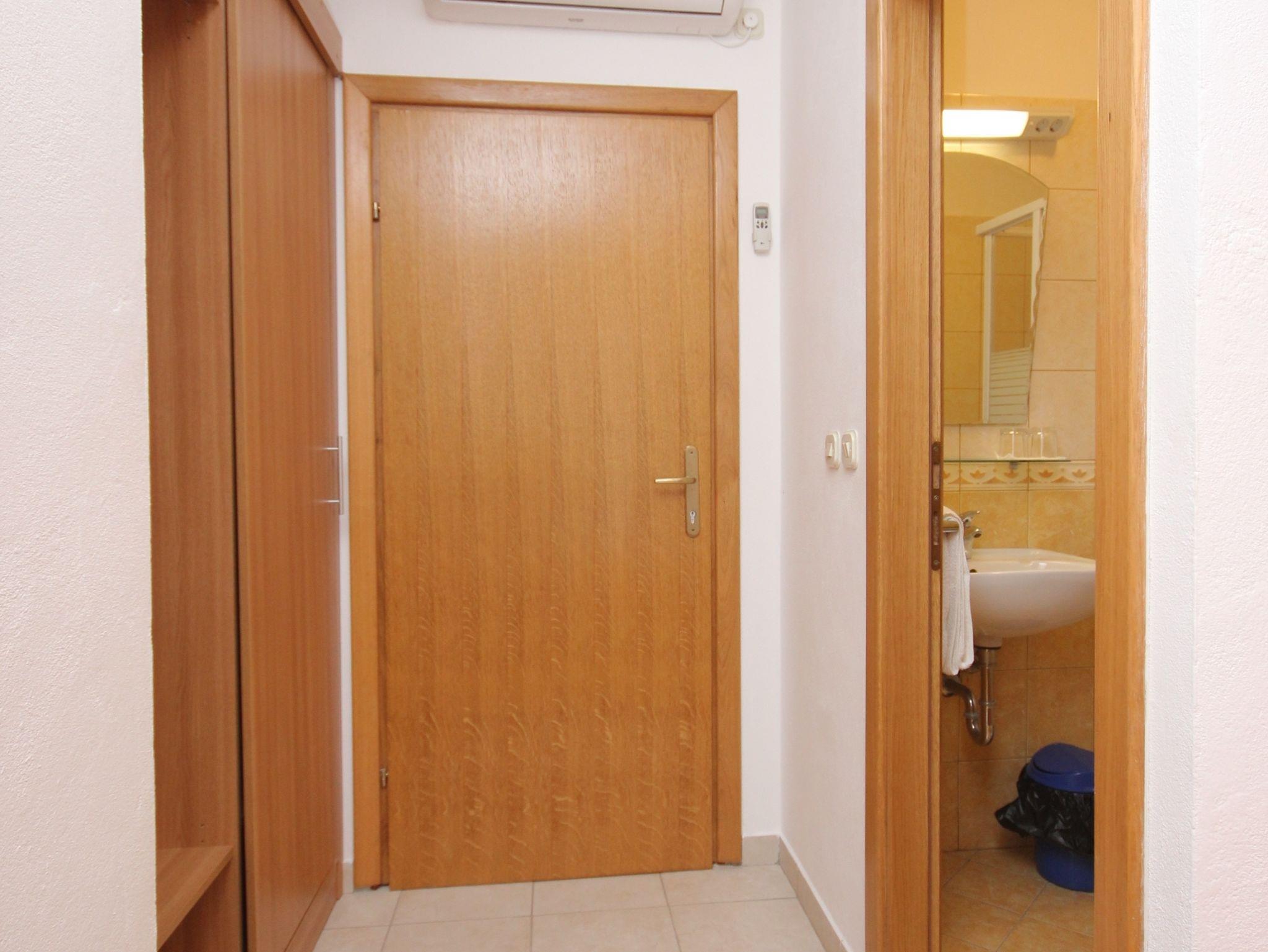 Zimmer bietet Platz für 2 Gäste. Die Betten sind in Schlafzimmern, die es 1 gibt, innerhalb einer Gesamtfläche von 12m2, angeordnet. Die Gäste haben einen eigenen Balkon zur Verfügung, auf der sie in warmen Sommernächten genießen können. Das Zimmer bietet Meerblick. Es ist erlaubt, Speisen auf dem Gemeinschafts-Grill vorzubereiten. Die reservierte Unterkunftseinheit ist ein Zimmer mit eigenem Badezimmer ohne die Möglichkeit der Nutzung einer Küche. IM PREIS INBEGRIFFEN: Kurtaxe, Endreinigung, Klimatisierung, Internet, Bügeleisen, Bügelbrett. VERBINDLICHE ZUSÄTZLICHE KOSTEN: Aufzahlung für Kurzaufenthalte (prozentualer Zuschlag pro Nächtigungsanzahl: 30% - 1, 20% - 2, 10% - 3). Die Verfügbarkeit zusätzlicher Dienstleistungen in Ihrem reservierten Termin und die Preise derselben (falls nicht aufgeführt) müssen im Voraus überprüft werden. Zusätzliche Dienstleistungen die in der Zahlungsaufforderung nicht aufgeführt sind werden direkt beim Vermieter bezahlt, angenommen der Gast nutzt auch diese. Ermäßigung auf den Grundpreis: Gratistag 14=13 (bei einem Aufenthalt von 14 Tagen oder mehr erhalten Sie einen Gratistag für den Aufenthalt bis 31.12.26).