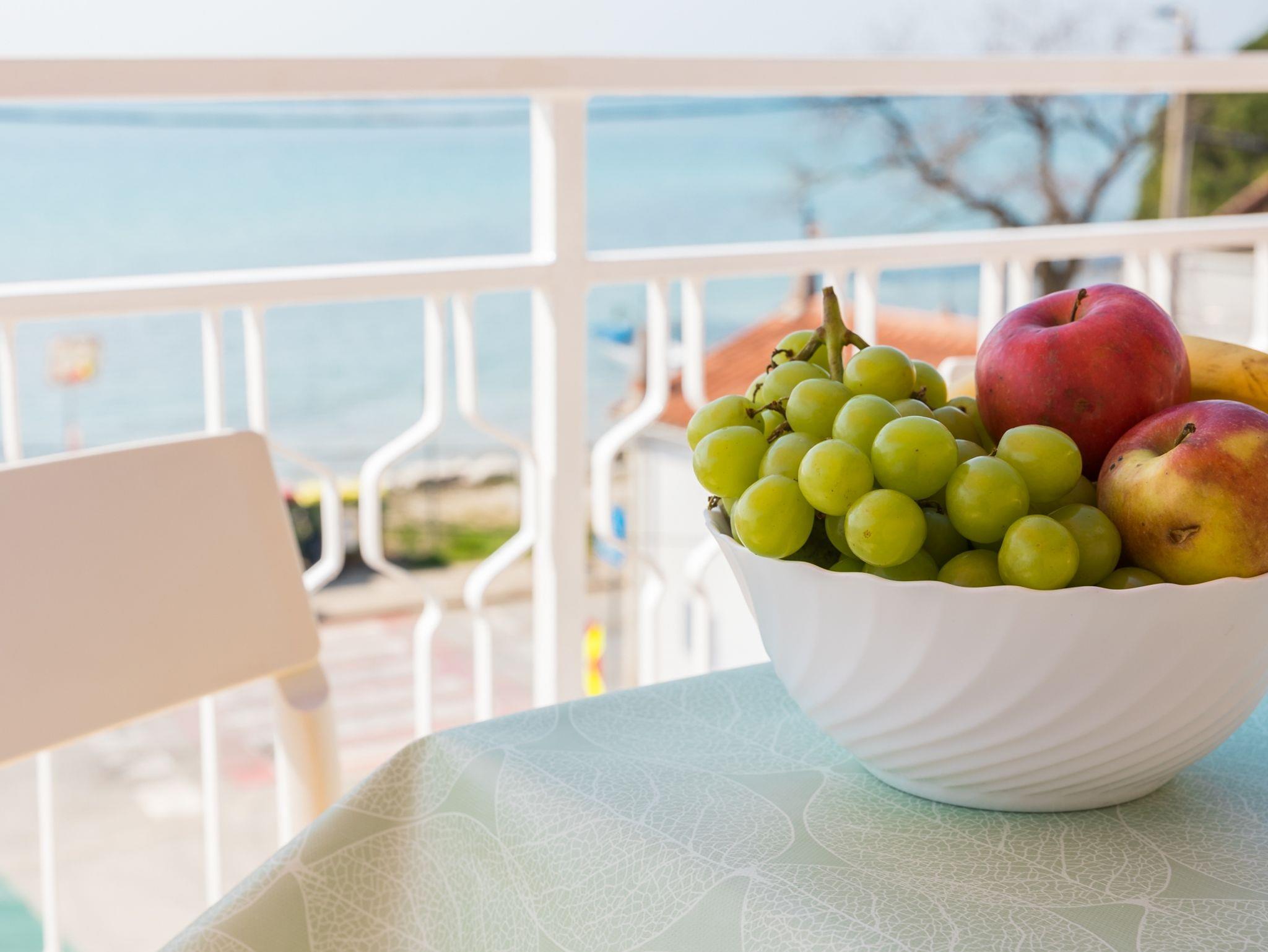 Ferienwohnung bietet Platz für 4 Gäste. Die Betten sind in Schlafzimmern, die es 1 gibt, und in Wohnzimmer, innerhalb einer Gesamtfläche von 58m2, angeordnet. Die Gäste haben eine eigene Terrasse zur Verfügung, auf der sie in warmen Sommernächten genießen können. Das Apartment bietet Meerblick. In der Unterkunftseinheit besteht die Möglichkeit des Mitbringens von Haustieren gegen Aufpreis. IM PREIS INBEGRIFFEN: Kurtaxe, Endreinigung, Klimatisierung, Zentralheizung, Parkplatz, Internet, Föhn. VERBINDLICHE ZUSÄTZLICHE KOSTEN: Aufzahlung für Kurzaufenthalte (prozentualer Zuschlag pro Nächtigungsanzahl: 30% - 1, 20% - 2, 10% - 3). UNVERBINDLICHE ZUSÄTZLICHE KOSTEN: Wäschewaschen (3,00 € Waschen), Haustiere (10,00 € pro Nacht), Zusatzbett (10,00 € pro Nacht). Die Verfügbarkeit zusätzlicher Dienstleistungen in Ihrem reservierten Termin und die Preise derselben (falls nicht aufgeführt) müssen im Voraus überprüft werden. Zusätzliche Dienstleistungen die in der Zahlungsaufforderung nicht aufgeführt sind werden direkt beim Vermieter bezahlt, angenommen der Gast nutzt auch diese.