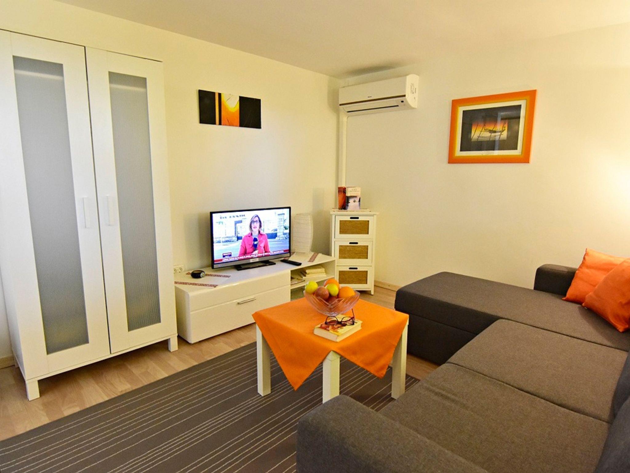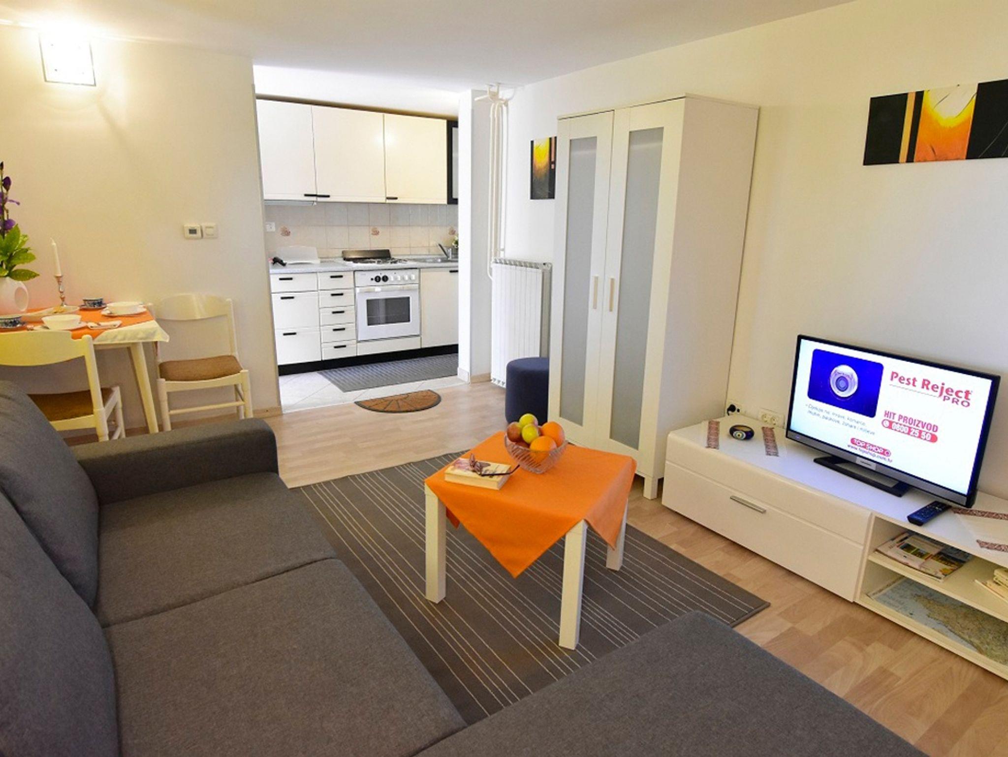 Ferienwohnung bietet Platz für 4 Gäste. Die Betten sind in Schlafzimmern, die es 1 gibt, und in Wohnzimmer, innerhalb einer Gesamtfläche von 34m2, angeordnet. Die Gäste haben eine eigene Terrasse zur Verfügung, auf der sie in warmen Sommernächten genießen können. Es ist erlaubt, Speisen auf dem Gemeinschafts-Grill vorzubereiten. In der Unterkunftseinheit besteht die Möglichkeit des Mitbringens von Haustieren gegen Aufpreis. IM PREIS INBEGRIFFEN: Kurtaxe, Endreinigung, Parkplatz, Internet, Fahrrad, Bügeleisen, Bügelbrett, Föhn. VERBINDLICHE ZUSÄTZLICHE KOSTEN: Aufzahlung für Kurzaufenthalte (prozentualer Zuschlag pro Nächtigungsanzahl: 30% - 1, 20% - 2, 10% - 3). UNVERBINDLICHE ZUSÄTZLICHE KOSTEN: Klimatisierung (5,00 € pro Nacht), Haustiere (10,00 € pro Nacht), Zusatzbett (7,00 € pro Nacht). Die Verfügbarkeit zusätzlicher Dienstleistungen in Ihrem reservierten Termin und die Preise derselben (falls nicht aufgeführt) müssen im Voraus überprüft werden. Zusätzliche Dienstleistungen die in der Zahlungsaufforderung nicht aufgeführt sind werden direkt beim Vermieter bezahlt, angenommen der Gast nutzt auch diese.