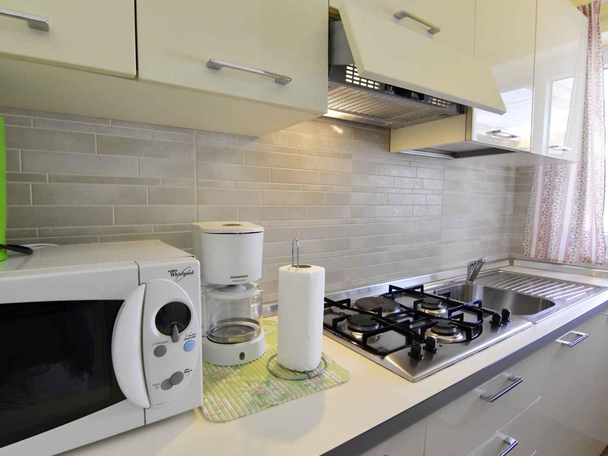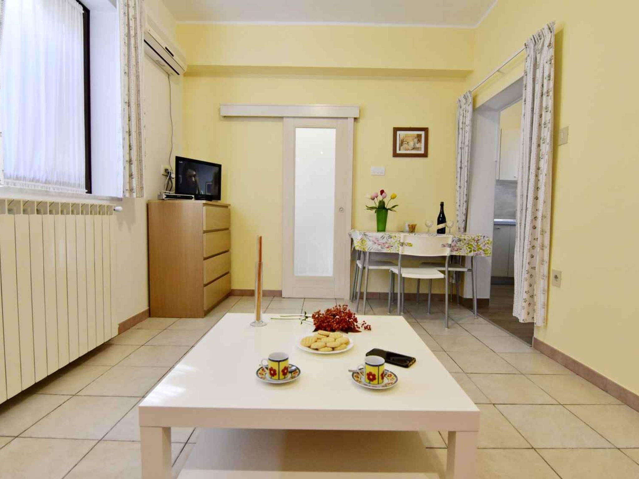 Ferienwohnung bietet Platz für 6 Gäste. Die Betten sind in Schlafzimmern, die es 2 gibt, und in Wohnzimmer, innerhalb einer Gesamtfläche von 70m2, angeordnet. Die Gäste haben eine eigene Terrasse zur Verfügung, auf der sie in warmen Sommernächten genießen können. IM PREIS INBEGRIFFEN: Kurtaxe, Endreinigung, Klimatisierung, Parkplatz, Internet, Föhn. Die Verfügbarkeit zusätzlicher Dienstleistungen in Ihrem reservierten Termin und die Preise derselben (falls nicht aufgeführt) müssen im Voraus überprüft werden. Zusätzliche Dienstleistungen die in der Zahlungsaufforderung nicht aufgeführt sind werden direkt beim Vermieter bezahlt, angenommen der Gast nutzt auch diese.
