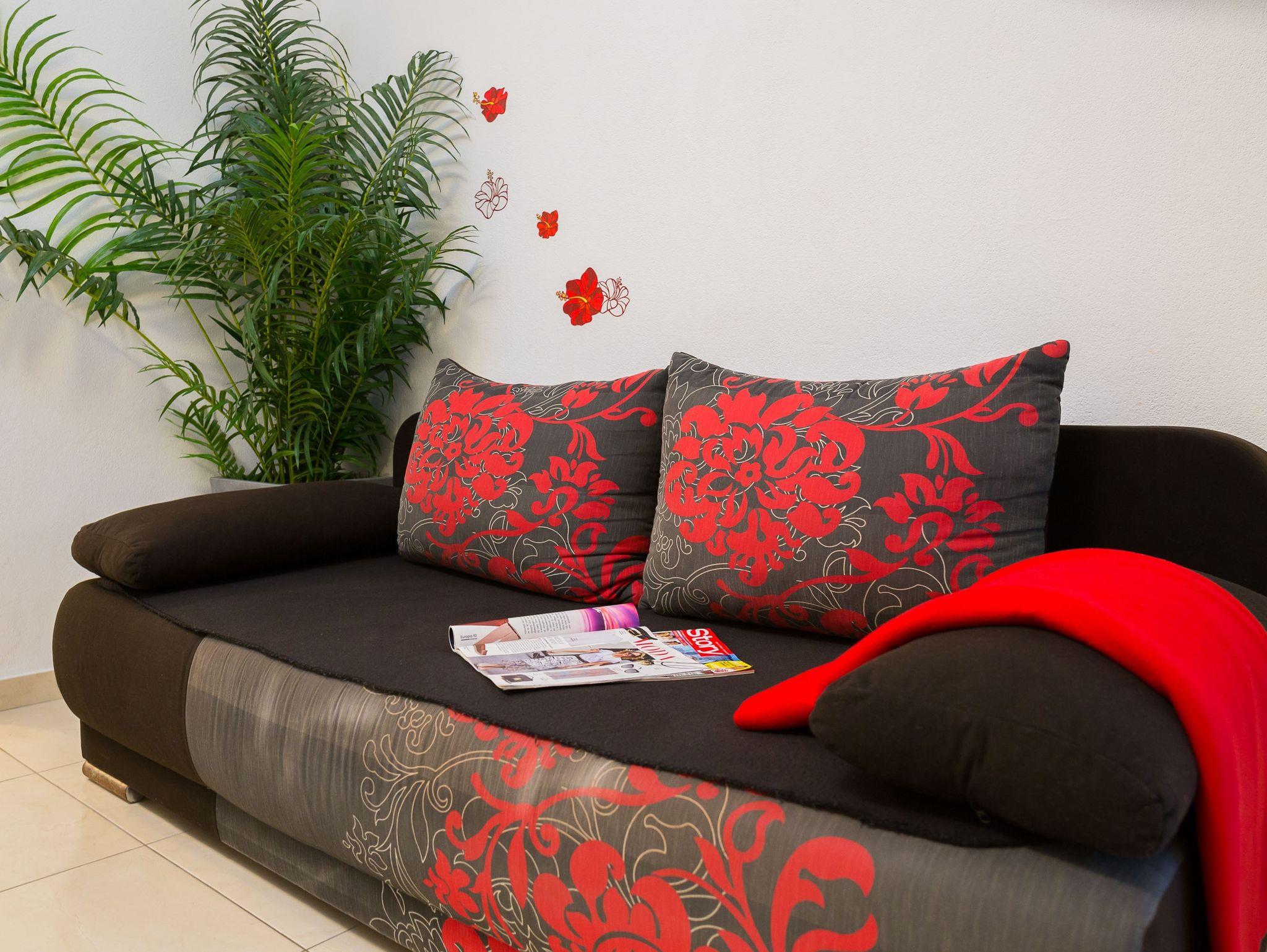 Ferienwohnung bietet Platz für 5 Gäste. Die Betten sind in Schlafzimmern, die es 2 gibt, und in Wohnzimmer, innerhalb einer Gesamtfläche von 40m2, angeordnet. Die Gäste haben eine eigene Terrasse zur Verfügung, auf der sie in warmen Sommernächten genießen können. Es ist erlaubt, Speisen auf dem Gemeinschafts-Grill vorzubereiten. In der Unterkunftseinheit besteht die Möglichkeit des Mitbringens von Haustieren gegen Aufpreis. IM PREIS INBEGRIFFEN: Kurtaxe, Endreinigung, Klimatisierung, Parkplatz, Internet, Sonnenschirm. UNVERBINDLICHE ZUSÄTZLICHE KOSTEN: Haustiere (5,00 € pro Nacht). Die Verfügbarkeit zusätzlicher Dienstleistungen in Ihrem reservierten Termin und die Preise derselben (falls nicht aufgeführt) müssen im Voraus überprüft werden. Zusätzliche Dienstleistungen die in der Zahlungsaufforderung nicht aufgeführt sind werden direkt beim Vermieter bezahlt, angenommen der Gast nutzt auch diese.