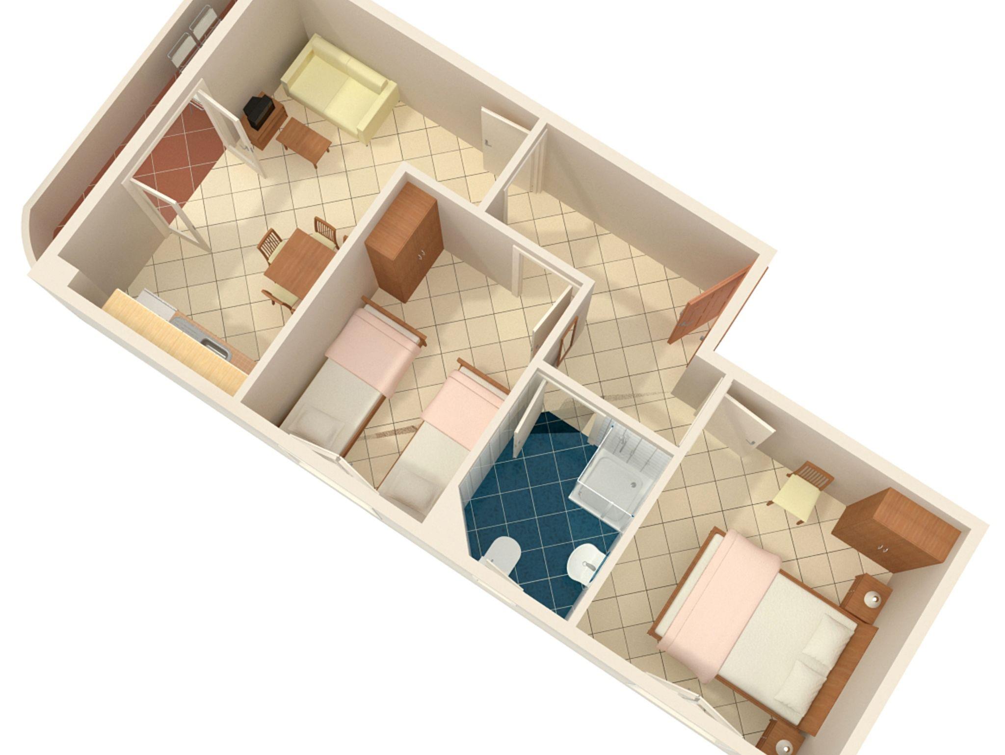 Ferienwohnung bietet Platz für 5 Gäste. Die Betten sind in Schlafzimmern, die es 2 gibt, und in Wohnzimmer, innerhalb einer Gesamtfläche von 42m2, angeordnet. Die Gäste haben einen eigenen Balkon zur Verfügung, auf der sie in warmen Sommernächten genießen können. Das Apartment bietet Meerblick. Es ist erlaubt, Speisen auf dem Gemeinschafts-Grill vorzubereiten. IM PREIS INBEGRIFFEN: Kurtaxe, Endreinigung, Klimatisierung, Parkplatz, Internet, Kinderbett, Bügeleisen, Bügelbrett, Föhn. VERBINDLICHE ZUSÄTZLICHE KOSTEN: Aufzahlung für Kurzaufenthalte (prozentualer Zuschlag pro Nächtigungsanzahl: 30% - 1, 20% - 2, 10% - 3). UNVERBINDLICHE ZUSÄTZLICHE KOSTEN: Wäschewaschen (5,00 € Waschen). Die Verfügbarkeit zusätzlicher Dienstleistungen in Ihrem reservierten Termin und die Preise derselben (falls nicht aufgeführt) müssen im Voraus überprüft werden. Zusätzliche Dienstleistungen die in der Zahlungsaufforderung nicht aufgeführt sind werden direkt beim Vermieter bezahlt, angenommen der Gast nutzt auch diese.