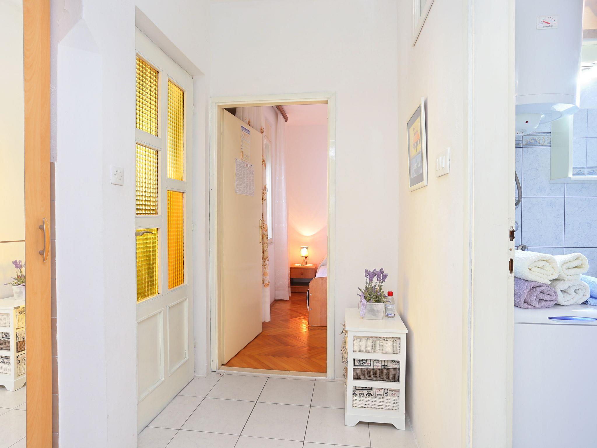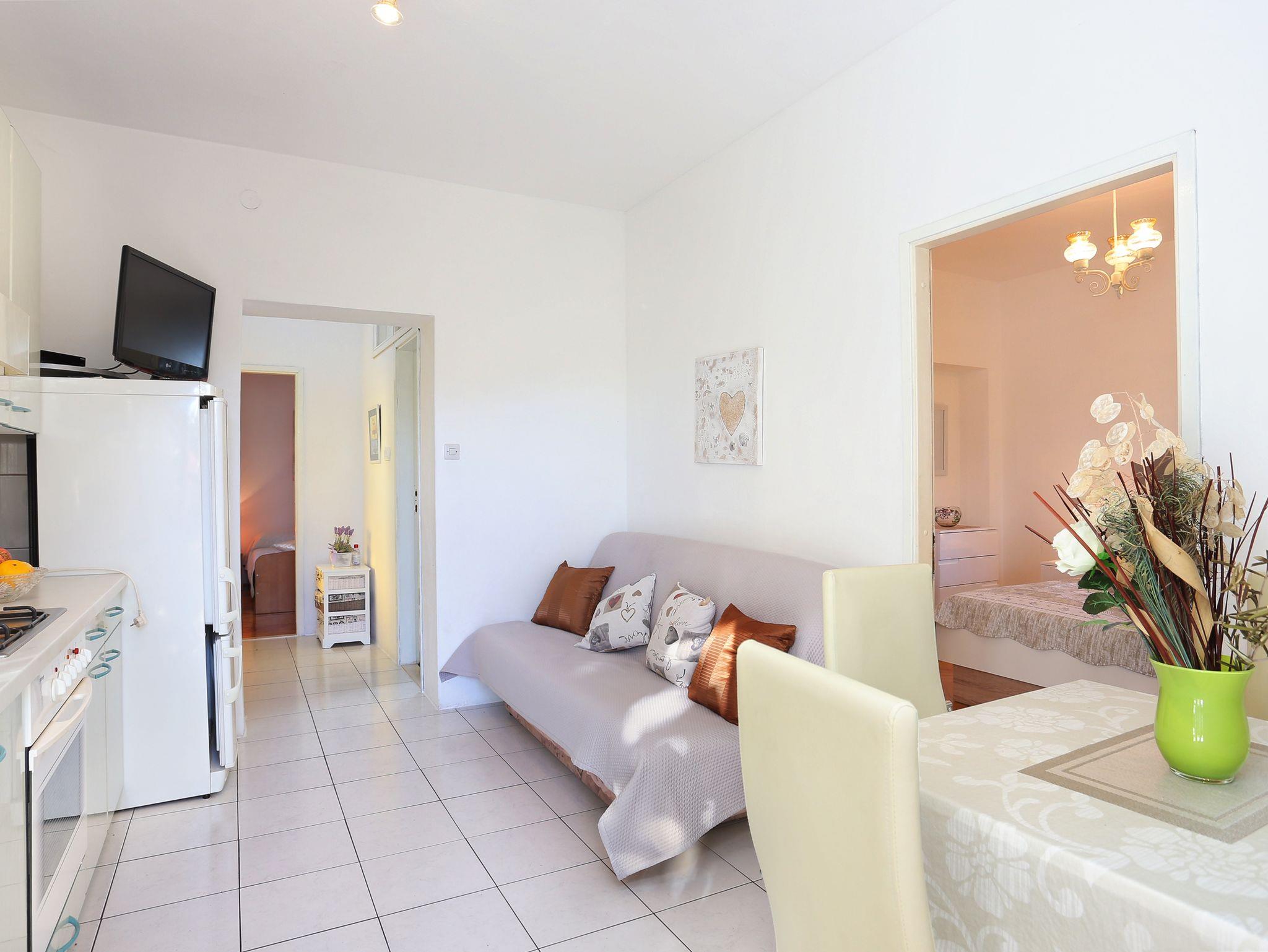 Ferienwohnung bietet Platz für 4 Gäste. Die Betten sind in Schlafzimmern, die es 2 gibt, innerhalb einer Gesamtfläche von 43m2, angeordnet. Die Gäste haben eine eigene Terrasse zur Verfügung, auf der sie in warmen Sommernächten genießen können. Das Apartment bietet Meerblick. Es ist erlaubt, Speisen auf dem Gemeinschafts-Grill vorzubereiten. IM PREIS INBEGRIFFEN: Kurtaxe, Endreinigung, Klimatisierung, Parkplatz, Internet, Bügeleisen, Föhn. VERBINDLICHE ZUSÄTZLICHE KOSTEN: Aufzahlung für Kurzaufenthalte (prozentualer Zuschlag pro Nächtigungsanzahl: 30% - 1, 20% - 2, 10% - 3). Die Verfügbarkeit zusätzlicher Dienstleistungen in Ihrem reservierten Termin und die Preise derselben (falls nicht aufgeführt) müssen im Voraus überprüft werden. Zusätzliche Dienstleistungen die in der Zahlungsaufforderung nicht aufgeführt sind werden direkt beim Vermieter bezahlt, angenommen der Gast nutzt auch diese. Ermäßigung auf den Grundpreis: Gratistag 21=19 (bei einem Aufenthalt von 21 Tagen oder mehr erhalten Sie 2 Gratistage für den Aufenthalt bis 31.12.26).