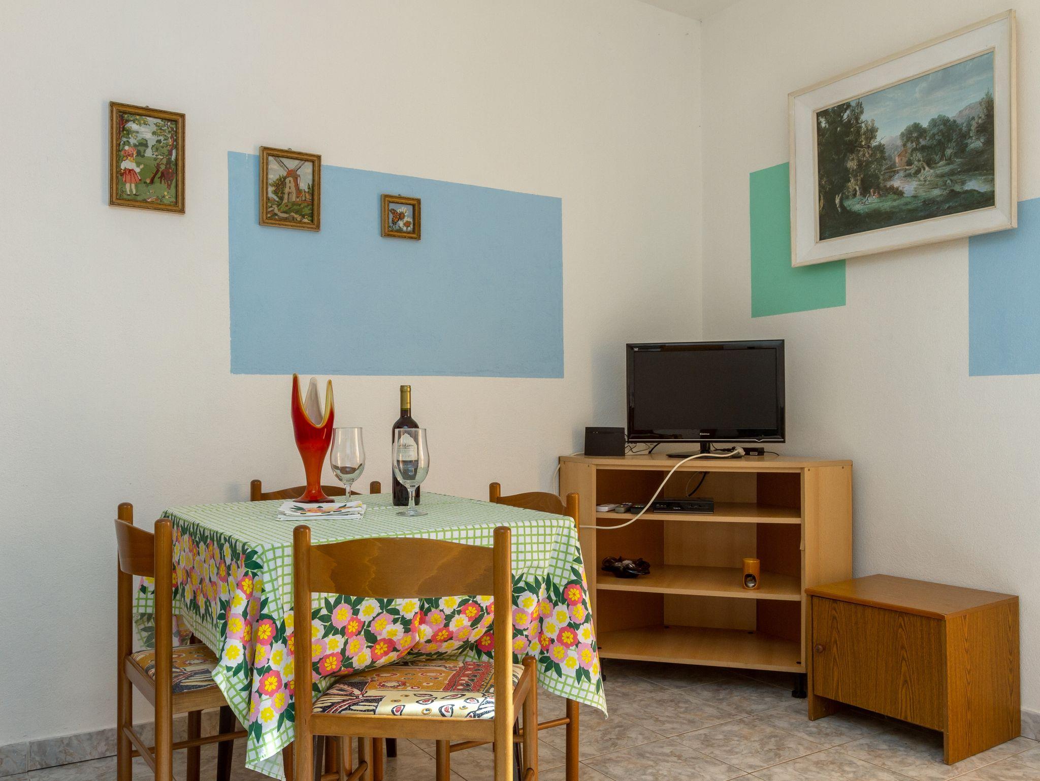 Ferienwohnung bietet Platz für 4 Gäste. Die Betten sind in Schlafzimmern, die es 1 gibt, und in Esszimmer, innerhalb einer Gesamtfläche von 29m2, angeordnet. Die Gäste haben einen eigenen Balkon zur Verfügung, auf der sie in warmen Sommernächten genießen können. Das Apartment bietet Meerblick. Es ist erlaubt, Speisen auf dem Gemeinschafts-Grill vorzubereiten. IM PREIS INBEGRIFFEN: Kurtaxe, Endreinigung, Klimatisierung, Parkplatz, Internet, Bügeleisen, Bügelbrett, Föhn, Sonnenschirm, Liegestühle. VERBINDLICHE ZUSÄTZLICHE KOSTEN: Aufzahlung für Kurzaufenthalte (prozentualer Zuschlag pro Nächtigungsanzahl: 30% - 1, 20% - 2, 10% - 3). UNVERBINDLICHE ZUSÄTZLICHE KOSTEN: Wäschewaschen (5,00 € Waschen). Die Verfügbarkeit zusätzlicher Dienstleistungen in Ihrem reservierten Termin und die Preise derselben (falls nicht aufgeführt) müssen im Voraus überprüft werden. Zusätzliche Dienstleistungen die in der Zahlungsaufforderung nicht aufgeführt sind werden direkt beim Vermieter bezahlt, angenommen der Gast nutzt auch diese.