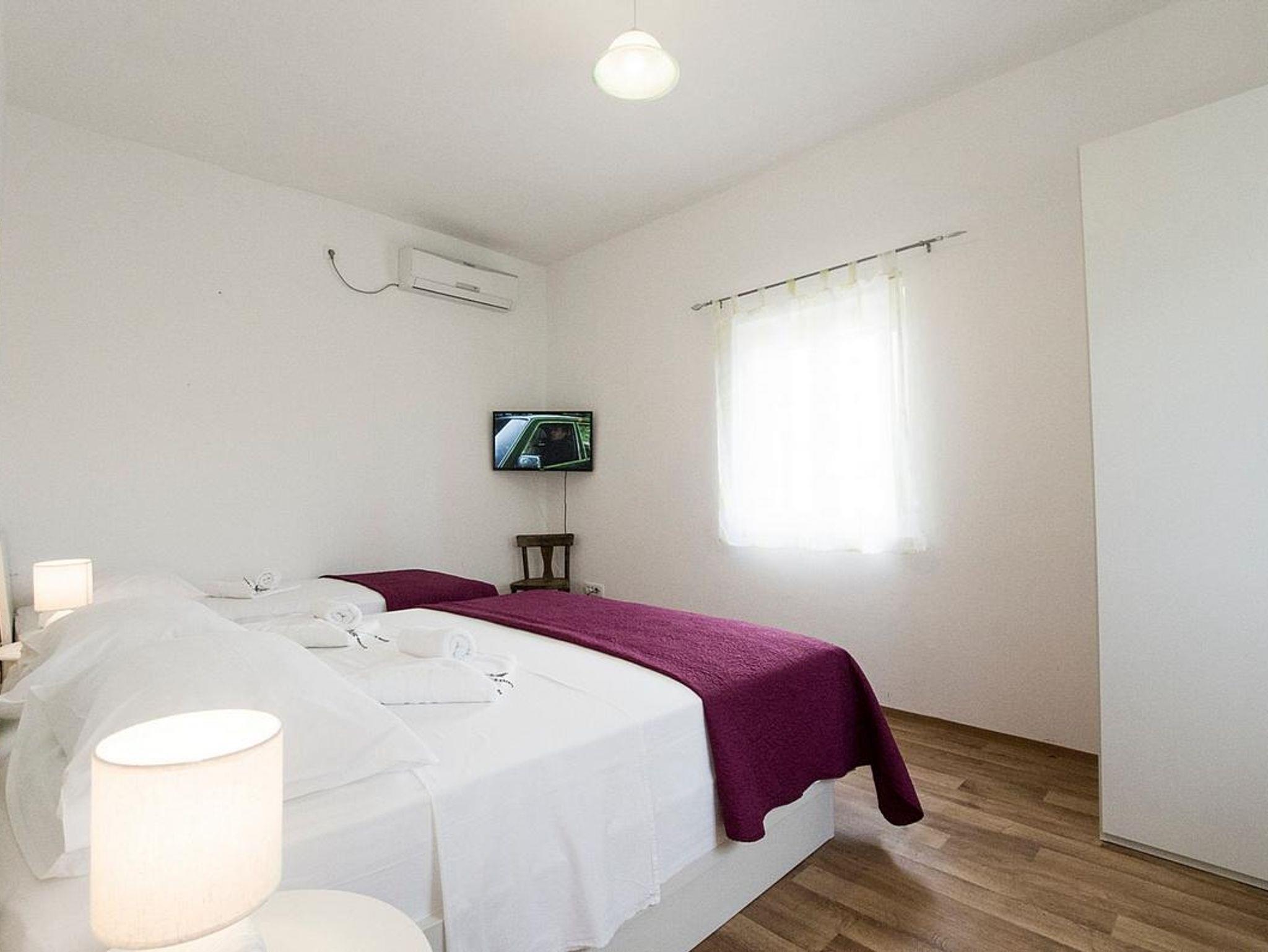 Haus bietet Platz für 8 Gäste. Die Betten sind in Schlafzimmern, die es 2 gibt, und in Wohnzimmer, innerhalb einer Gesamtfläche von 87m2, angeordnet. Die Gäste haben eine eigene Terrasse zur Verfügung, auf der sie in warmen Sommernächten genießen können. Das Haus bietet Meerblick. Es ist erlaubt, Speisen auf dem Gemeinschafts-Grill vorzubereiten. Während ihres Aufenthalts können sich Gäste im privaten Schwimmbad entspannen. In der Unterkunftseinheit besteht die Möglichkeit des Mitbringens von Haustieren, und die Dienstleistung ist im Preis der Unterkunft enthalten. Räume der gebuchten Unterkunftseinheit werden nicht in eine Ganze verbunden. IM PREIS INBEGRIFFEN: Kurtaxe, Endreinigung, Klimatisierung, Pool, Parkplatz, Internet, Haustiere, Kinderbett, Zusatzbett, Bügeleisen, Bügelbrett, Föhn, tragbarer Grill. Die Verfügbarkeit zusätzlicher Dienstleistungen in Ihrem reservierten Termin und die Preise derselben (falls nicht aufgeführt) müssen im Voraus überprüft werden. Zusätzliche Dienstleistungen die in der Zahlungsaufforderung nicht aufgeführt sind werden direkt beim Vermieter bezahlt, angenommen der Gast nutzt auch diese.