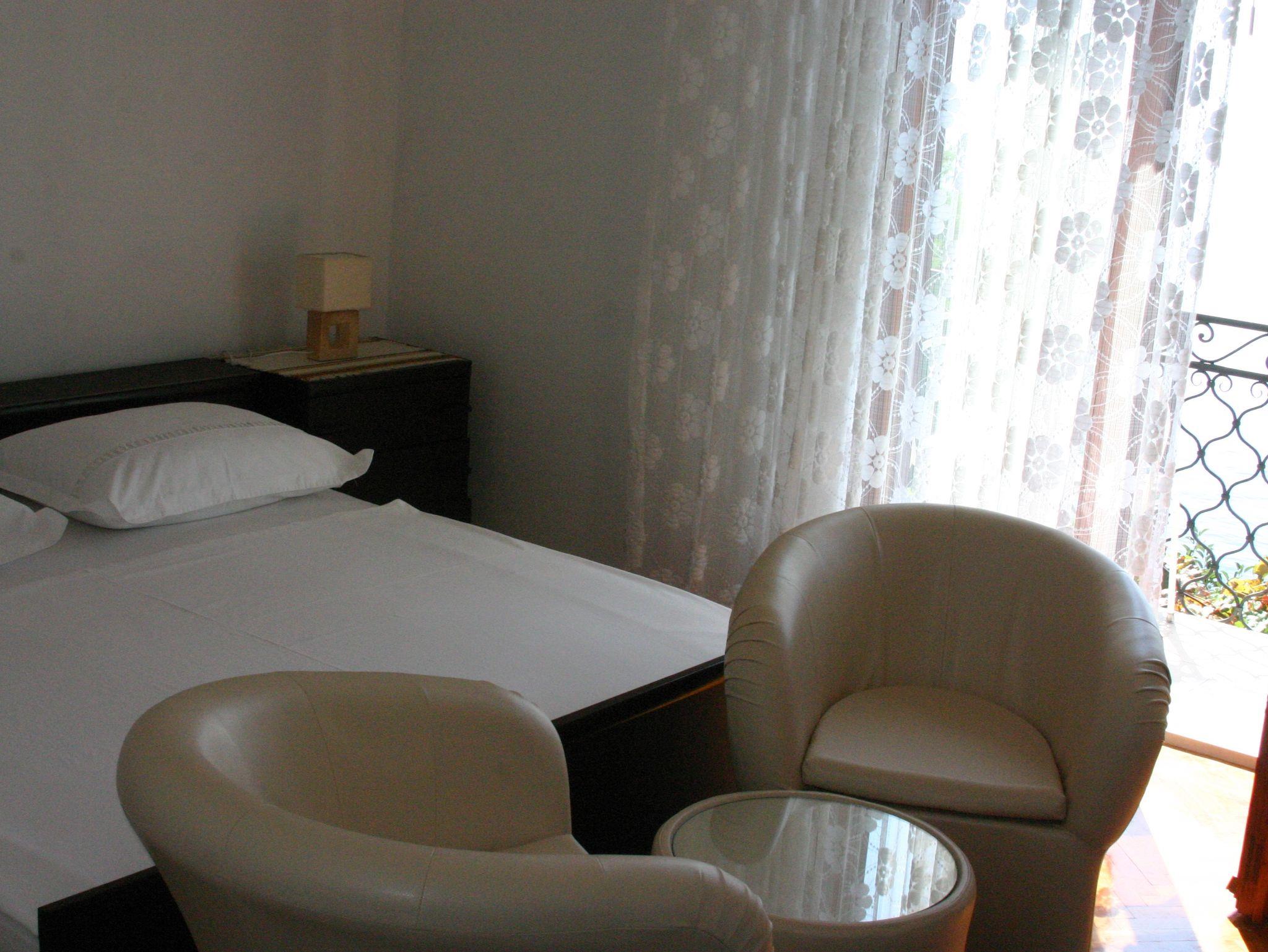 Zimmer bietet Platz für 2 Gäste. Die Betten sind in Schlafzimmern, die es 1 gibt, innerhalb einer Gesamtfläche von 13m2, angeordnet. Die Gäste haben einen eigenen Balkon zur Verfügung, auf der sie in warmen Sommernächten genießen können. Das Zimmer bietet Meerblick. Es ist erlaubt, Speisen auf dem Gemeinschafts-Grill vorzubereiten. Die reservierte Unterkunftseinheit ist ein Zimmer mit eigenem Badezimmer ohne die Möglichkeit der Nutzung einer Küche. IM PREIS INBEGRIFFEN: Kurtaxe, Endreinigung, Klimatisierung, Parkplatz, Internet, Bootsanlegeplatz, Bügeleisen, Bügelbrett, Föhn, tragbarer Grill. VERBINDLICHE ZUSÄTZLICHE KOSTEN: Aufzahlung für Kurzaufenthalte (prozentualer Zuschlag pro Nächtigungsanzahl: 30% - 1, 20% - 2, 10% - 3). UNVERBINDLICHE ZUSÄTZLICHE KOSTEN: Wäschewaschen (5,00 € Waschen). Die Verfügbarkeit zusätzlicher Dienstleistungen in Ihrem reservierten Termin und die Preise derselben (falls nicht aufgeführt) müssen im Voraus überprüft werden. Zusätzliche Dienstleistungen die in der Zahlungsaufforderung nicht aufgeführt sind werden direkt beim Vermieter bezahlt, angenommen der Gast nutzt auch diese. Ermäßigung auf den Grundpreis: Gratistag 14=13 (bei einem Aufenthalt von 14 Tagen oder mehr erhalten Sie einen Gratistag für den Aufenthalt bis 31.12.26).