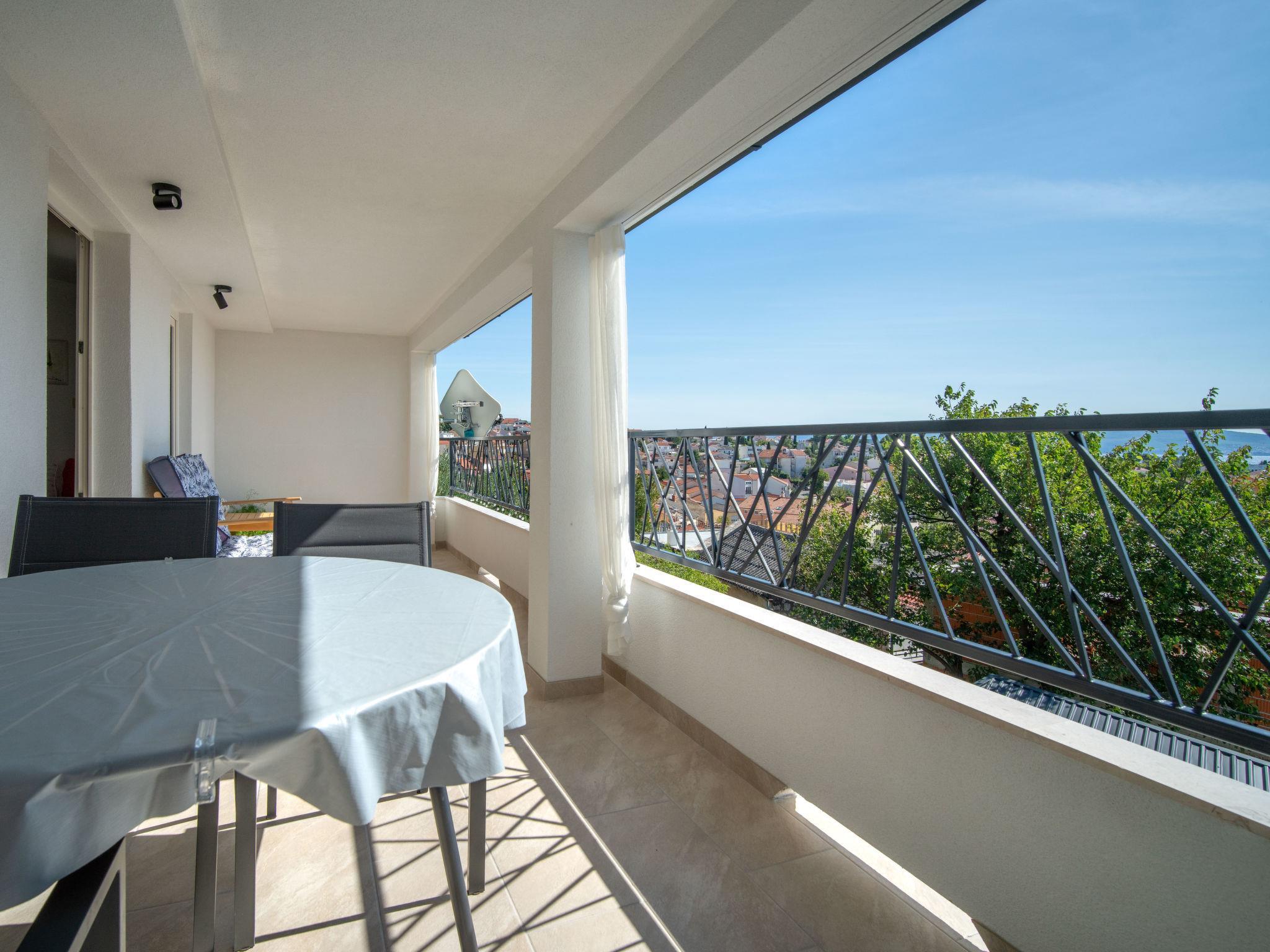 3-room apartment 65 m2 on 1st floor. Living/dining room with satellite TV. Exit to the balcony. Entrance hall with air conditioning. 1 room with 1 french bed (180 cm, length 200 cm). 1 room with 1 double bed (2 x 80 cm, length 200 cm). Open kitchen (2 hot plates, oven, 2 gas rings, kettle, electric coffee machine). Shower/WC. No heating option. Balcony 7 m2. Balcony furniture. Marvellous view of the sea. Facilities: Internet (WiFi, free). Maximum 1 pet/ dog allowed. Low height of the entrance door 175 cm.