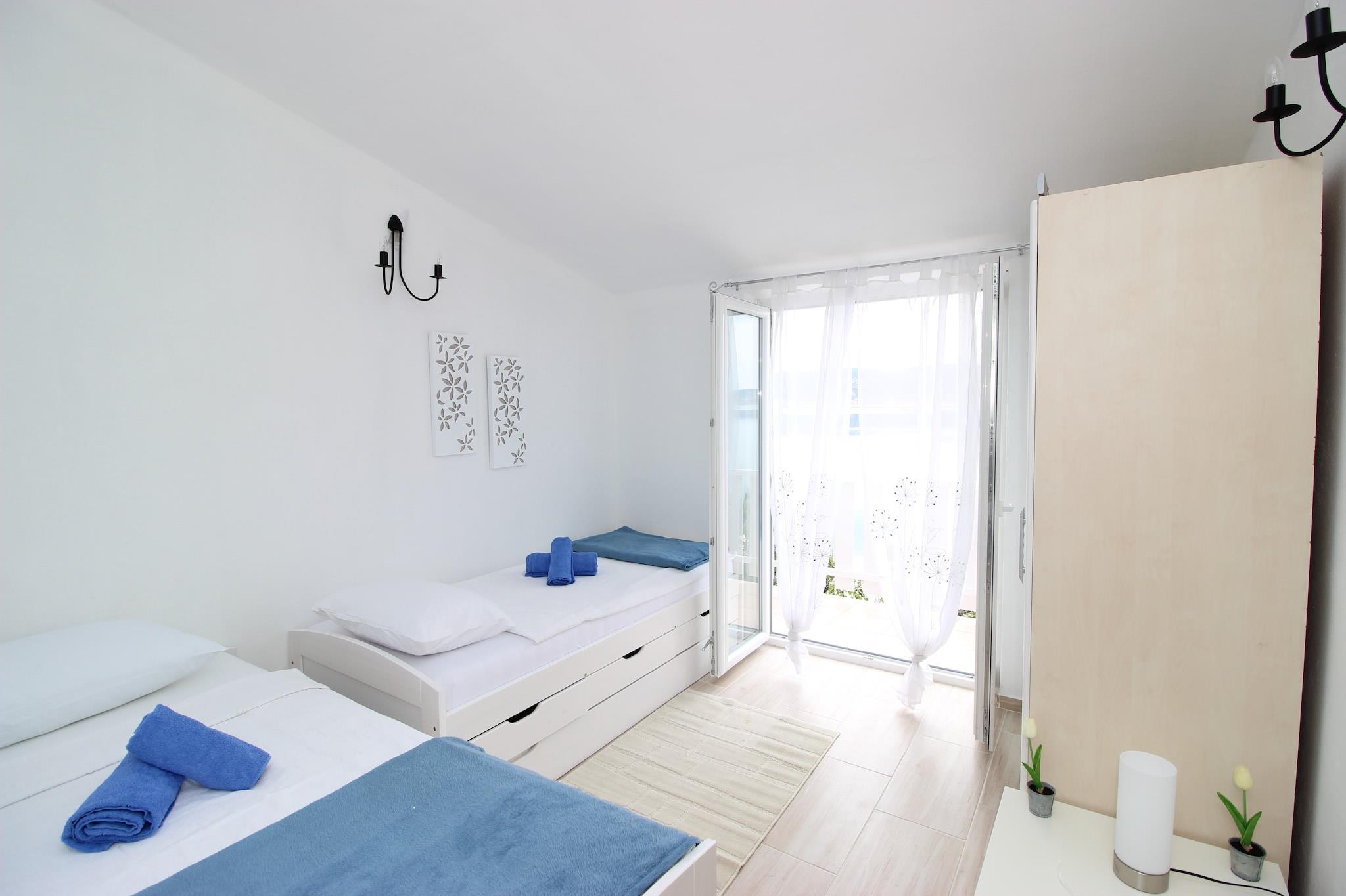 Lejlighed Matija ligger i Seline, direkte ved stranden og 3 km væk fra Starigrad, centrum af Paklenica Riviera strækker sig ca. 20 km langs foden af det største kroatiske bjerg Velebit. Denne lejlighed er den største fordel ved beliggenheden ved vandet, da du kun har brug for et par skridt for at nå den nærliggende stenstrand. Du kan bruge haven med Barbique fra ejeren, der bor i stueetagen. Denne rummelige lejlighed har 3 soveværelser, der er forbundet med en lang terrasse med en smuk udsigt over havet. Der er 1 air condition device.It er en ideel indkvartering for familier eller en større gruppe af udendørs entusiaster. I afstand på mindre end en kilometer er der strande, restauranter, købmandsforretninger, et bageri og et turistkontor. Indgangen til de fleste Fremtrædende klatrestation i Kroatien, Nationalparken Paklenica ligger kun 2 km væk. Parkområdet indeholder 150-200 km stier og stier fra dem, der er beregnet til turister og lokalbefolkningen til dem, der er beregnet til bjergbestigere, der besøger de højeste toppe af Velebit. Med 120 km er der 3 andre nationalparker: Plitvice søer, Krka vandfald og Kornati øer .Krystalklart hav, miles af stenede strande, bjergtopper, cykelbaner, sejlskole, nærhed af den gamle by Zadar, som ligger 45 km væk fra Starigrad gør Paklenica Riviera et godt sted for din ferie.