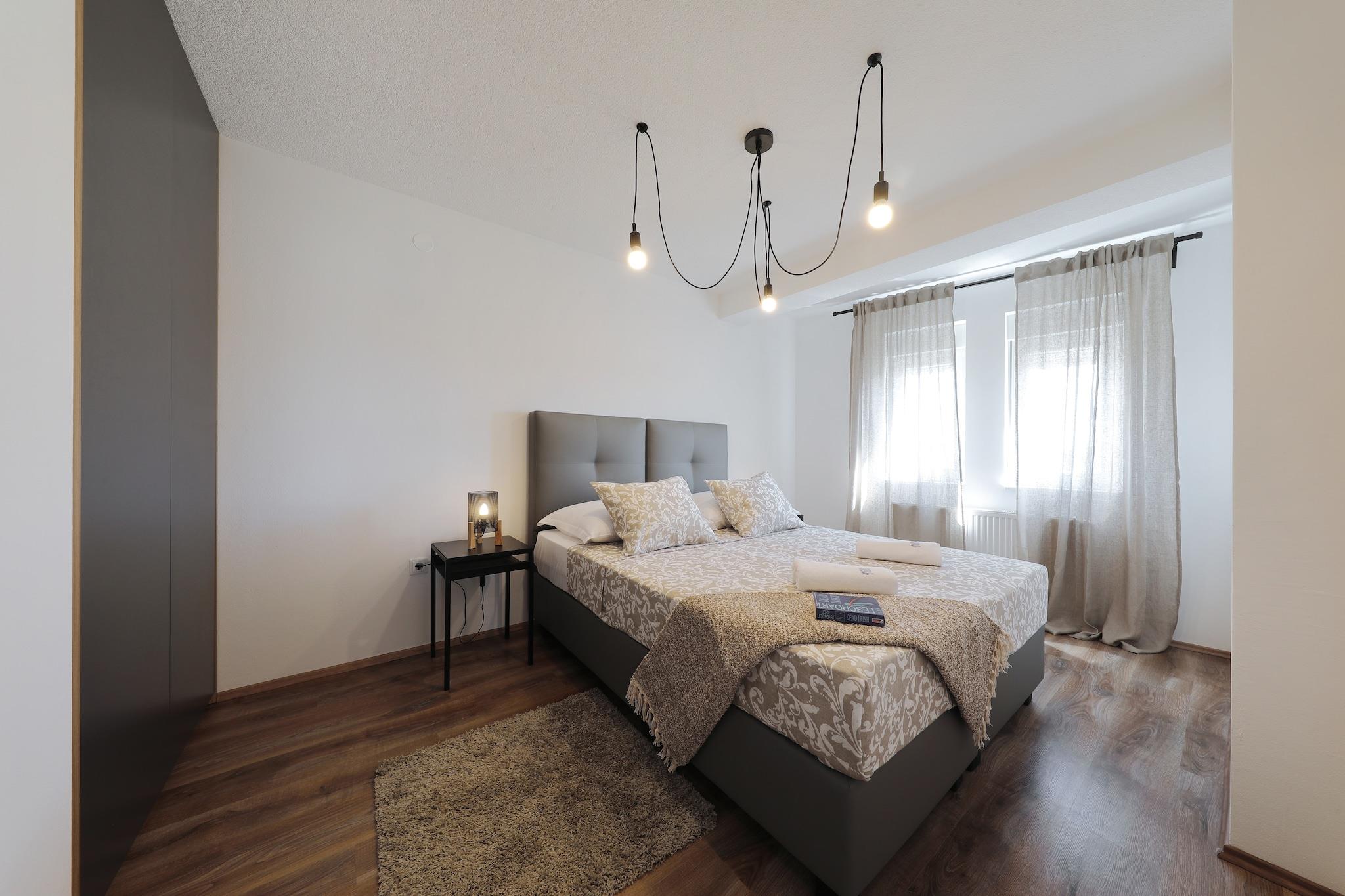 Denne rummelige 6-værelses villa i Seline kan rumme op til 17 gæster, ideel til store familier eller grupper. Kun 250 meter fra havet har det en privat opvarmet swimmingpool med solbruser og en indhegnet, oplyst have med liggestole, havemøbler og et grillområde til afslapning udendørs. Villaen har flere fuldt udstyrede køkkener, opholds- og spisestuer med aircondition og flere balkoner og terrasser med smuk udsigt. Indenfor inkluderer kælderens rekreative rum et tv, spiseplads, dart og festspil til underholdning. Villaen ligger tæt på restauranter (250 m) og købmandsforretninger (500 m), med Starigrad-Paklenicas centrum 3 km væk. Parkering er tilgængelig på stedet. Den nærmeste lufthavn ligger 45 km fra ejendommen. Denne villa kombinerer komfort, plads og fremragende faciliteter til en uforglemmelig ferie på dalmatiske kysten.
