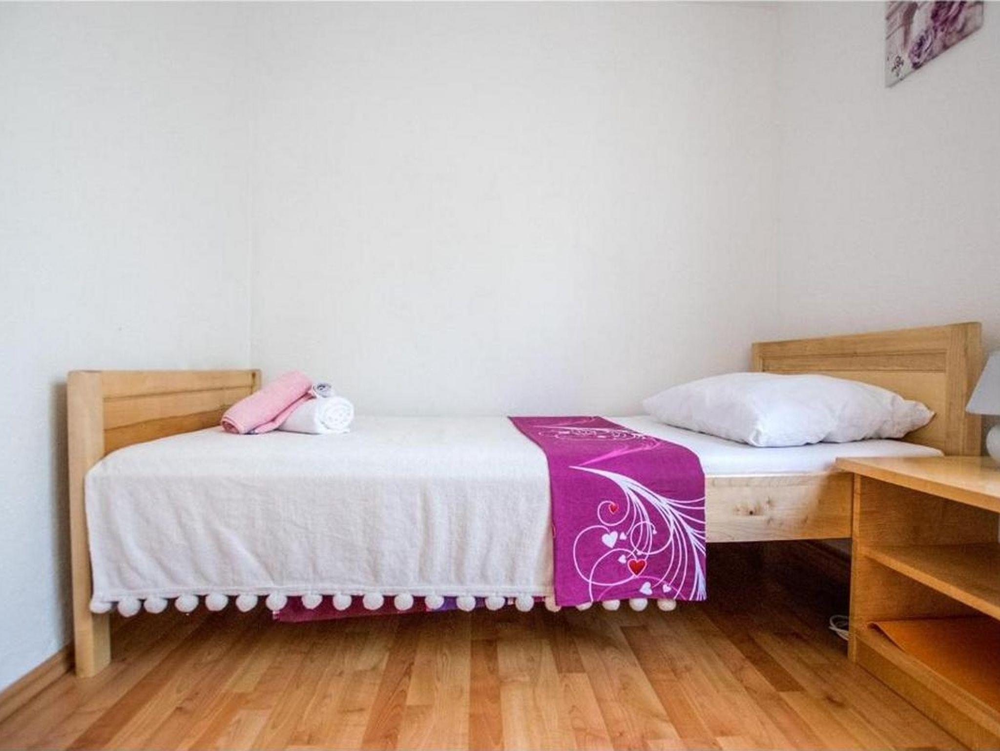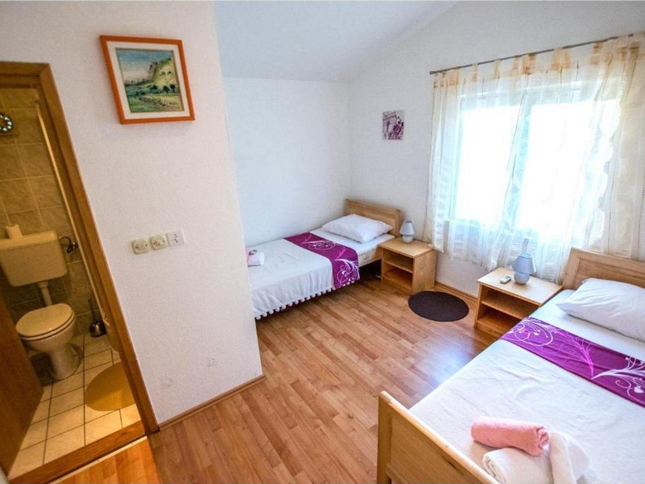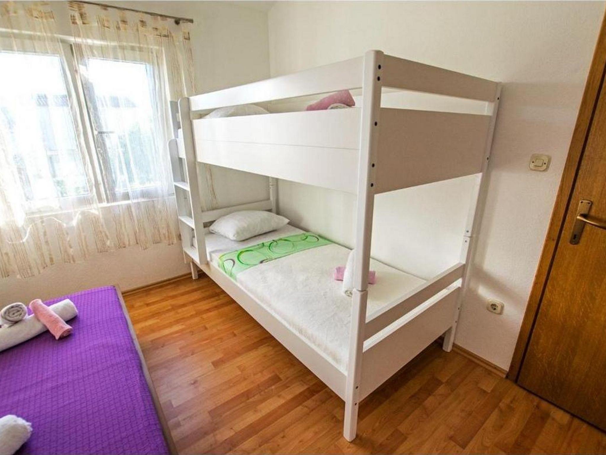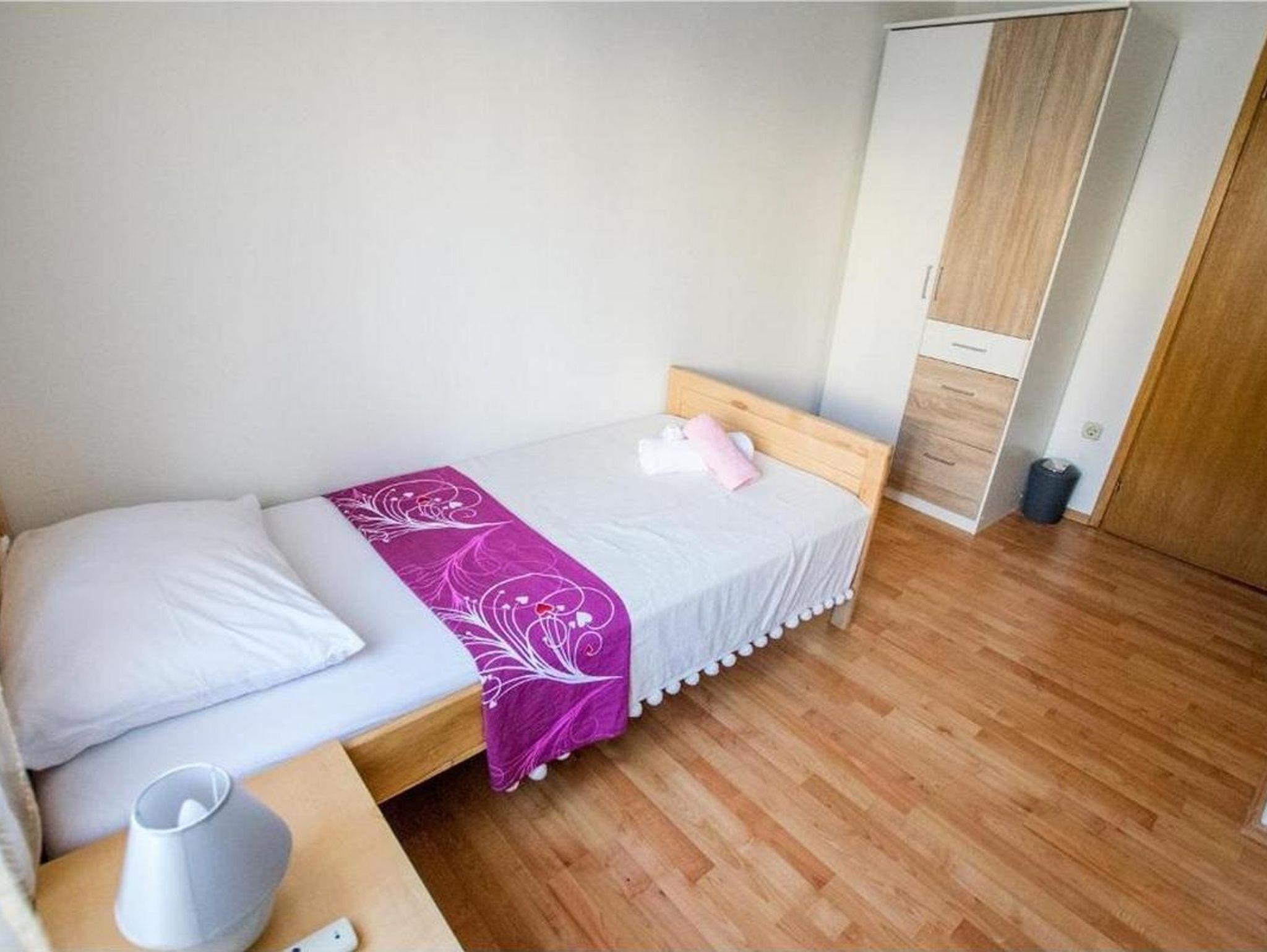 Ferienwohnung bietet Platz für 6 Gäste. Die Betten sind in Schlafzimmern, die es 2 gibt, innerhalb einer Gesamtfläche von 65m2, angeordnet. Die Gäste haben einen eigenen Balkon zur Verfügung, auf der sie in warmen Sommernächten genießen können. Das Apartment bietet Meerblick. Es ist erlaubt, Speisen auf dem Gemeinschafts-Grill vorzubereiten. IM PREIS INBEGRIFFEN: Kurtaxe, Endreinigung, Klimatisierung, Parkplatz, Internet, Kinderbett, Bügeleisen, Bügelbrett, Föhn, Liegestühle. VERBINDLICHE ZUSÄTZLICHE KOSTEN: Aufzahlung für Kurzaufenthalte (prozentualer Zuschlag pro Nächtigungsanzahl: 30% - 1, 20% - 2, 10% - 3). Die Verfügbarkeit zusätzlicher Dienstleistungen in Ihrem reservierten Termin und die Preise derselben (falls nicht aufgeführt) müssen im Voraus überprüft werden. Zusätzliche Dienstleistungen die in der Zahlungsaufforderung nicht aufgeführt sind werden direkt beim Vermieter bezahlt, angenommen der Gast nutzt auch diese.