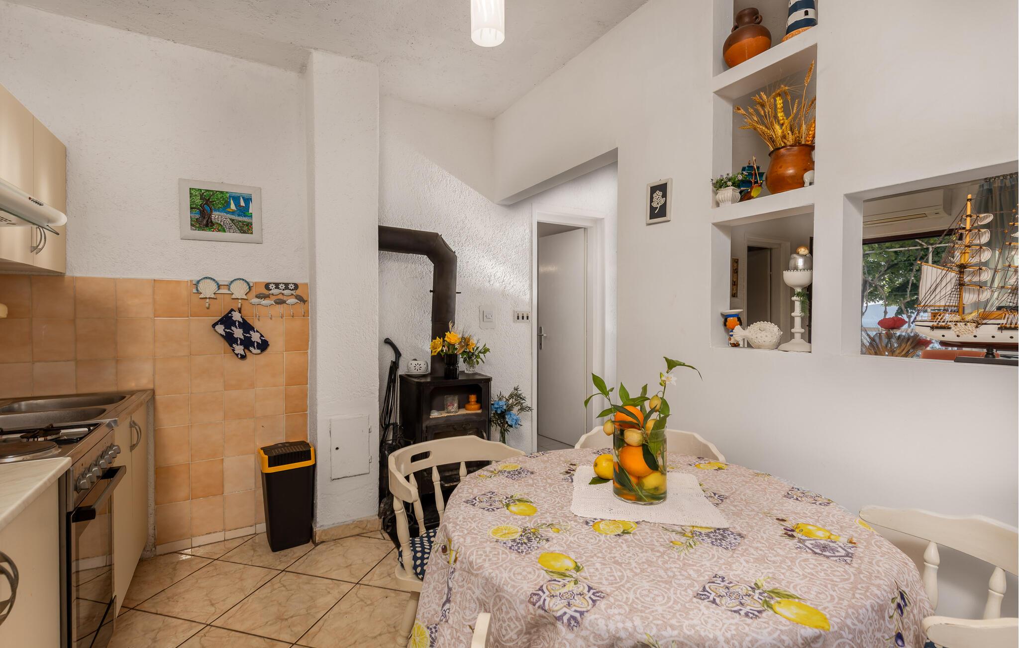 Lad jer fortrylle af Adriaterhavskystens betagende natur, som denne venlige ferielejlighed tilbyder jer. Tilbered jeres livretter i det lyse og indbydende køkken, og brug dens dejlige stemning til at arrangere spilleaftener sammen. Efter en solskinsdag kan I sætte fødderne op og gøre jer godt tilpas i den hyggelige sofa med en god bog.