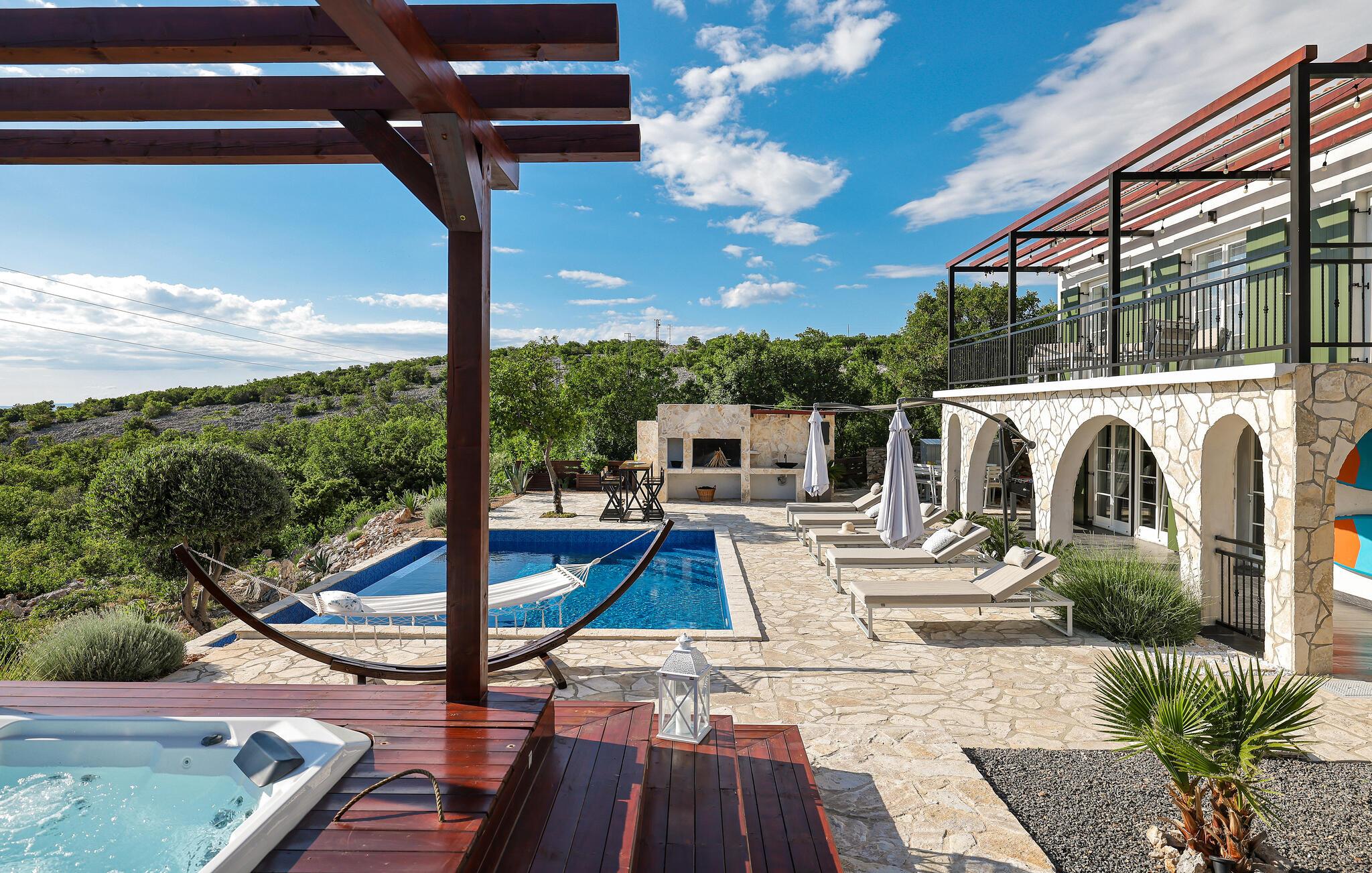 Glæd jer til dette toplækre feriehus, som har en enestående beliggenhed i nationalpark Sjeverni Velebit. Fra huset er der en smuk udsigt til havet og øerne på den ene side og Velebit-bjerget til modsatte side.