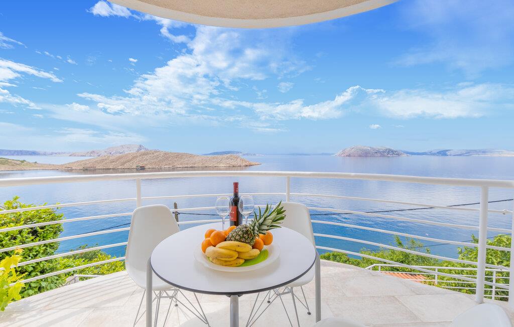 Spis morgenmad med havudsigt i denne moderne ferielejlighed ved Adriaterhavskysten.