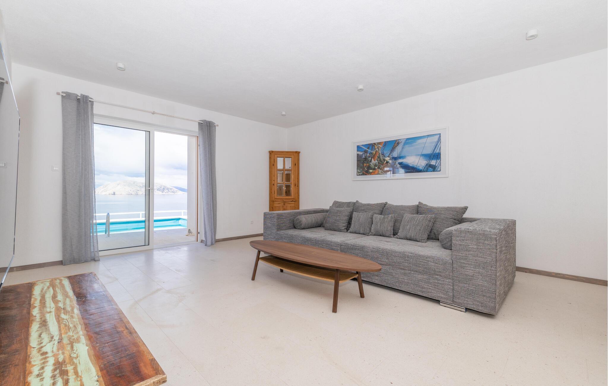 nogle få skridt fra stranden byder denne indbydende lejlighed jer velkommen og tilbyder en smuk ramme for jeres pause fra hverdagens travle program. En vidunderlig havudsigt fra stuen og køkkenet samt det moderne design giver værelserne deres charme. Glæd jer til hyggelige aftener efter dagens aktviteter. Sofaen lægger op til snak til langt ud på aftenen.