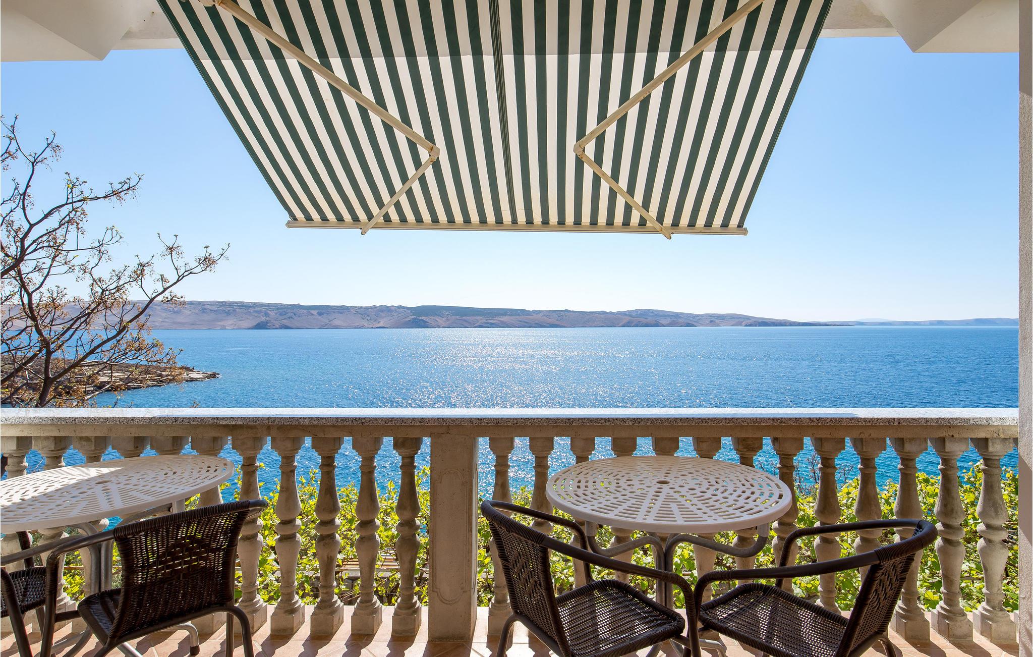 Slap af på den store overdækkede terrasse med en uforglemmelig udsigt over havet og øen Pag.