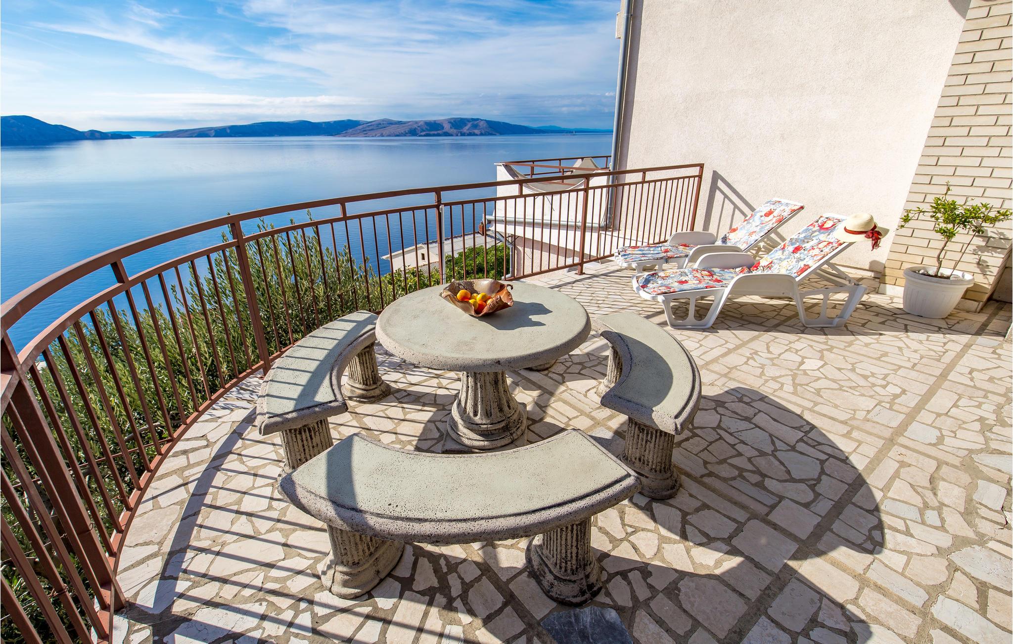 Lejligheden er udstyret med funktionelle møbler. Fra den store terrasse har man en uforglemmelig udsigt over det krystalklare hav. Det perfekte sted til morgenkaffen og planlægning af dagens mange spændende aktiviteter - og selvfølgelig til et godt glas, når dagen går på hæld.