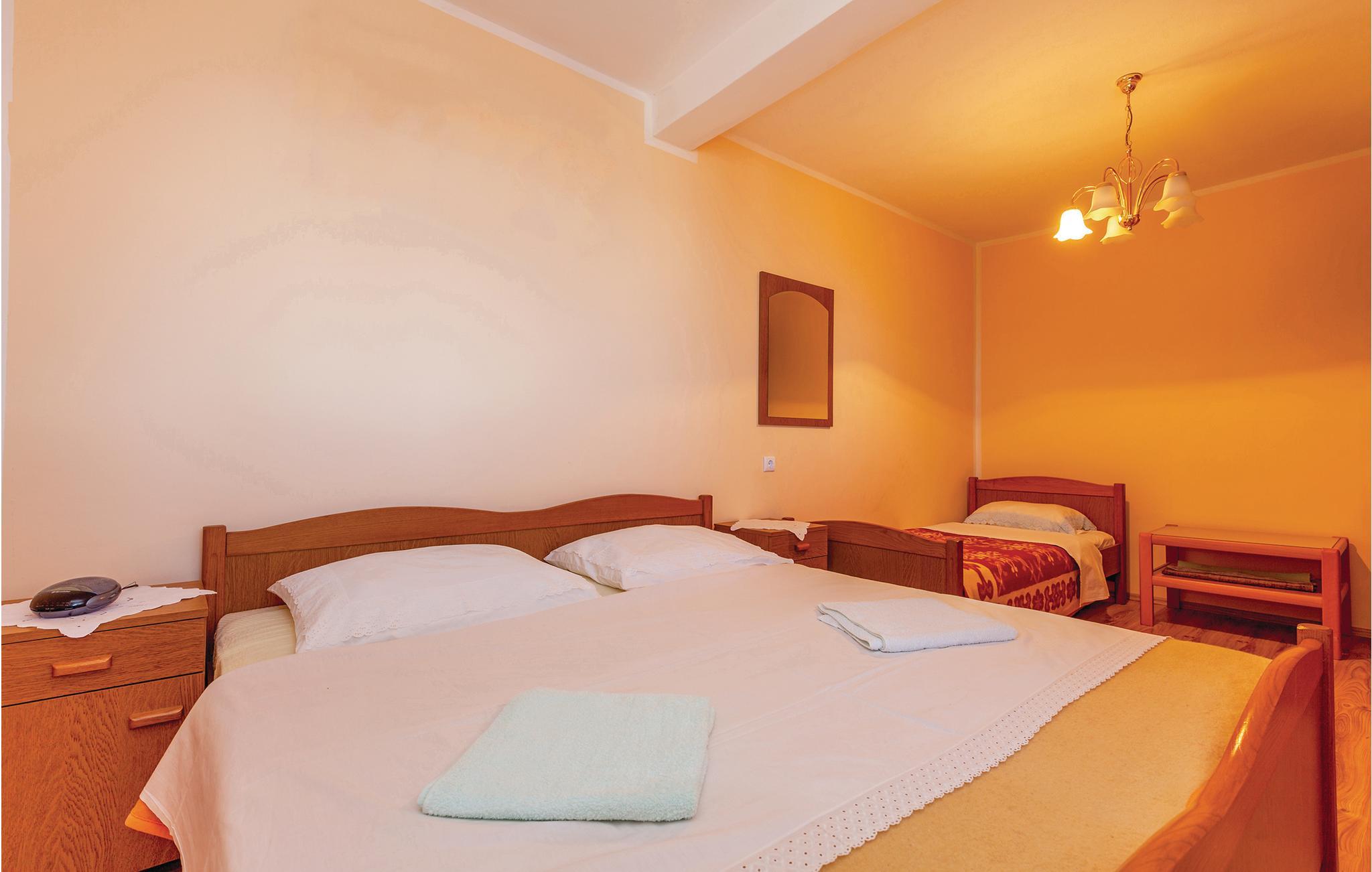 I den lille kystby S. Juraj og i en familieejendom ligger denne ferielejlighed. I byen Sv. Juraj er der enkelte restauranter, barer og supermarkeder samt skønne strande, et oplagt sted til en vellykket ferie. På kun ca. ti minutter i bil, kommer I til byen Senj, hvor der afholdes mange former for sommerunderholdning og hvor der er forskellige souvenirbutikker. Tag en dagstur til Nationalpark Nordvelebit med en rigdom af flora og fauna og mange smukke naturscenerier. Til lejligheden hører en stor terrasse, fra hvilken I kan nyde hyggelige aftenstunder og skønne solnedgange.