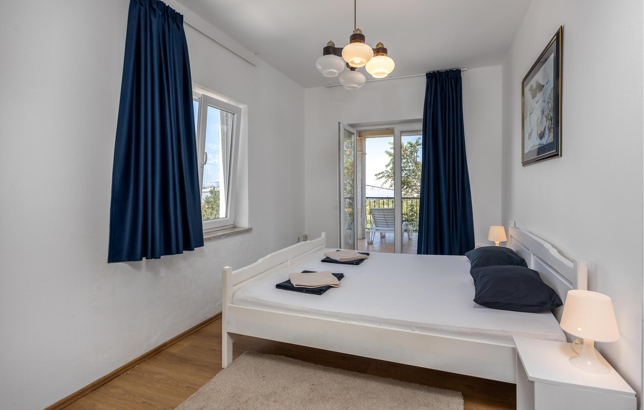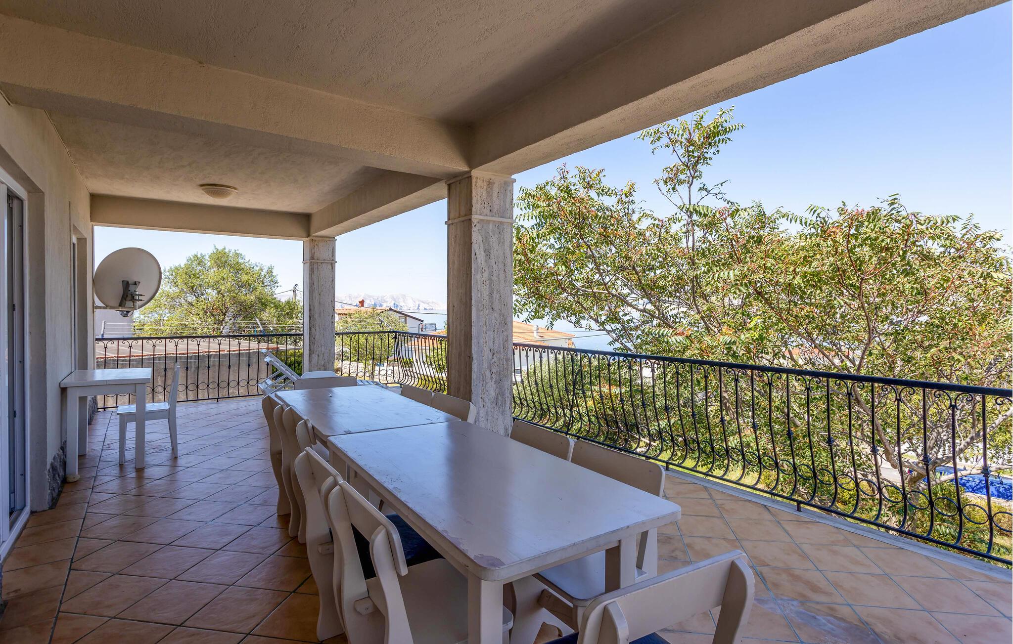 Den byder på en stor terrasse med en fantastisk panoramaudsigt til øerne i Kvarnerbugten og borgen Nehaj. Terrassen vil helt sikkert blive jeres yndlingssted i huset, her kan I få mange timer til at gå med bare at slappe af og nyde de smukke omgivelser.