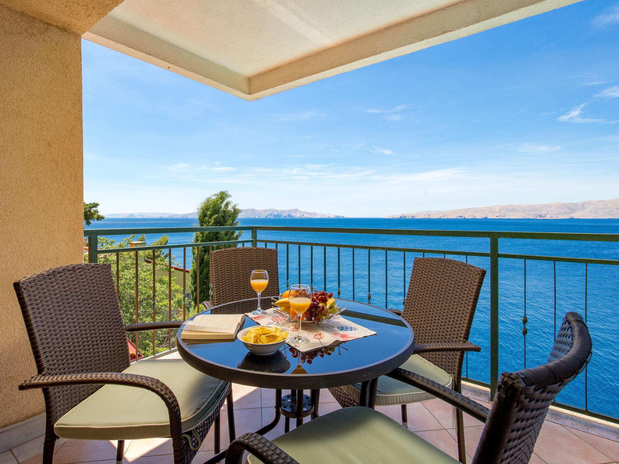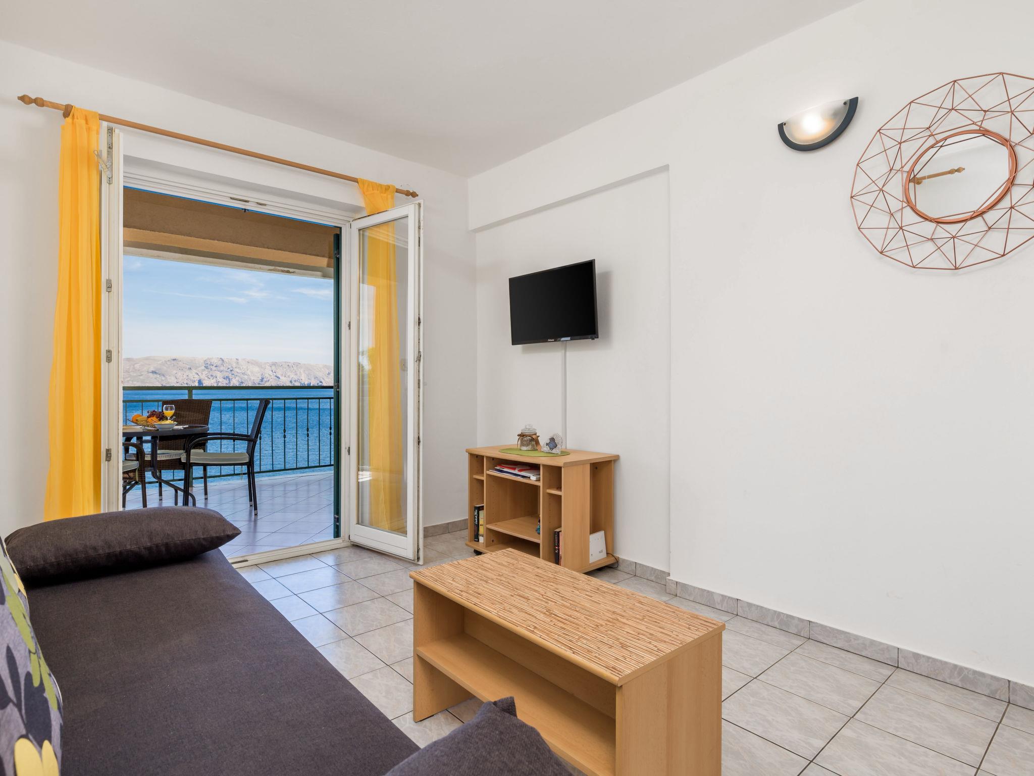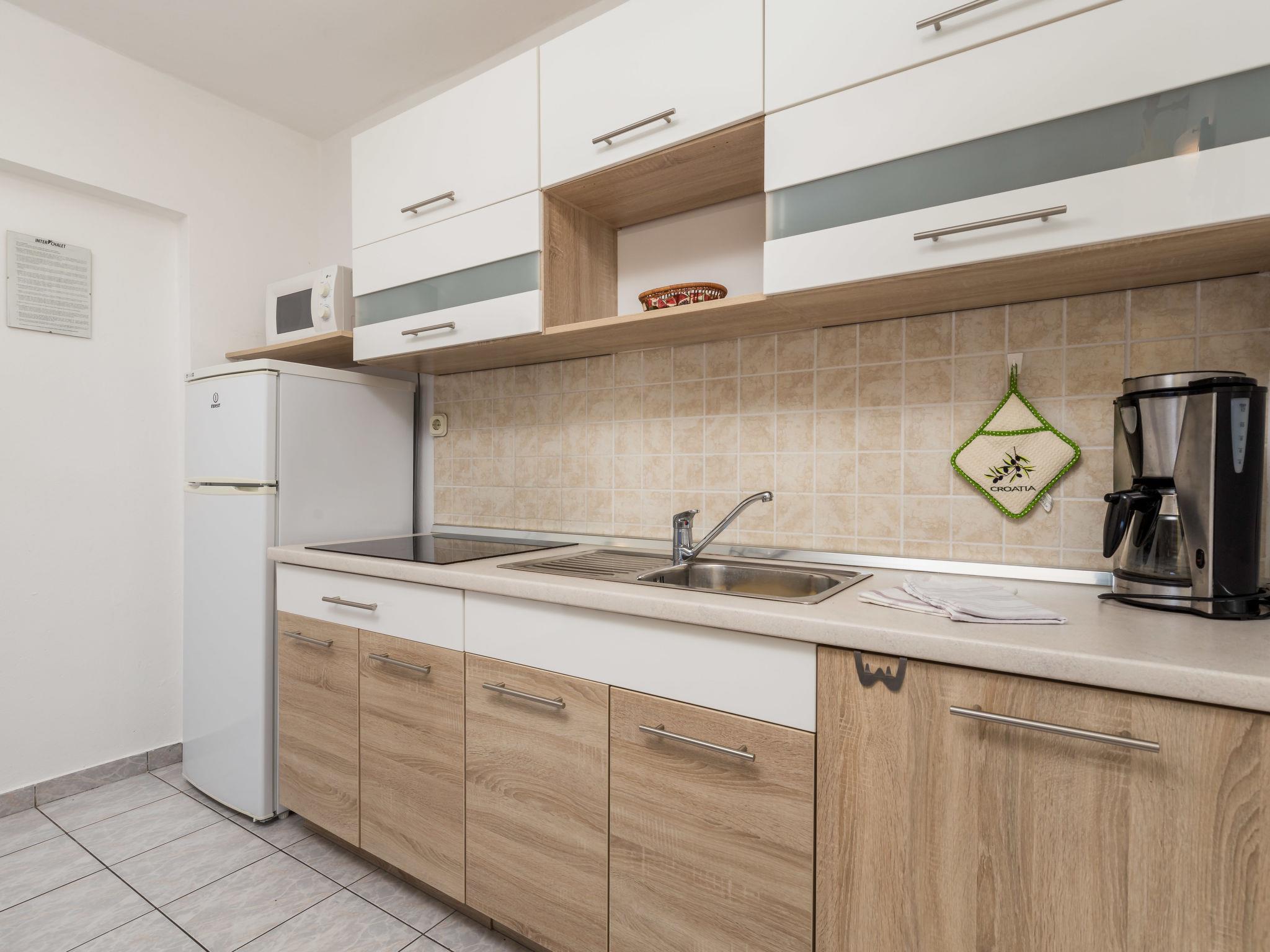 "Marina", 2-room apartment 45 m2 on 1st floor. Living/dining room with 1 french bed (160 cm, length 200 cm), satellite TV and air conditioning. Exit to the balcony. 1 room with 1 french bed (160 cm, length 200 cm). Exit to the balcony. Open kitchen (4 hot plates, toaster, microwave, freezer, electric coffee machine). Shower/WC. No heating option. Balcony. Balcony furniture. View of the sea. Facilities: Internet (WiFi, free). Please note: non-smoking house. Maximum 1 pet/ dog allowed.