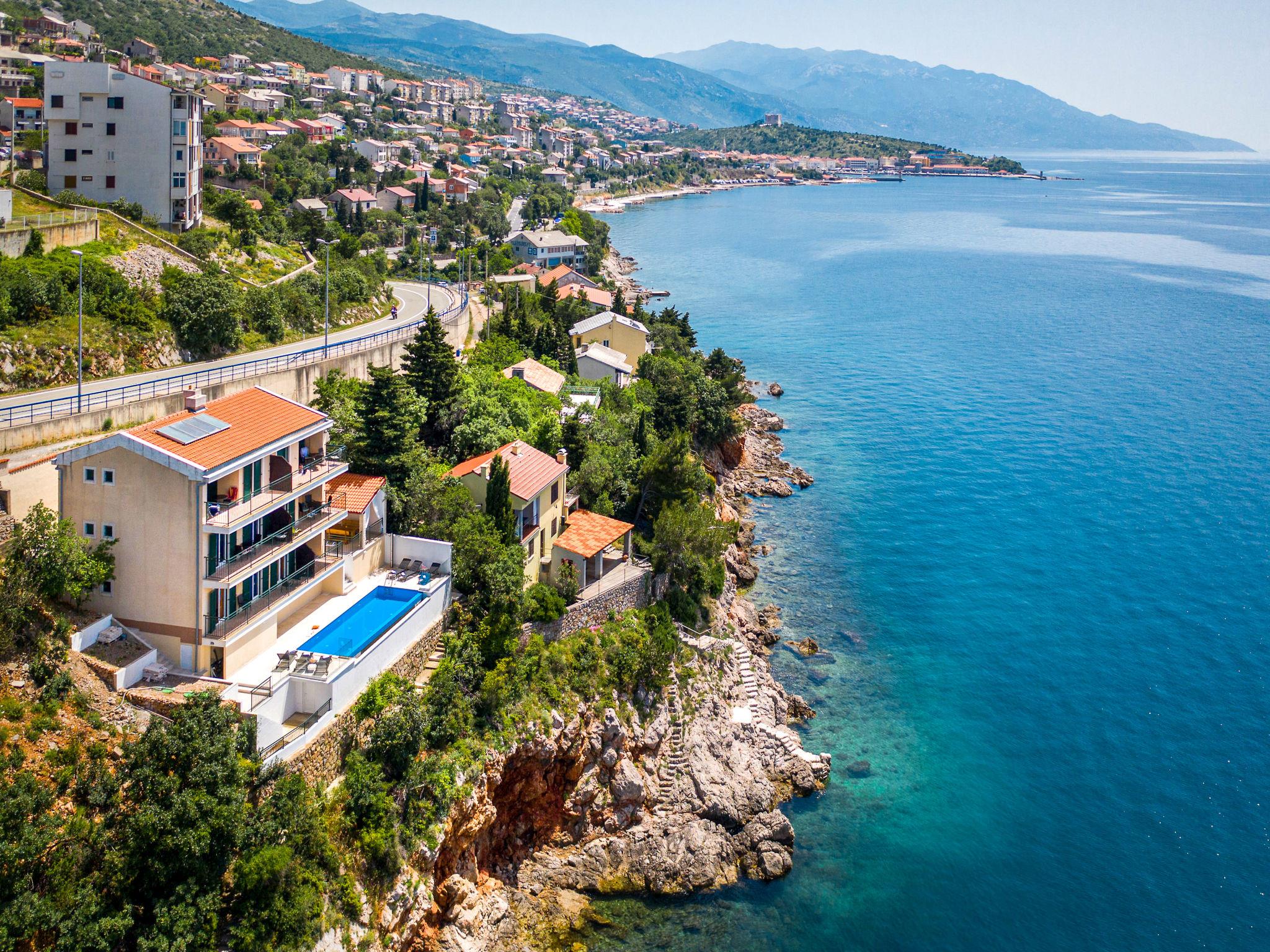 Apartment house "Marina". 1.2 km from the centre of Senj, 13 km from the centre of Klenovica, 20 km from the centre of Novi Vinodolski, 50 m from the sea, 50 m from the beach. For shared use: property 600 m2, swimming pool (10 x 3 m, depth 150 cm, seasonal availability: 15.Mar. - 15.Nov.). Outdoor shower, terrace, garden furniture, barbecue, pool maintenance by the owner/gardener. In the house: internet access, washing machine (for shared use, extra). Parking. Shop 700 m, restaurant 400 m, bus stop, pebble beach 300 m, rocky beach 50 m. There are no dogs on the rocky beach below the holiday house allowed.