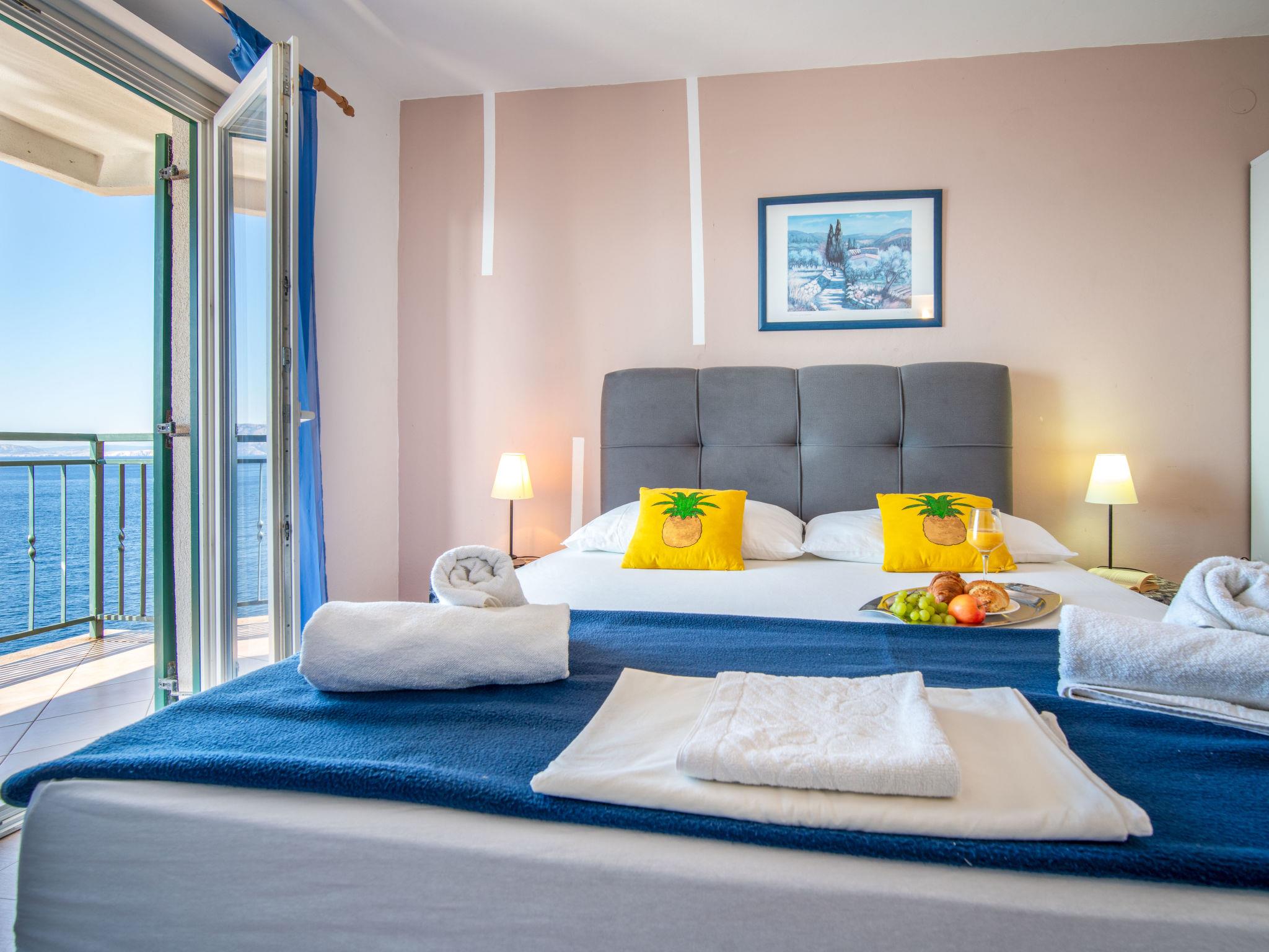 "Marina", 2-room apartment 42 m2 on 1st floor. 1 room with 2 beds (90 cm, length 200 cm). Exit to the balcony. 1 room with 1 french bed (160 cm, length 200 cm). Exit to the balcony. Kitchen-/living room (2 hot plates, toaster, microwave, freezer, electric coffee machine) with dining table, satellite TV and air conditioning. Shower/WC. No heating option. Balcony. Balcony furniture. View of the sea. Facilities: Internet (WiFi, free). Please note: non-smoking house. Maximum 1 pet/ dog allowed.